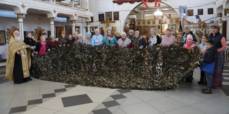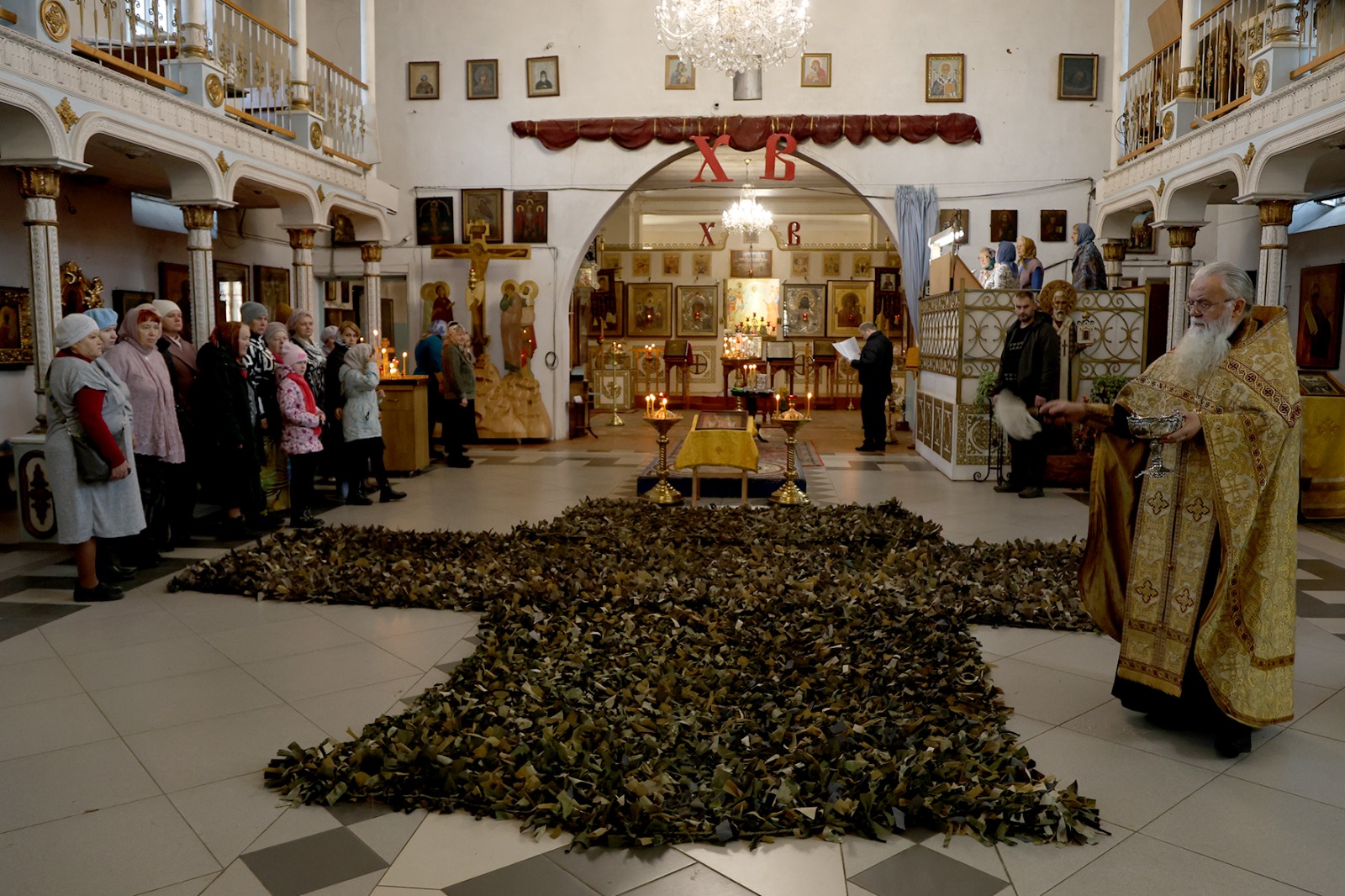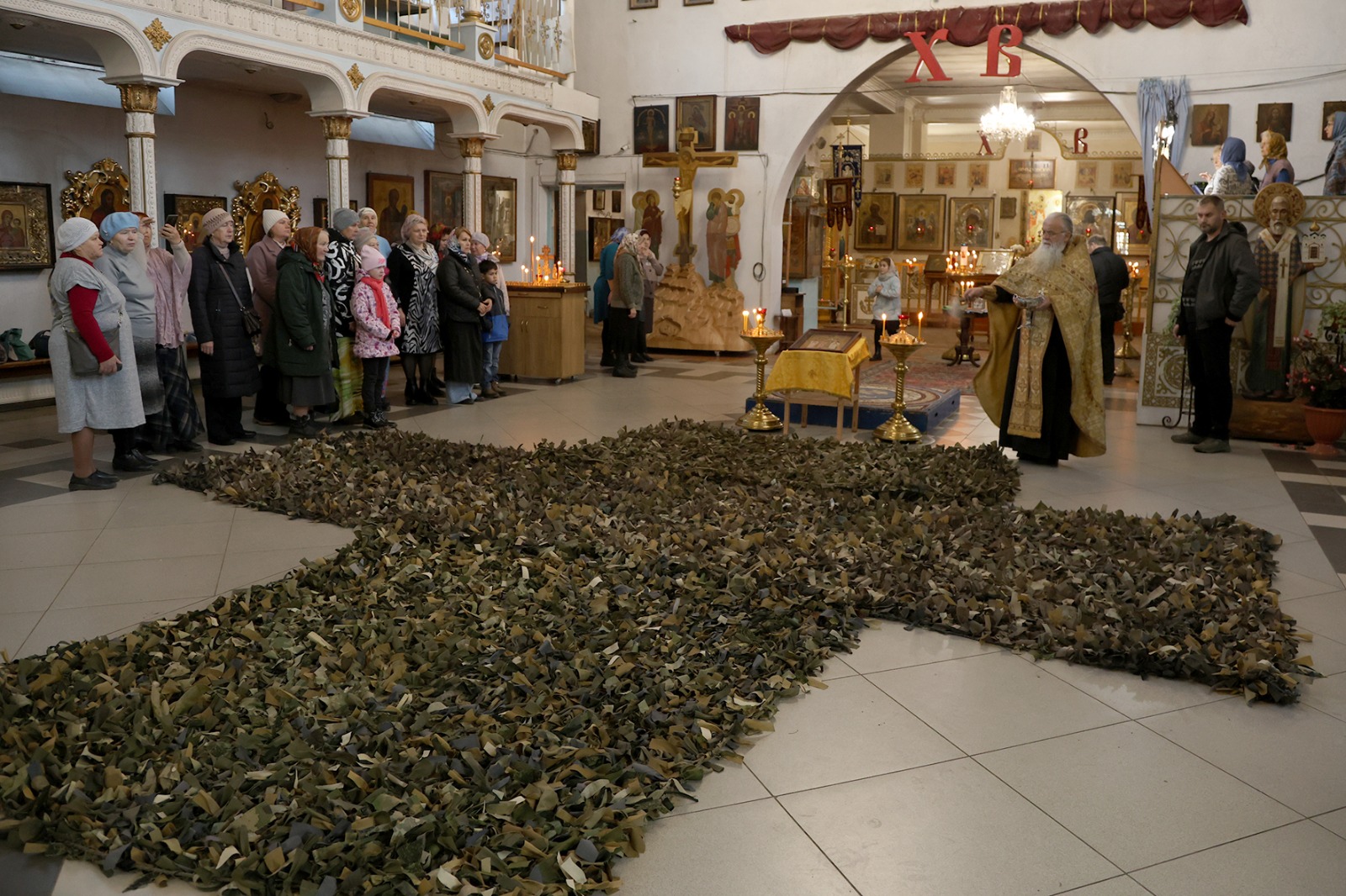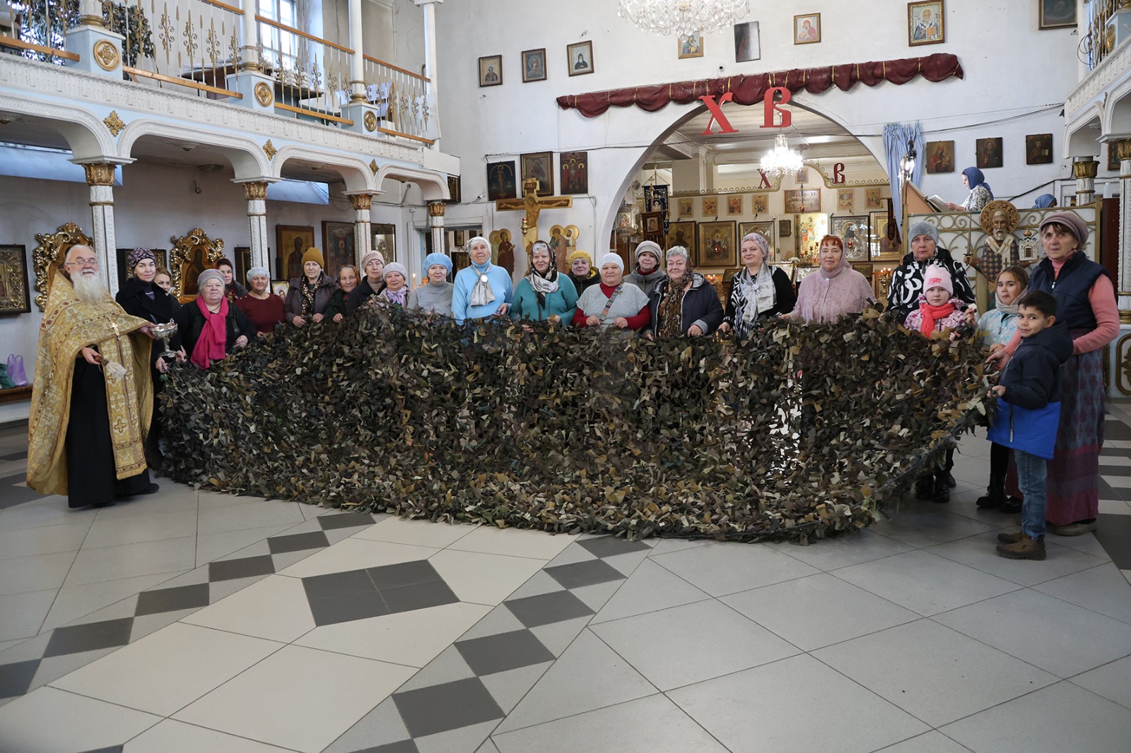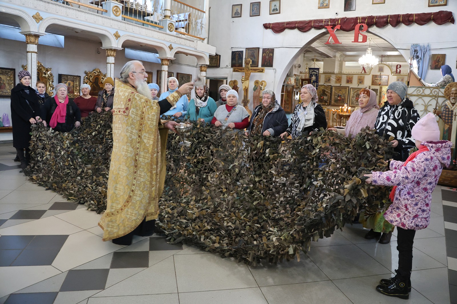 На молебне были освящены маскировочные сети, изготовленные трудолюбивыми помощницами – добровольцами приходской группы при Казанском соборе «Тепло и забота солдату» (координатор Валентина Купрюхина). Здесь же была освящена пятисотая маскировочная сеть. Уже в ближайшее время изготовленные маскировочные сети будут надёжным щитом от врагов для наших воинов на передовой.