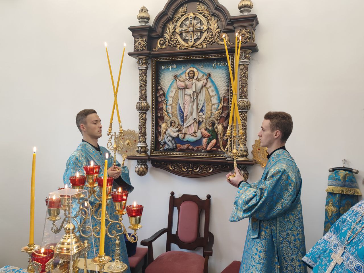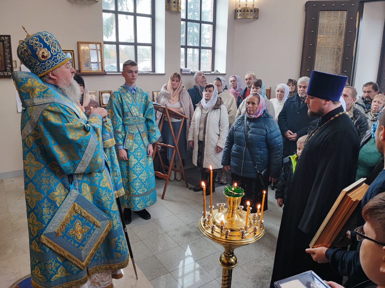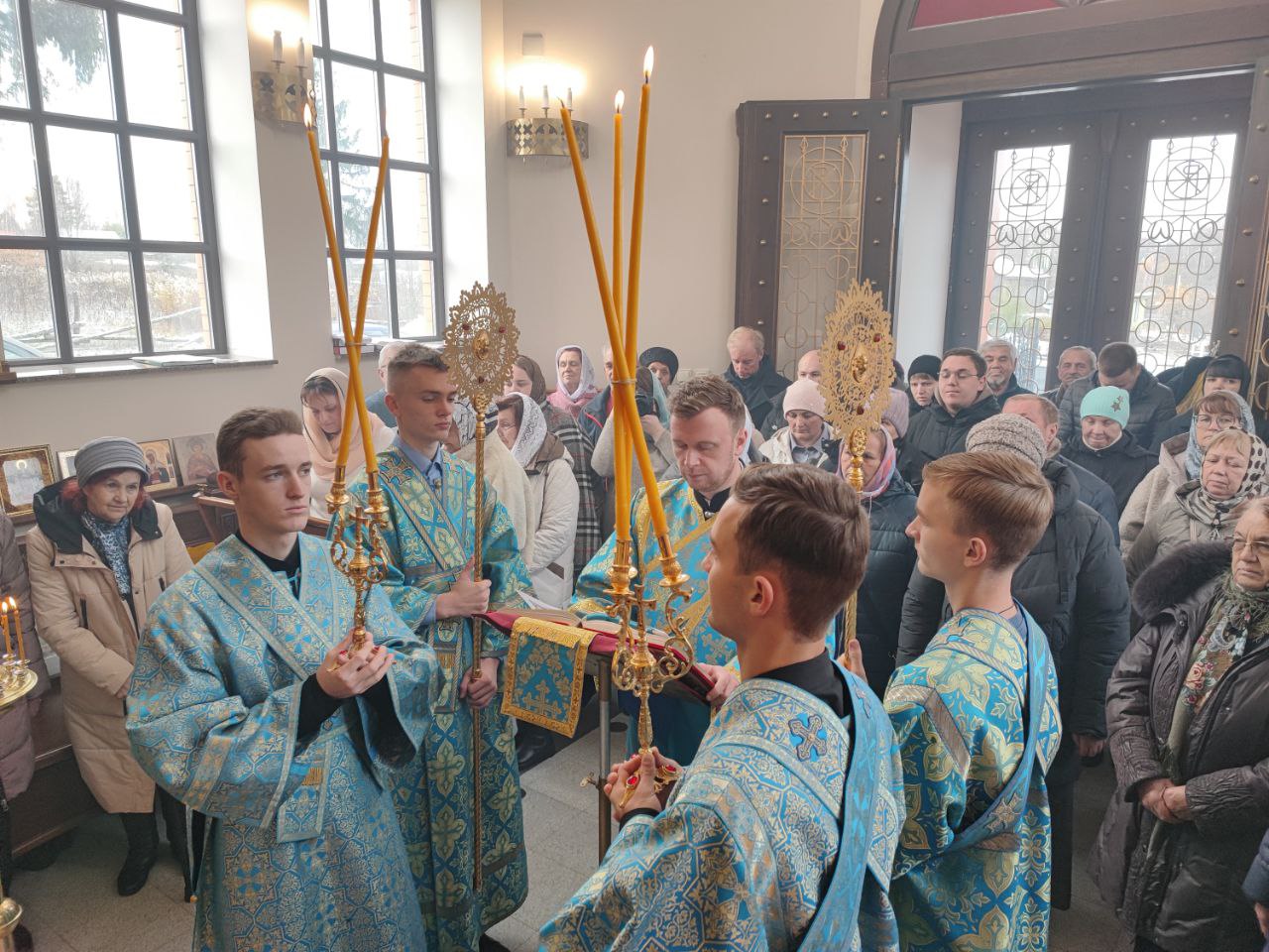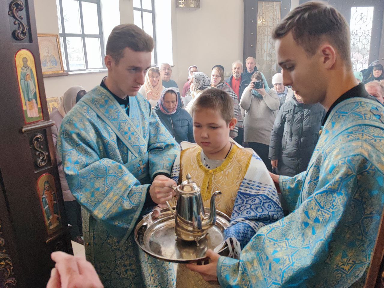 Архипастырю сослужили: благочинный округа, настоятель Казанского собора протоиерей Алексий Жиганов, протоиерей Михаил Карпенко, протоиерей Антоний Хатунцев, иерей Иоанн Майоров – настоятель прихода, диакон Евгений Ковригин и диакон Никита Агарев.