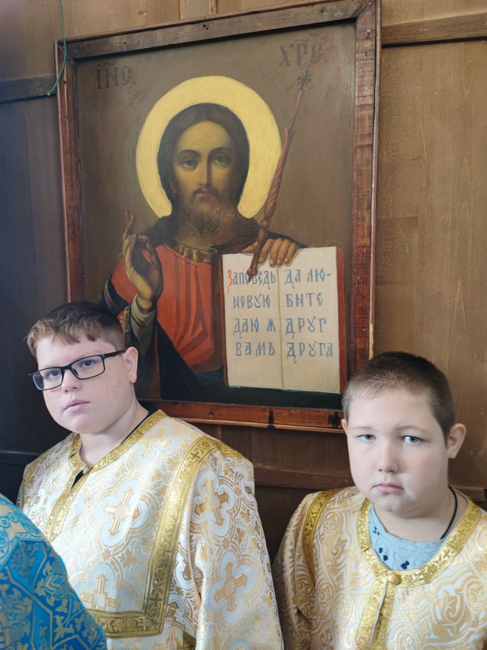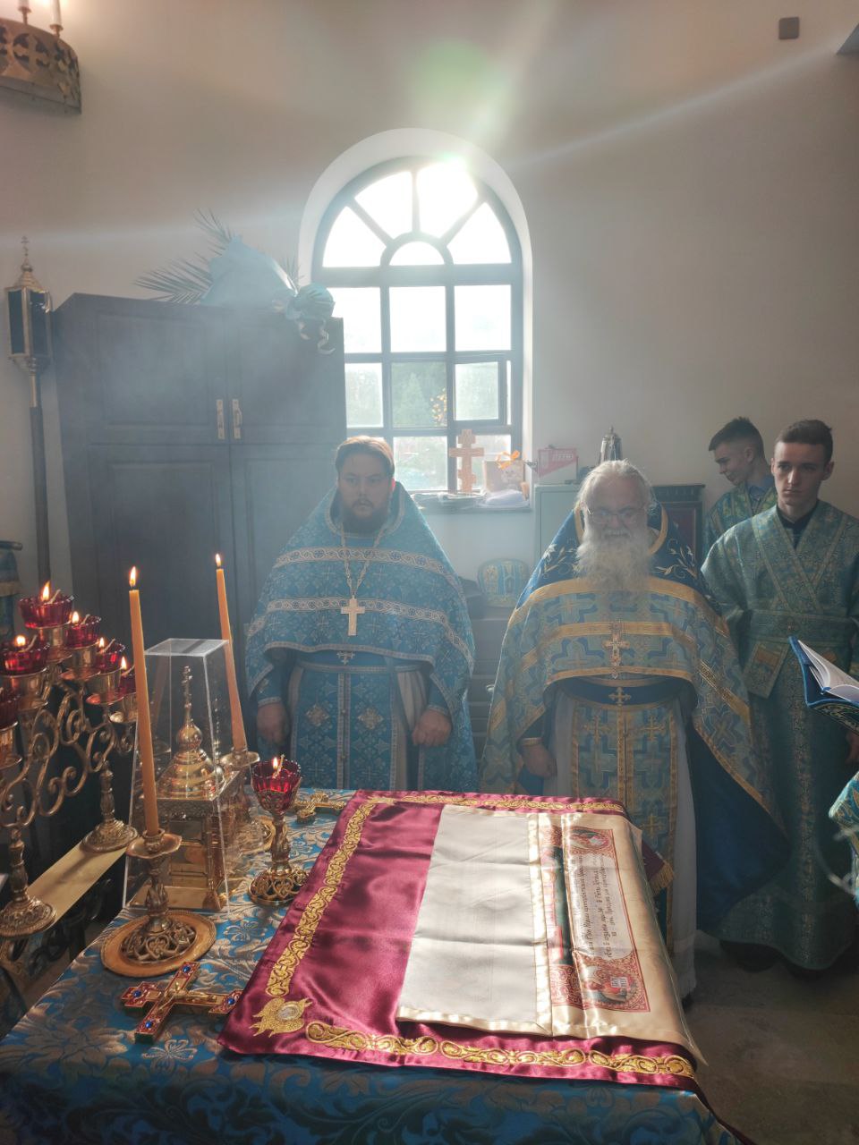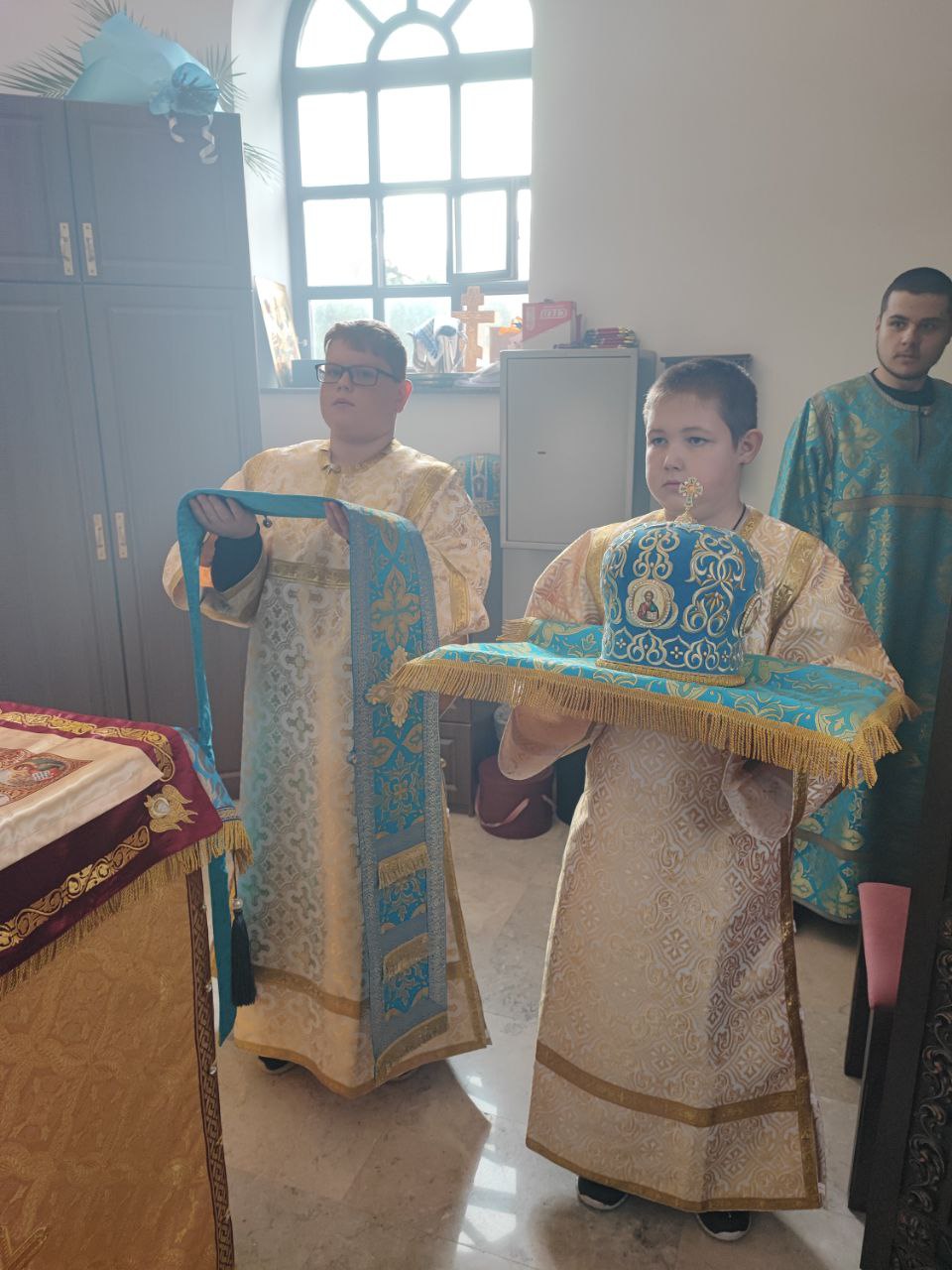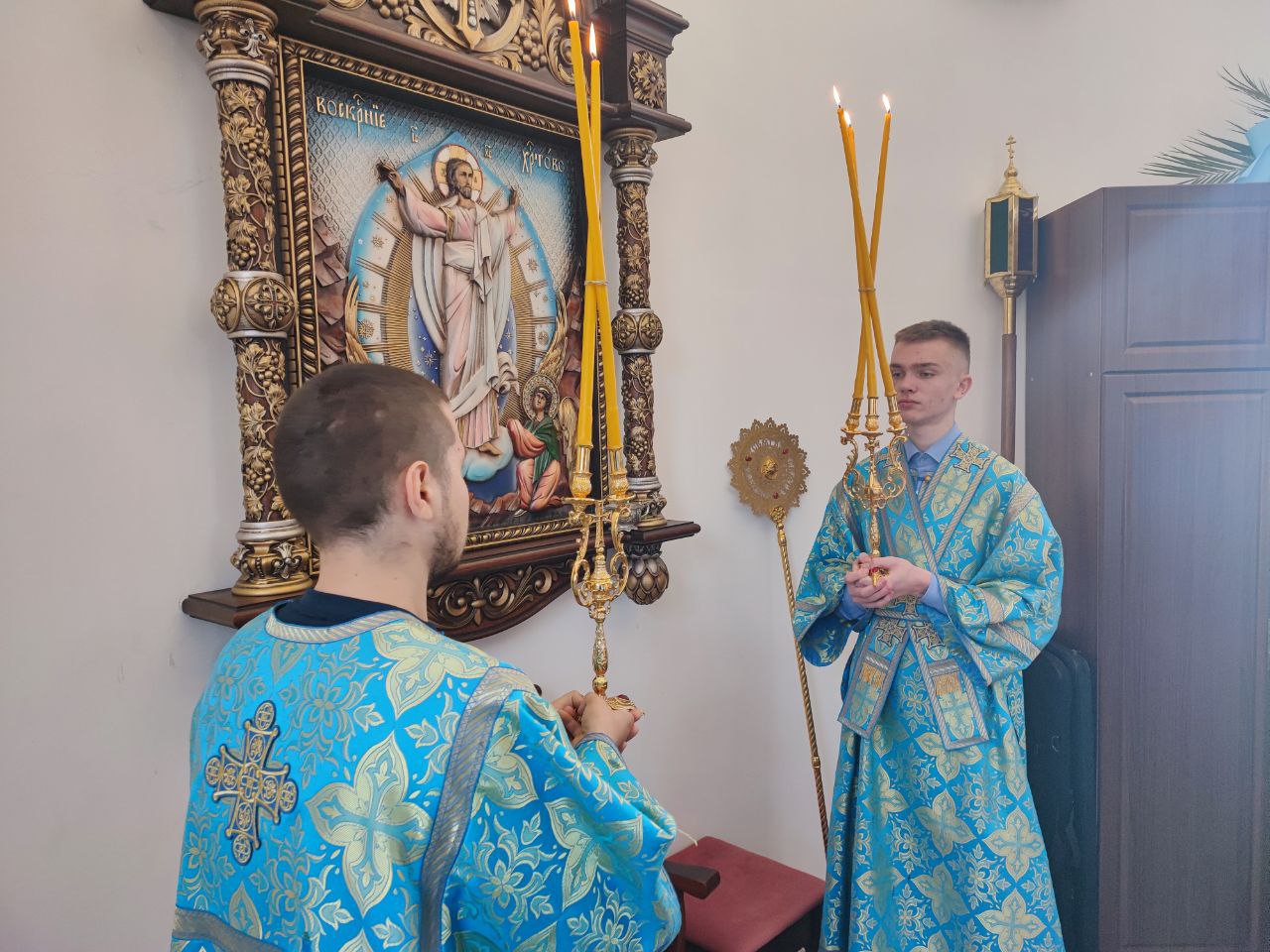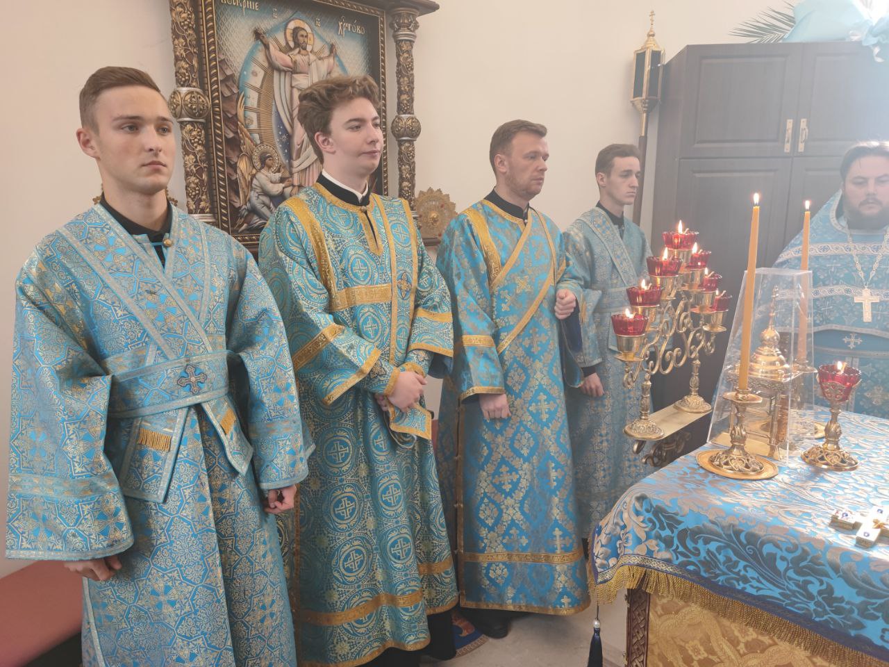 Архипастырю сослужили: благочинный округа, настоятель Казанского собора протоиерей Алексий Жиганов, протоиерей Михаил Карпенко, протоиерей Антоний Хатунцев, иерей Иоанн Майоров – настоятель прихода, диакон Евгений Ковригин и диакон Никита Агарев.