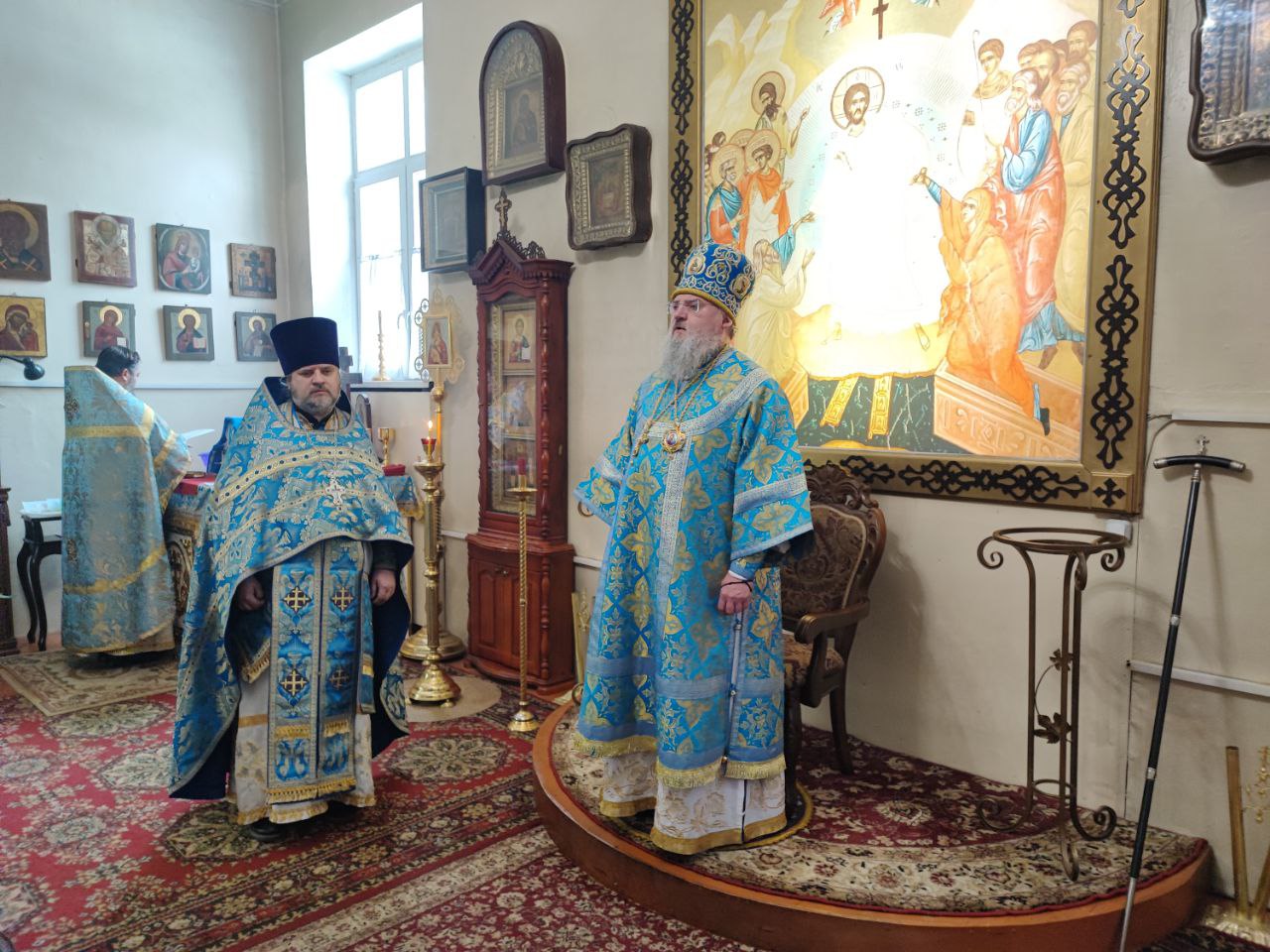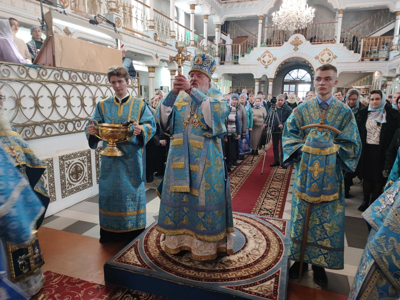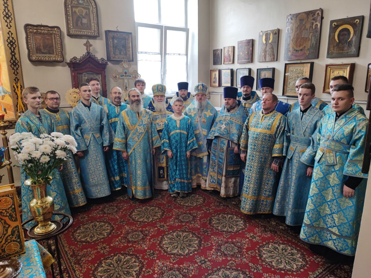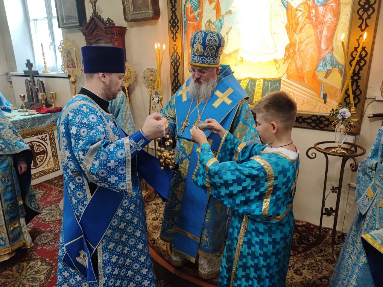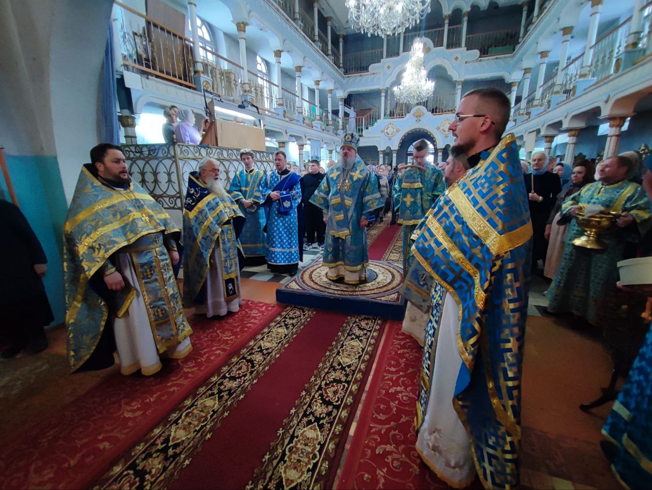 Архипастырю сослужили: настоятель собора, духовник епархии митрофорный протоиерей Алексий Жиганов, протоиерей Михаил Карпенко, протоиерей Антоний Хатунцев, иерей Алексий Сначев, диакон Евгений Ковригин, диакон Андрей Соколов и диакон Никита Агарев.