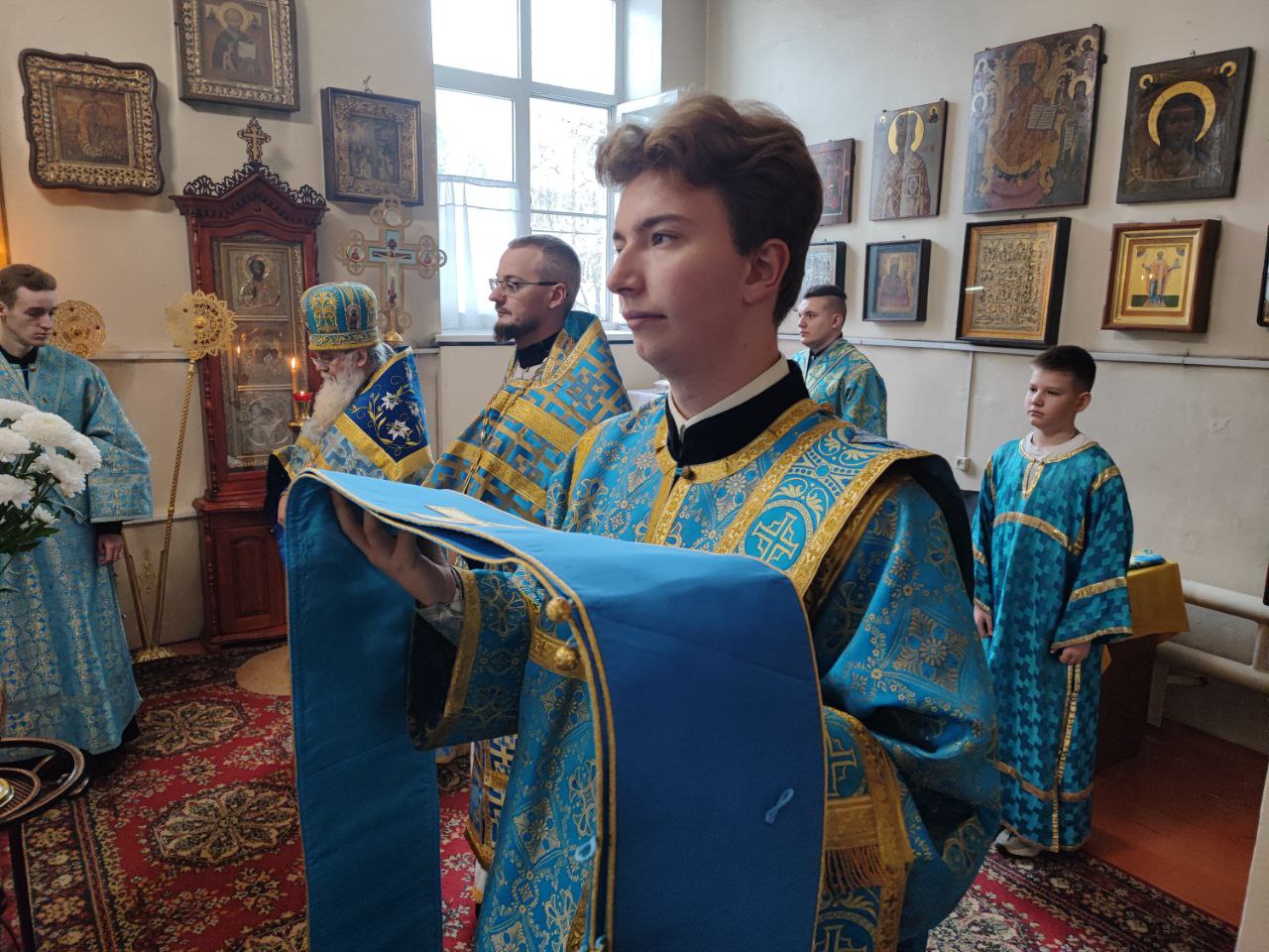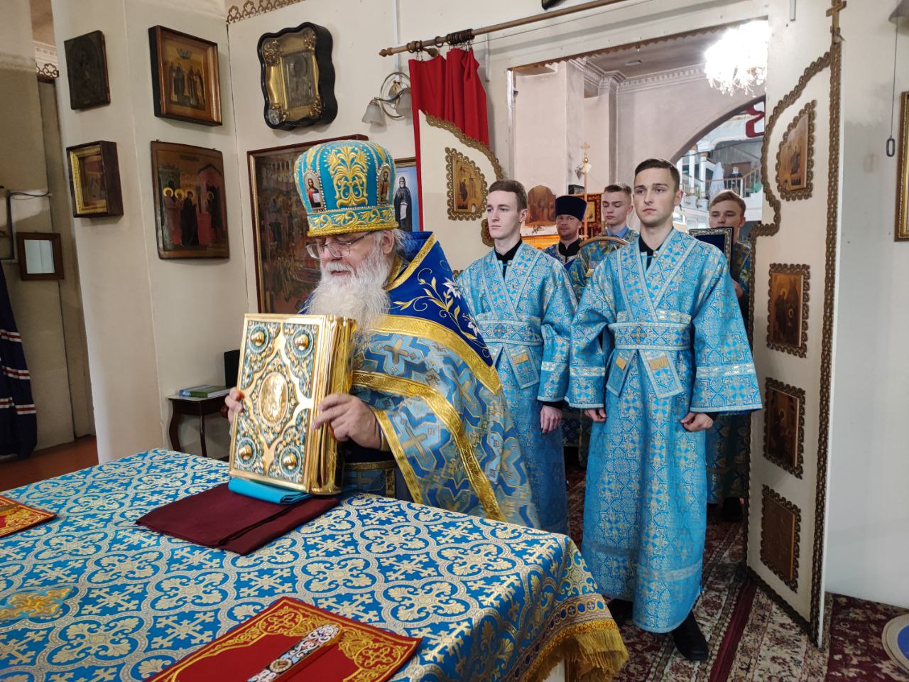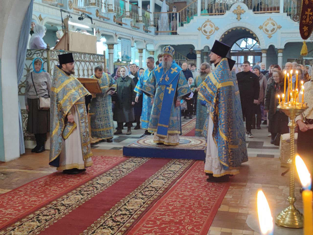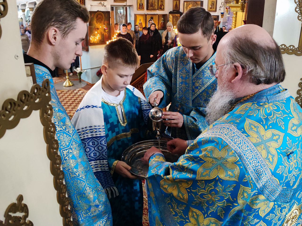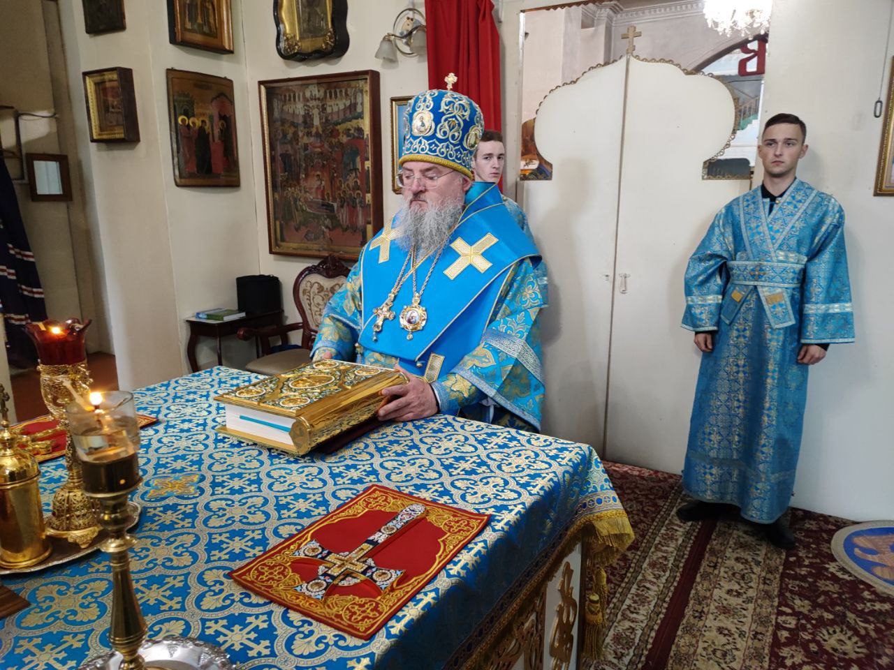Архипастырю сослужили: настоятель собора, духовник епархии митрофорный протоиерей Алексий Жиганов, протоиерей Михаил Карпенко, протоиерей Антоний Хатунцев, иерей Алексий Сначев, диакон Евгений Ковригин, диакон Андрей Соколов и диакон Никита Агарев.