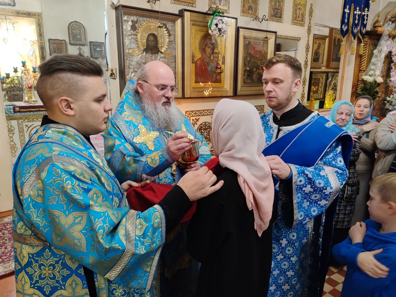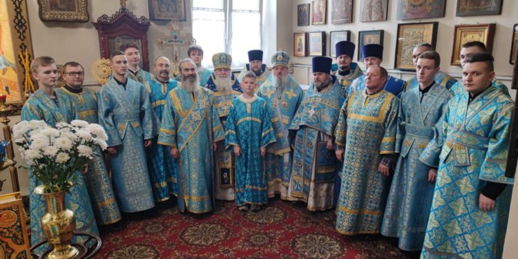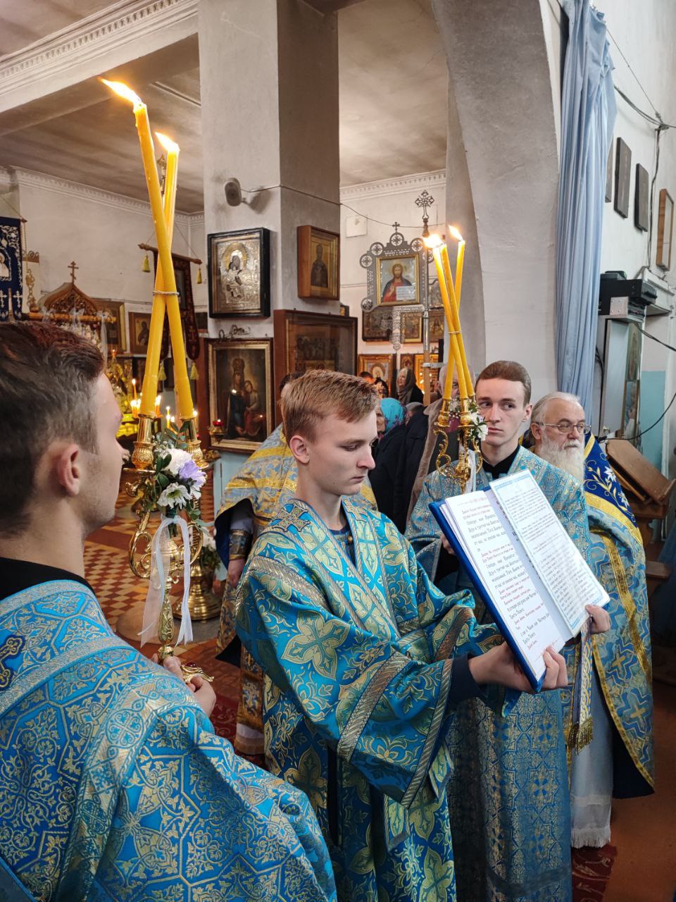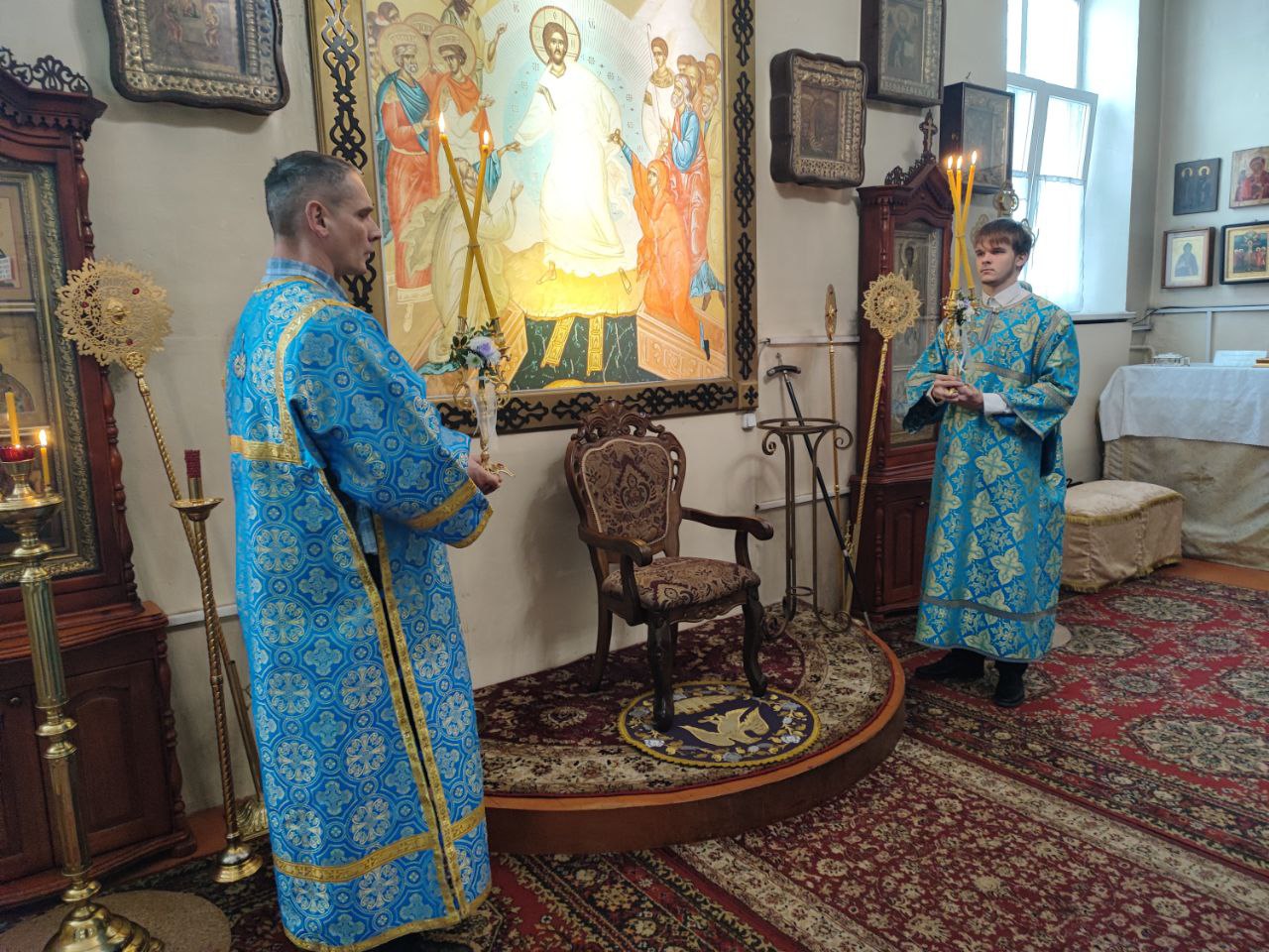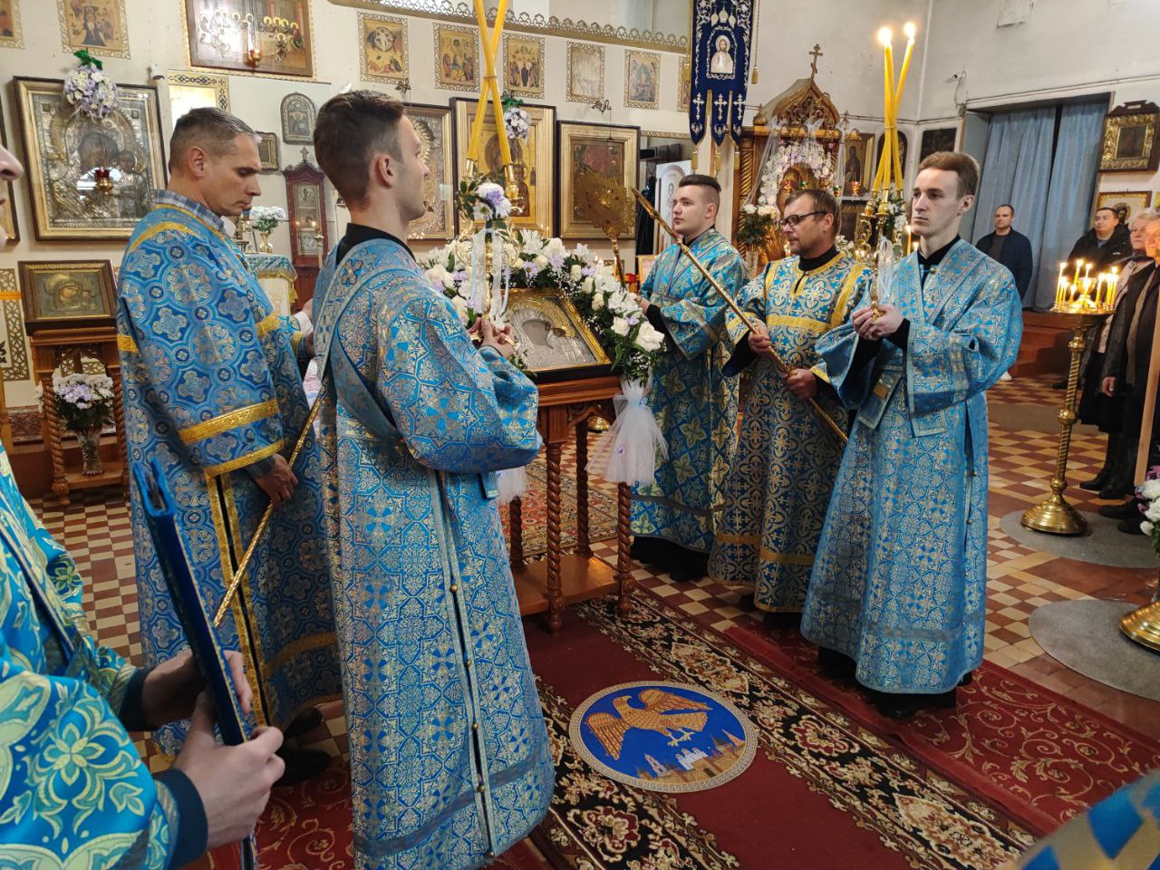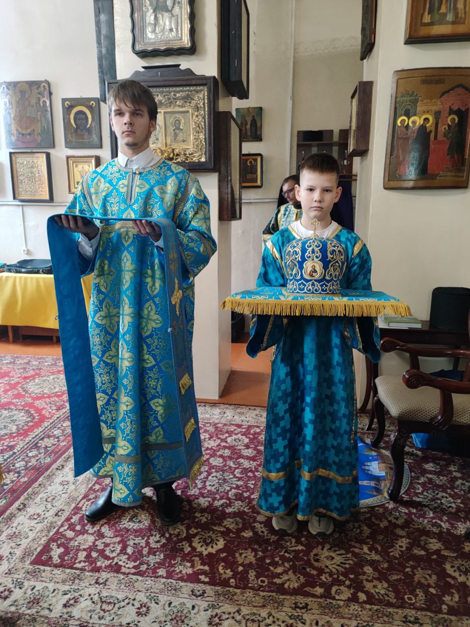 Архипастырю сослужили: настоятель собора, духовник епархии митрофорный протоиерей Алексий Жиганов, протоиерей Михаил Карпенко, протоиерей Антоний Хатунцев, иерей Алексий Сначев, диакон Евгений Ковригин, диакон Андрей Соколов и диакон Никита Агарев.
