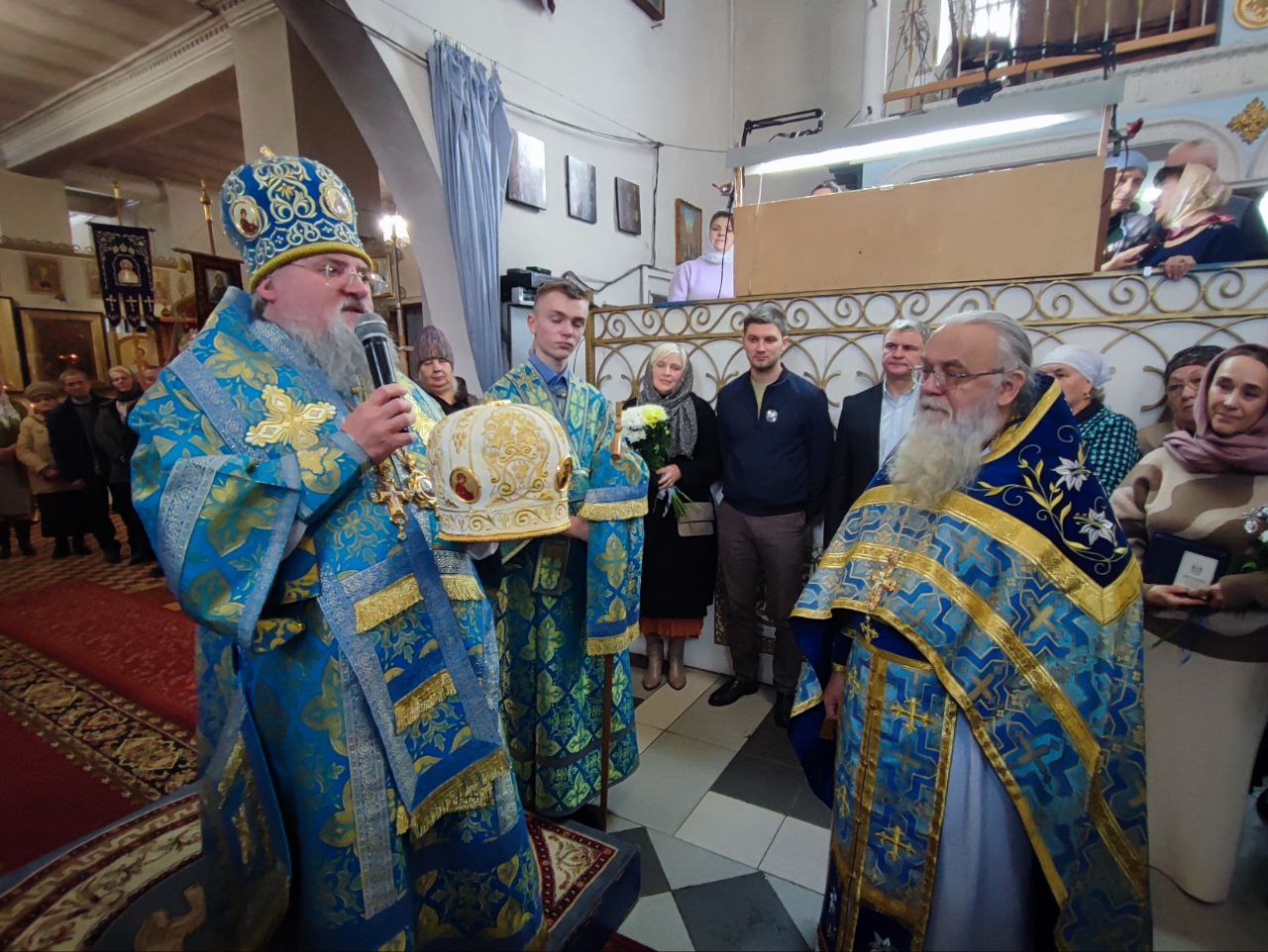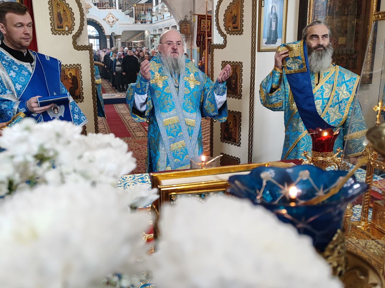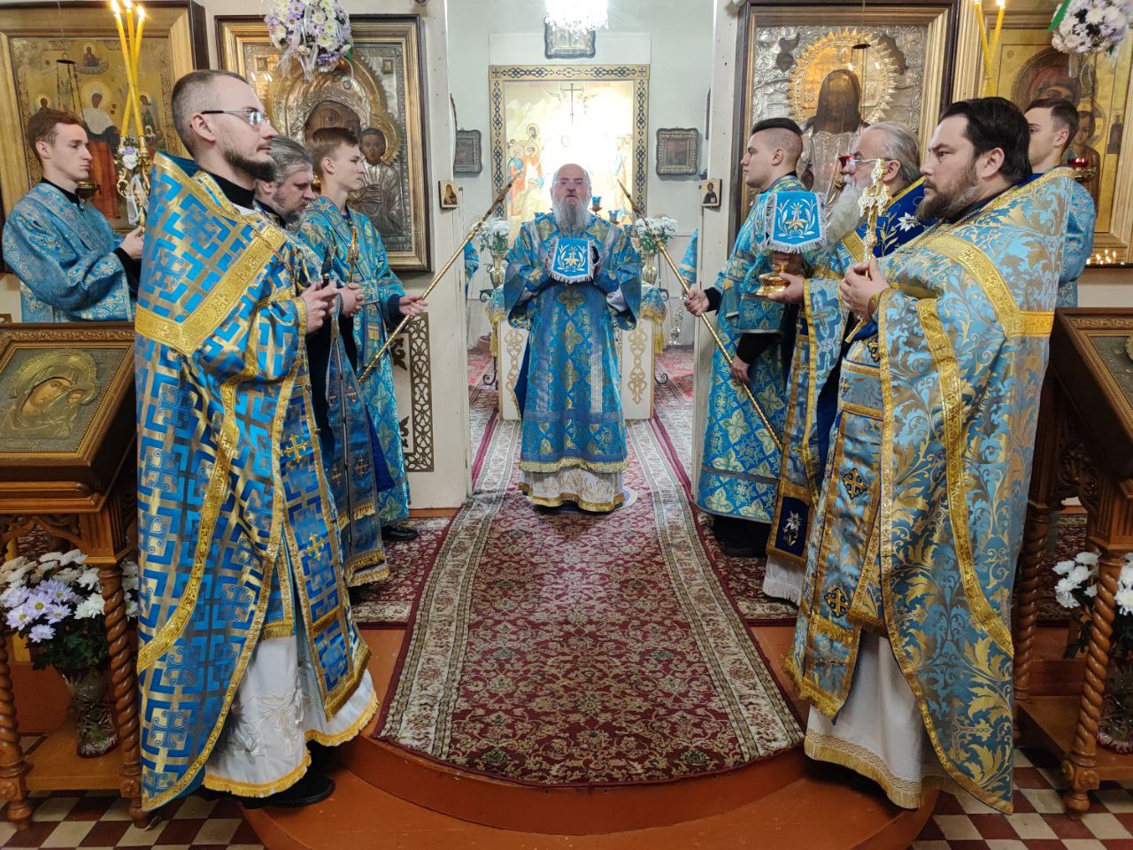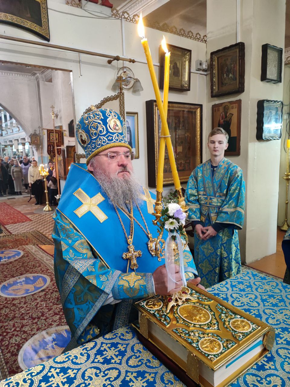 После отпуста литургии было совершено молебное пение Божией Матери перед Ее образом «Казанская». Завершая богослужение, владыка обратился к богомольцам с архипастырским словом.