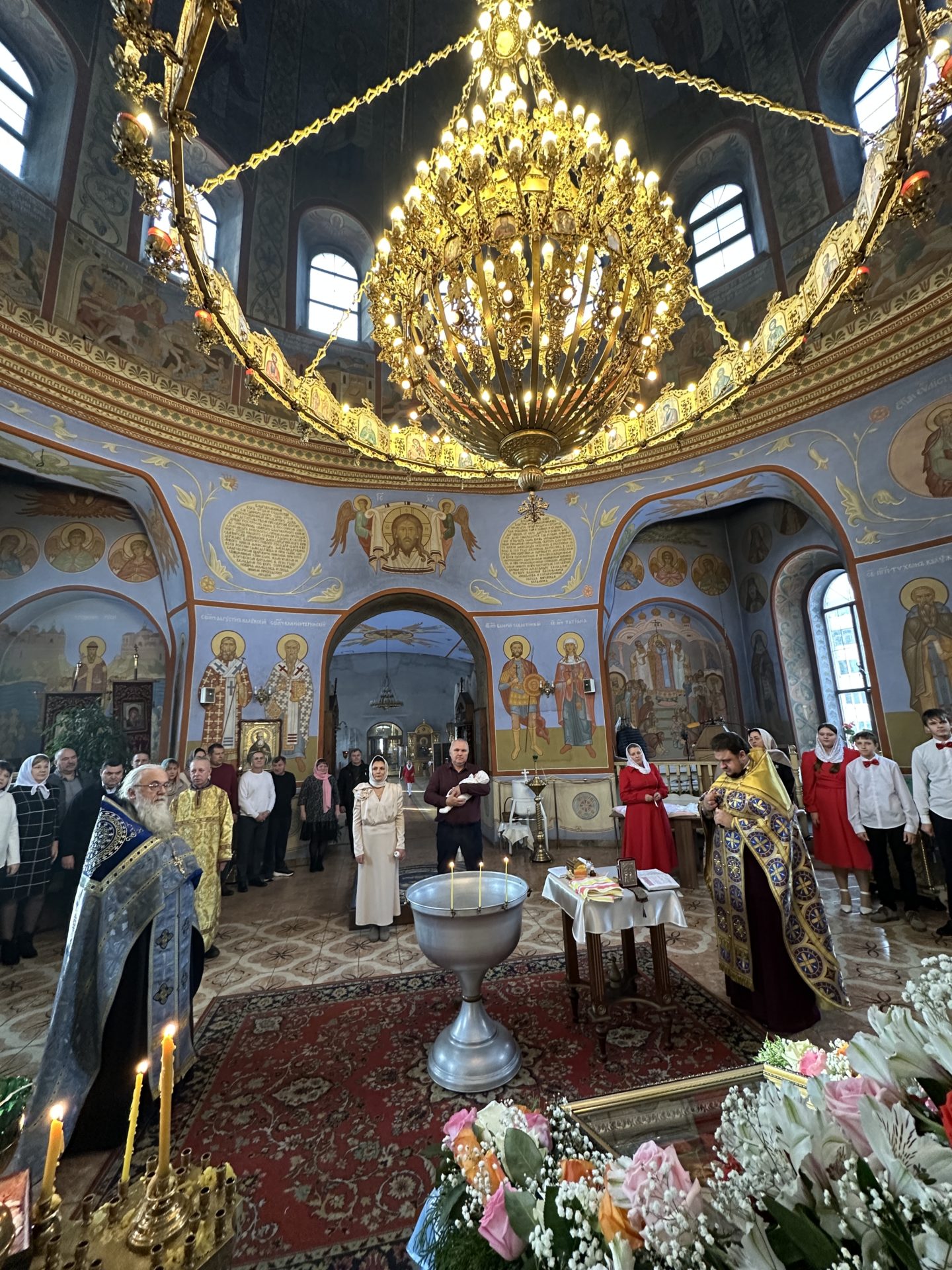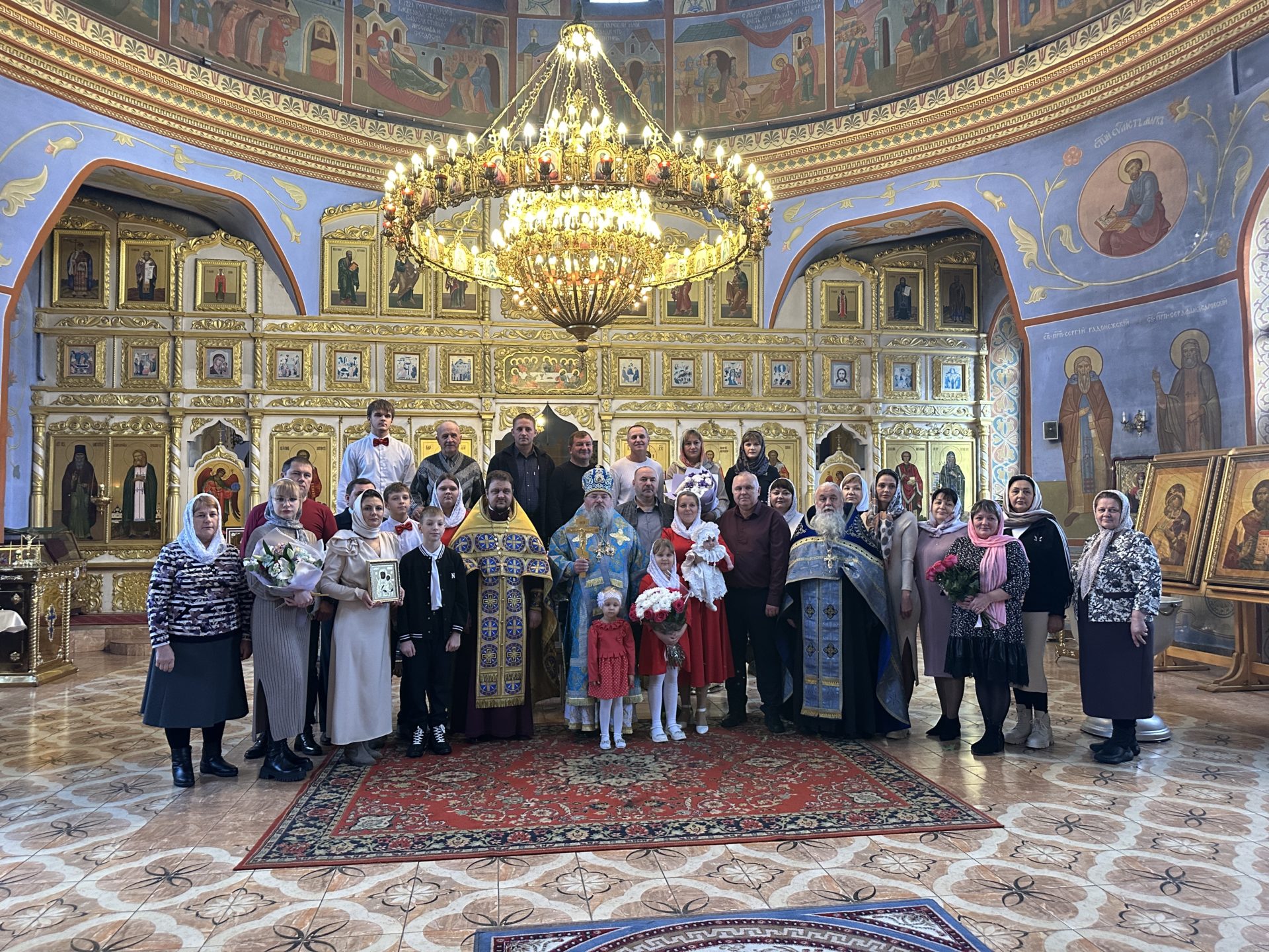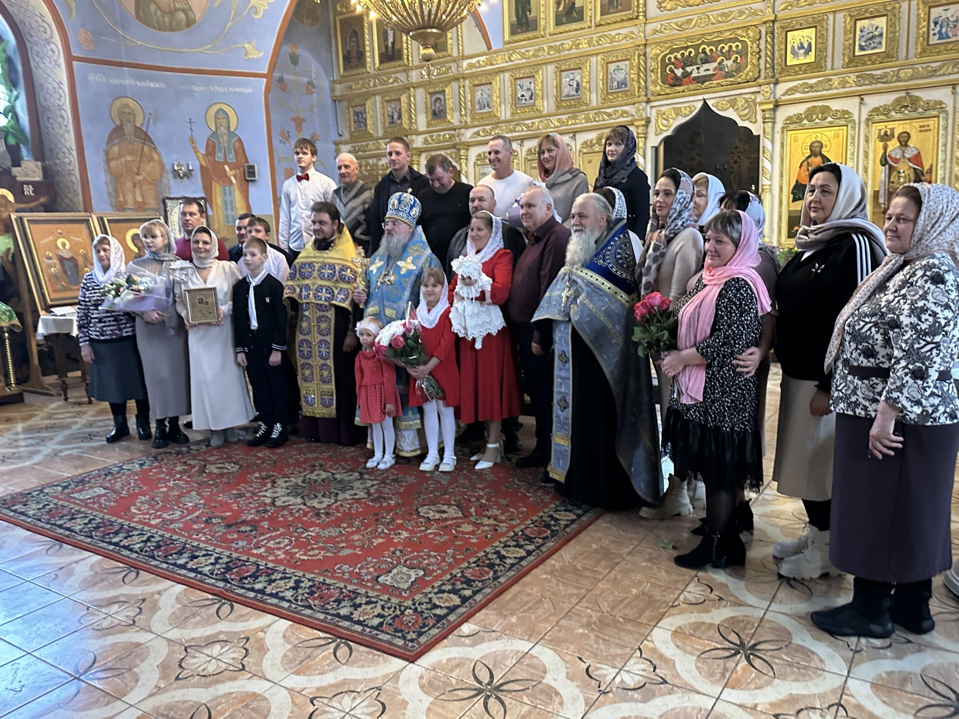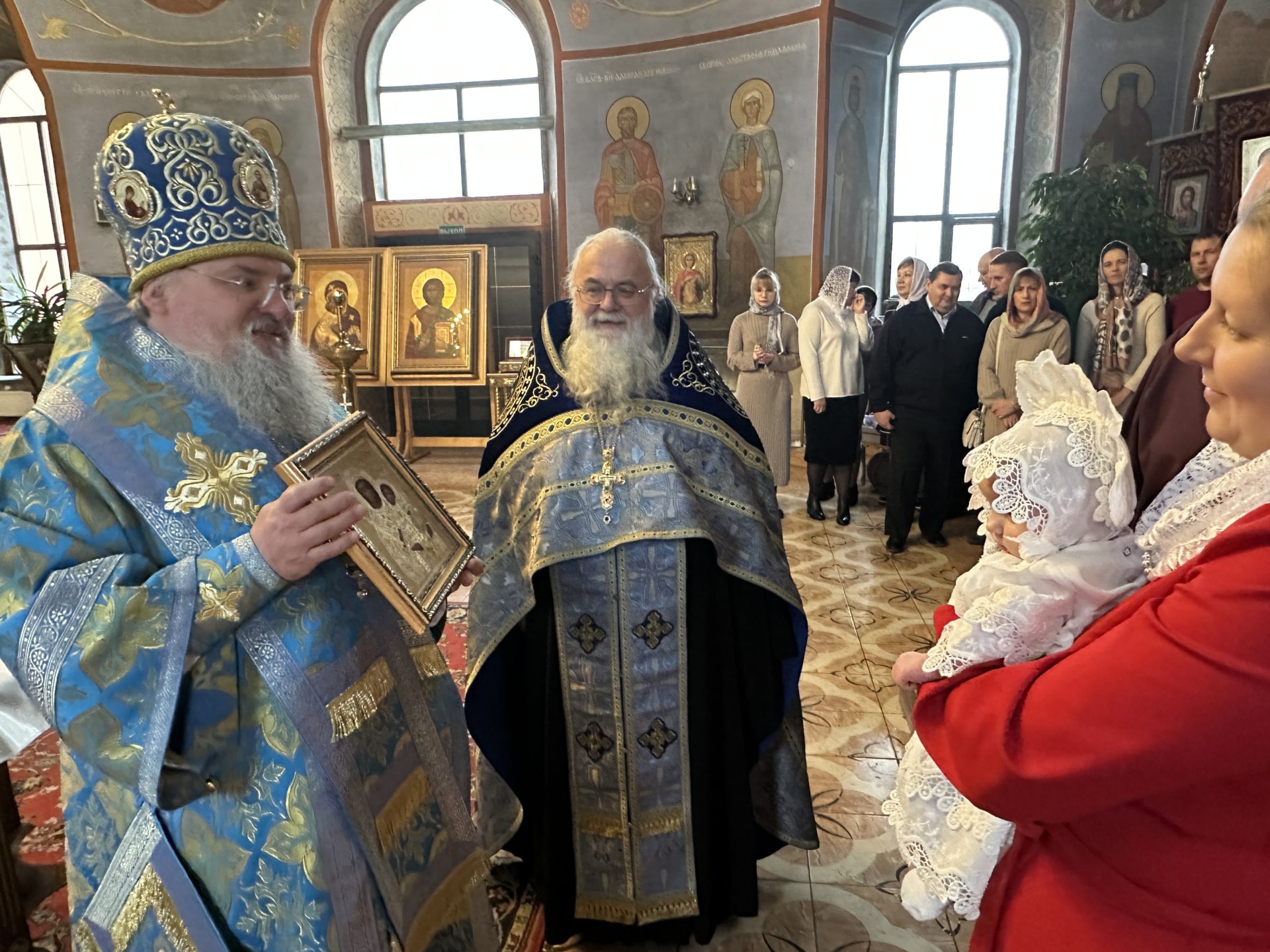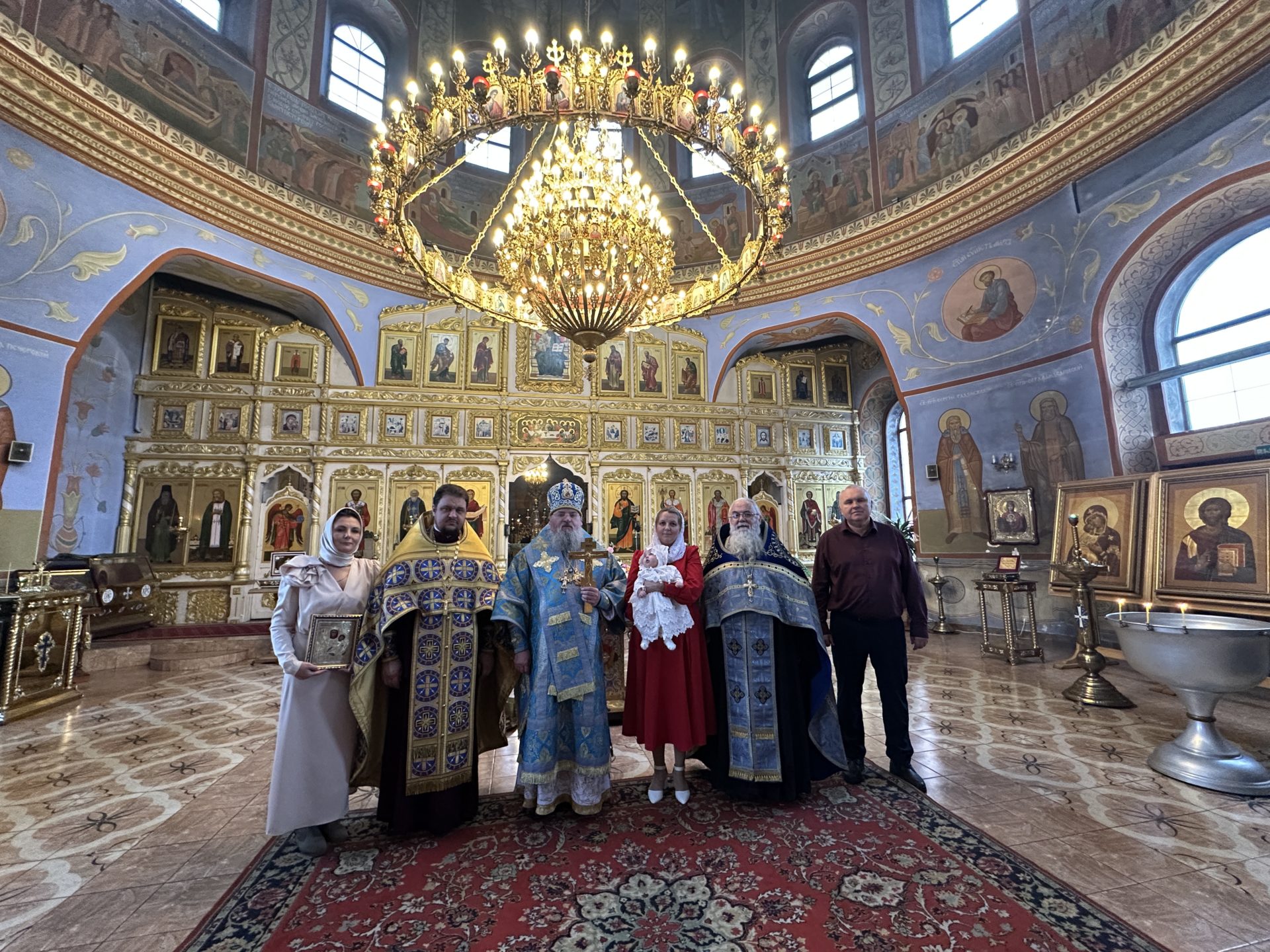 По окончании богослужения владыка Никита поздравил отца Александра и его супругу матушку Анастасию со знаменательном событием в жизни их семейства и передал в благословение новопросвещенной икону Пресвятой Богородицы.