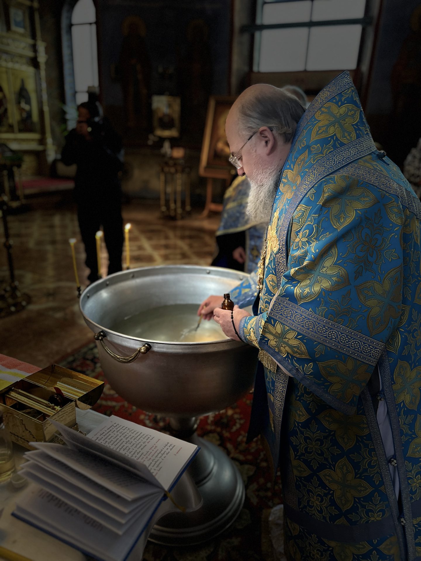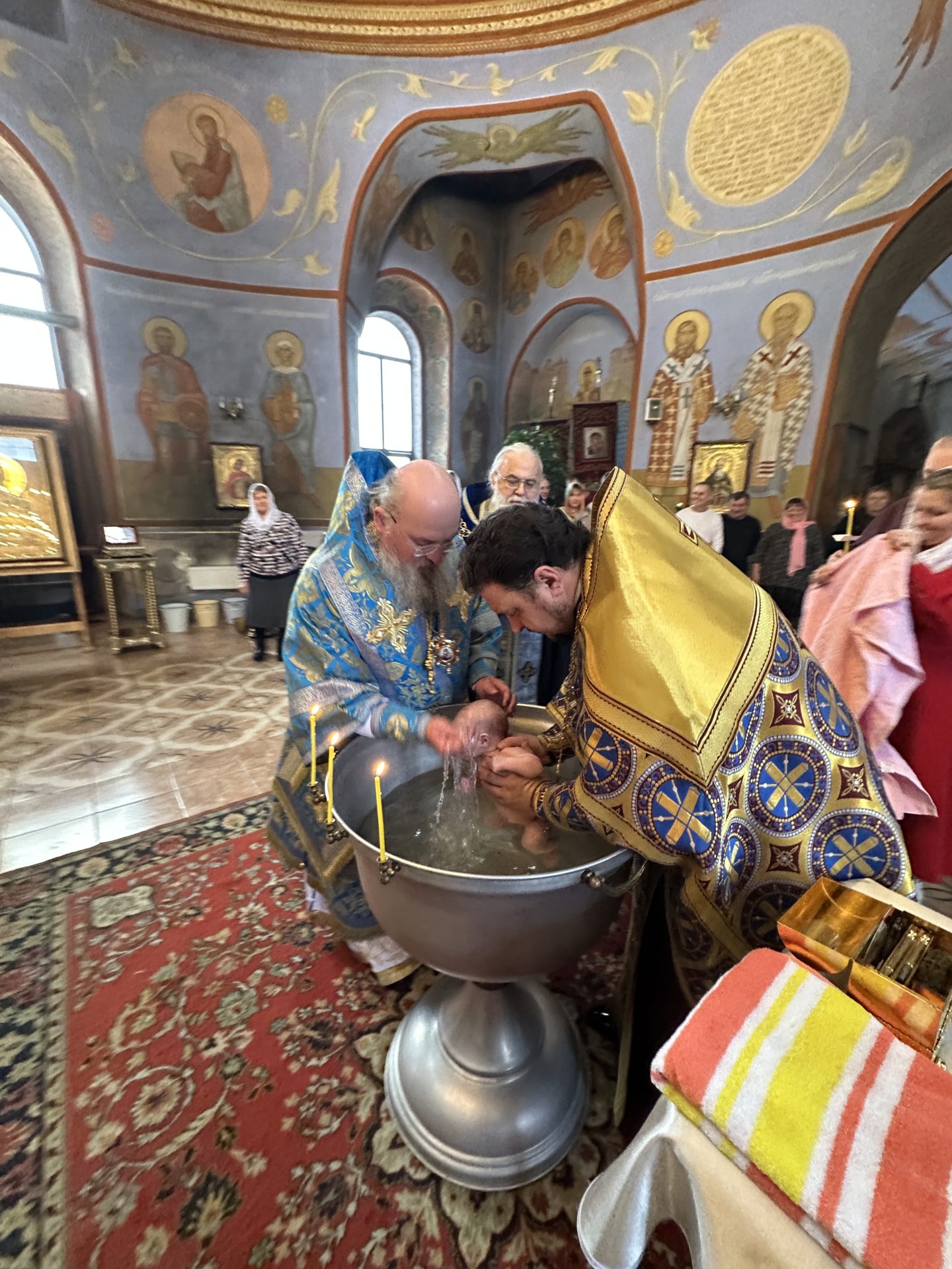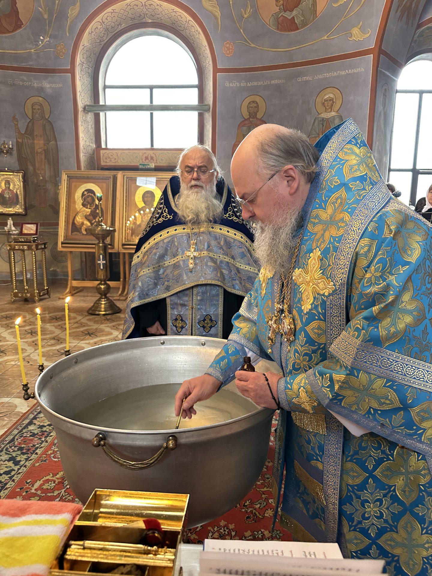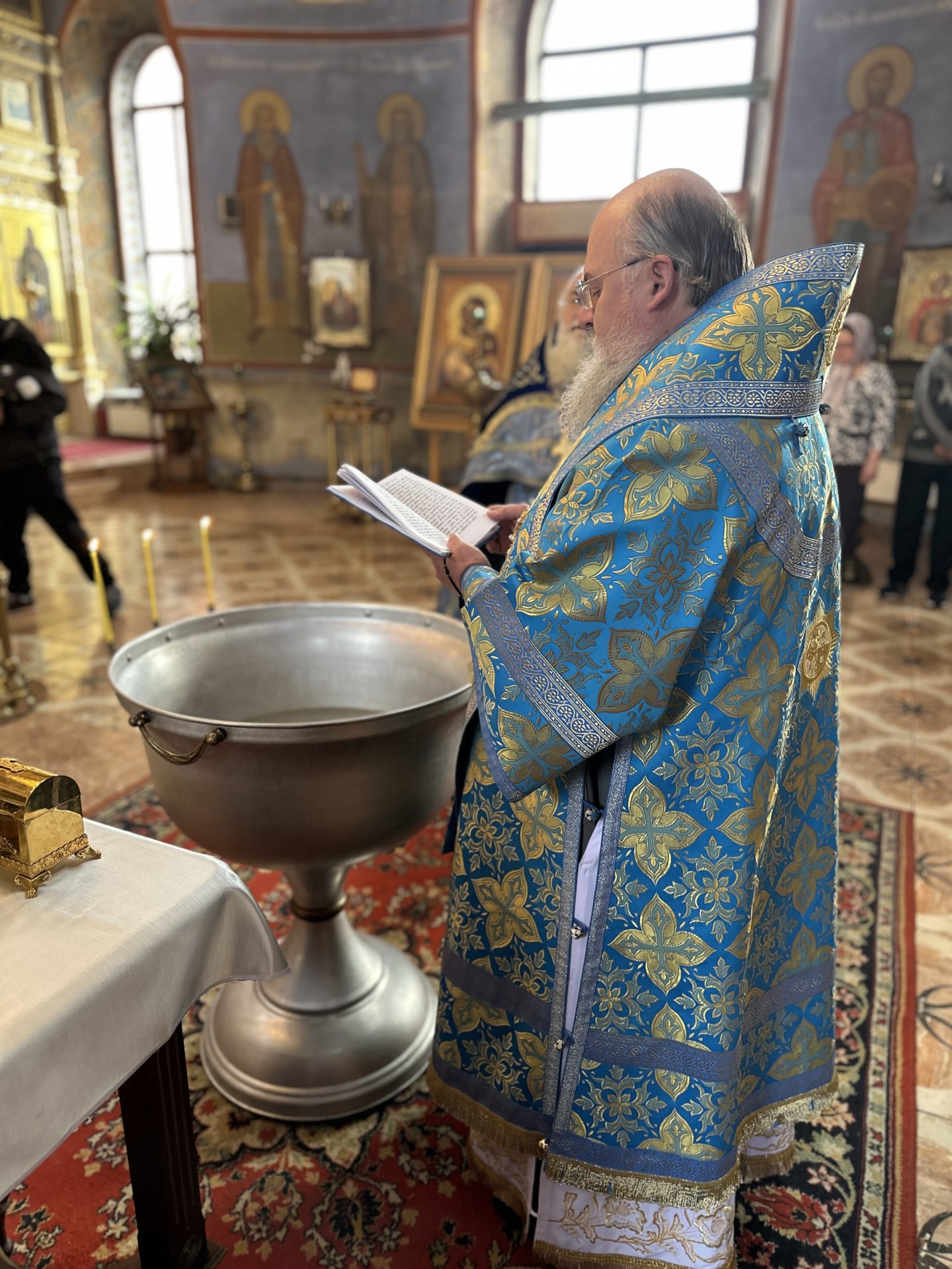 Архипастырю сослужили: настоятель прихода протоиерей Александр Рябов – отец крещаемой и протоиерей Алексий Жиганов – ее дедушка.