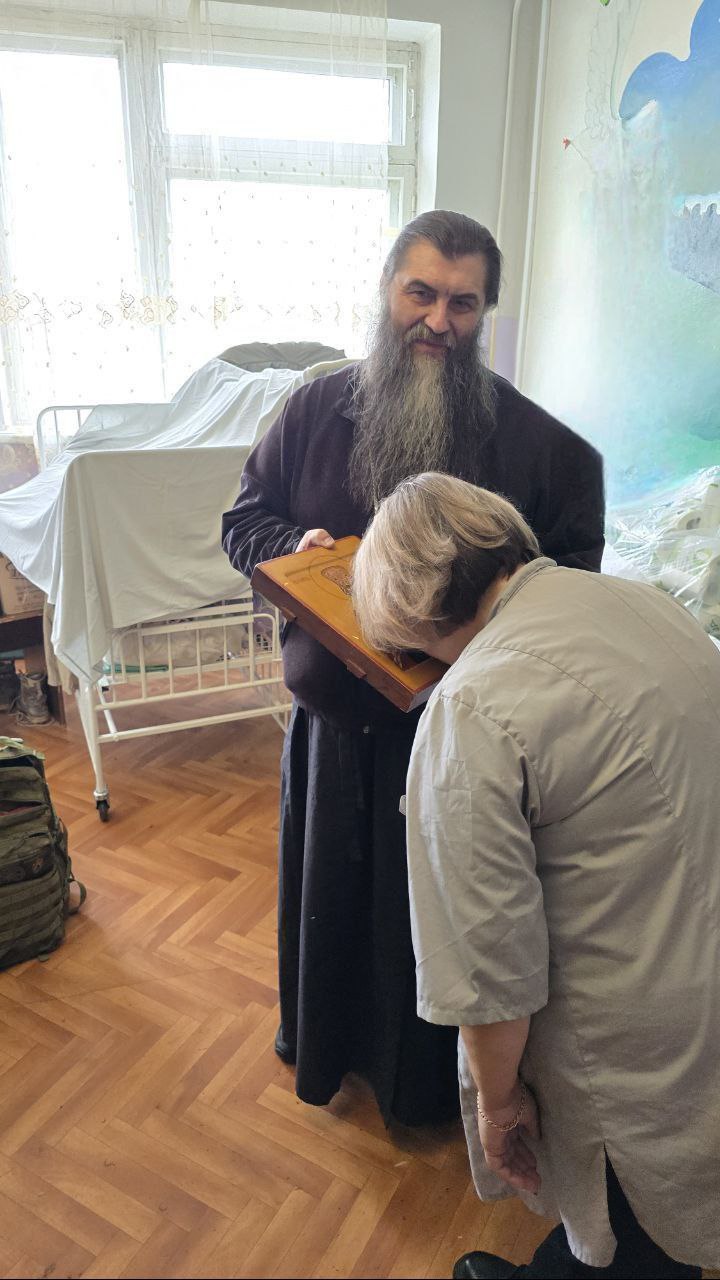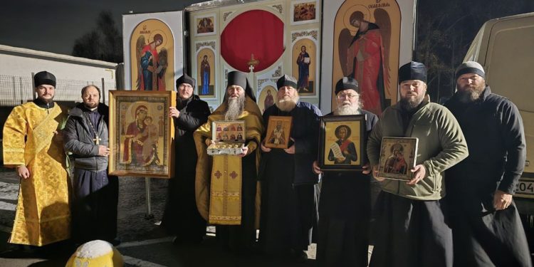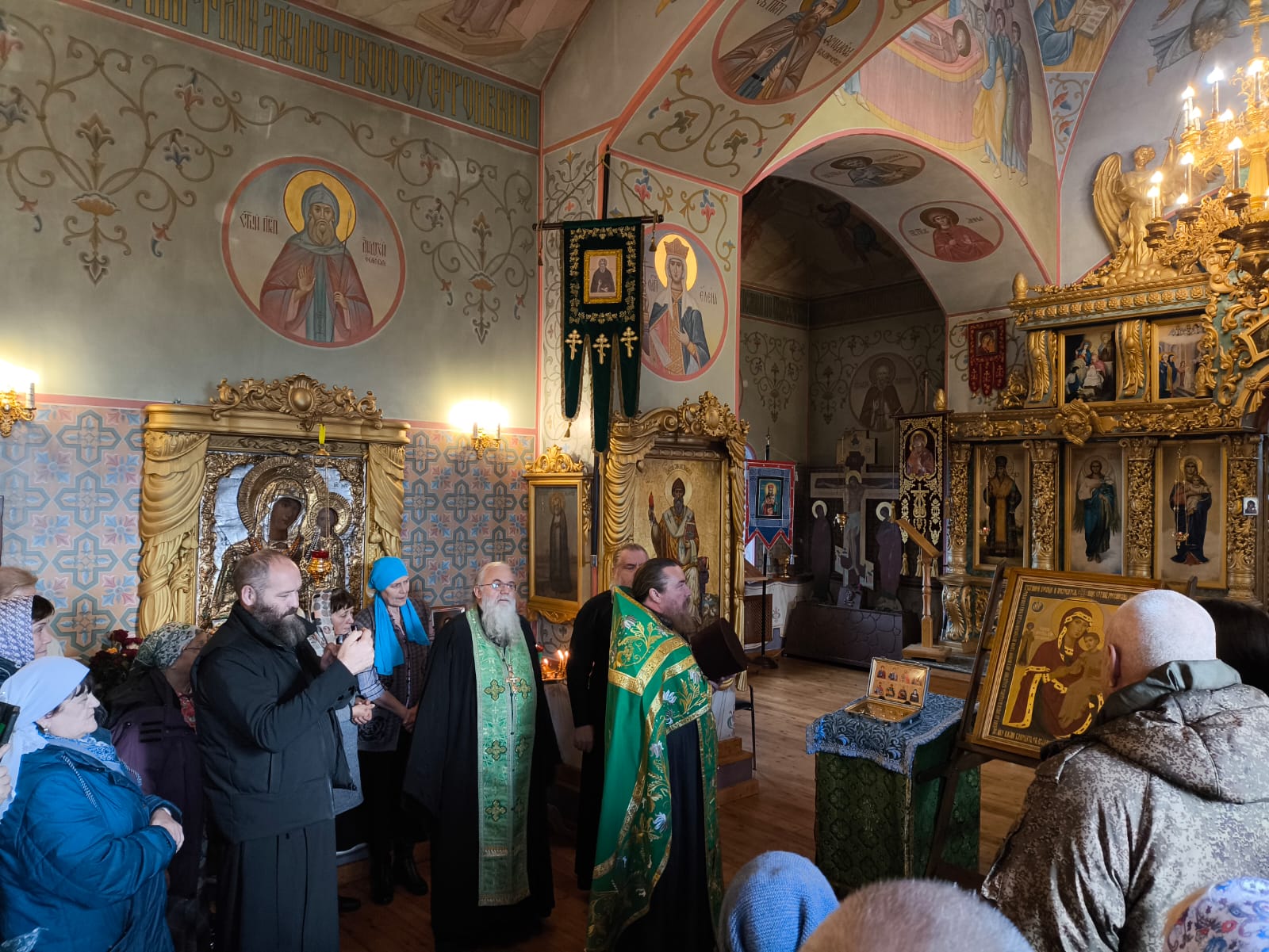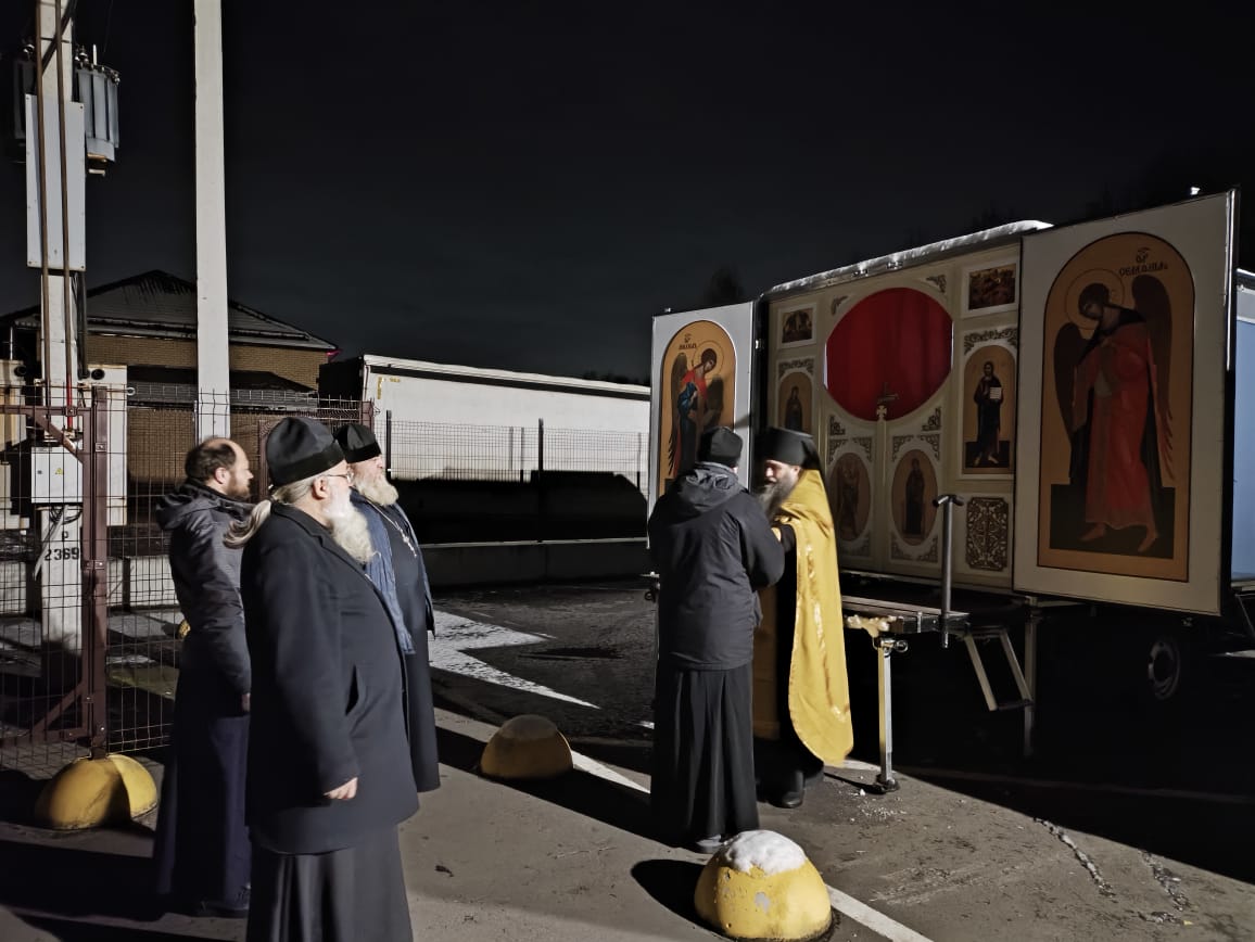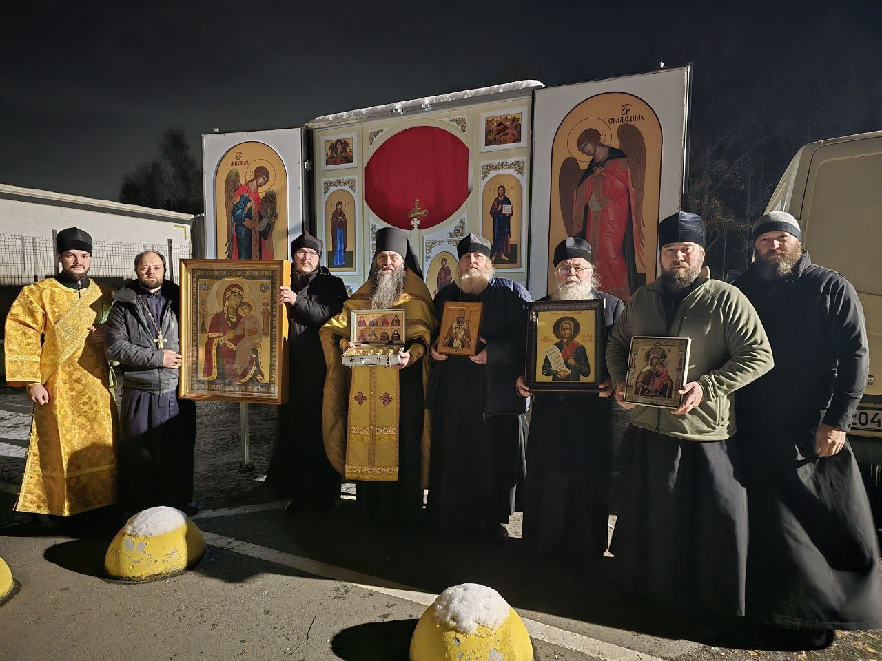 Встреча священнослужителей состоялась рано утром около гостиницы, у кольцевой дороги Брянска, где у передвижного храма был отслужен молебен перед Песчанской иконой Божией Матери и мощами святых воинов. Следующая остановка участников крестного хода была в госпитале города Льгов, где священнослужители отслужили молебен о здравии воинов. После Льгова крестный ход прибыл в город Белгород. Здесь в Главном казачьем храме в честь преподобного Сергия Радонежского отслужили молебен перед Песчанской иконой Божией Матери и другими святынями. Молебен возглавил настоятель храма протоиерей Василий. Вместе со священнослужителями на молебне молились казаки, воины, прибывшие с передовой и прихожане храма.
