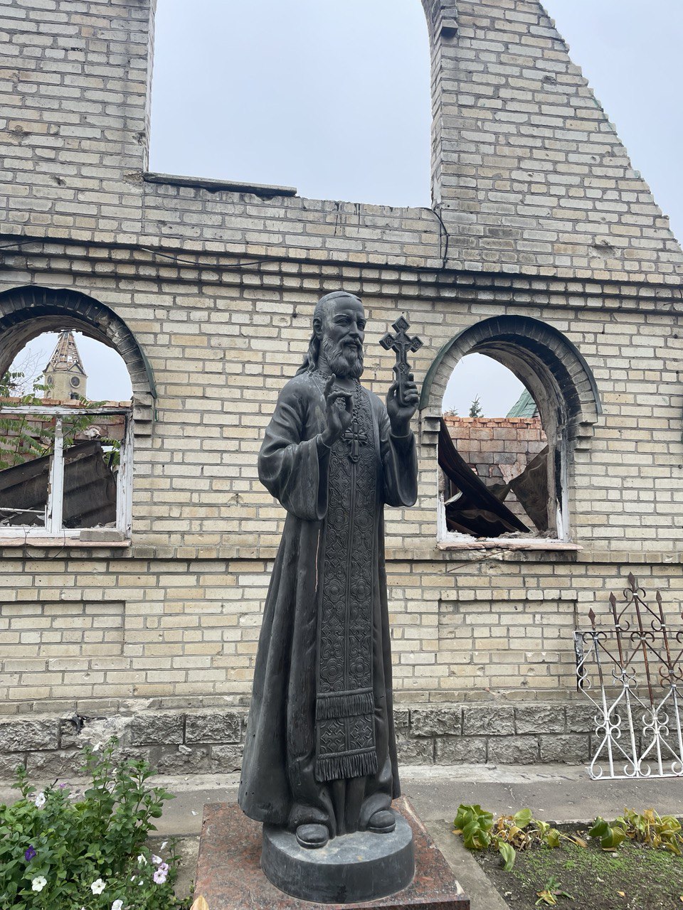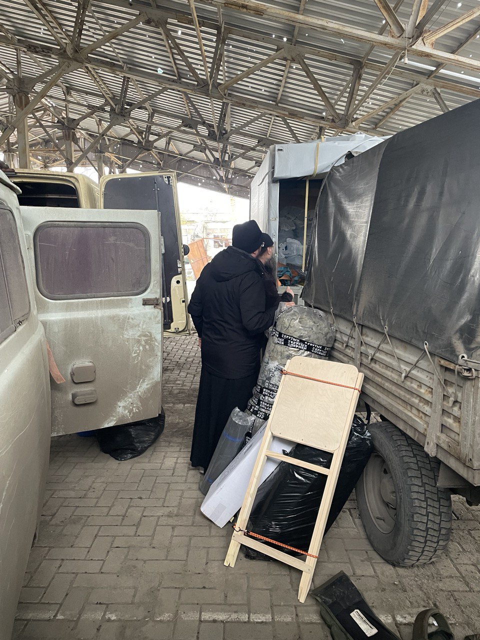 В монастыре, который неоднократно подвергался обстрелам со стороны ВСУ и поврежденным практически на 90%, было отслужено вечернее богослужение, а утром 7-го ноября Божественная литургия, после которой наступила гуманитарная часть миссии.