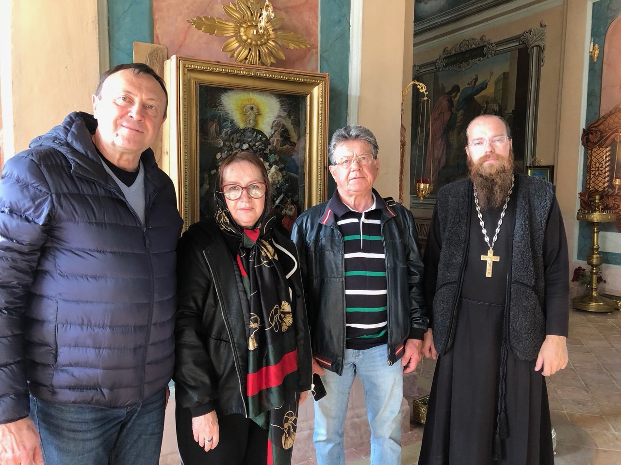 На фото представители оргкомитета выставки «Мастера России» Ю.А. Василенко, Г.В. Ананьина, Ф.В. Полуденный и настоятель храма иерей Тихон Худяков.