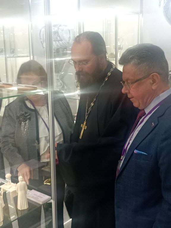 14 ноября древлехранитель Козельской епархии, настоятель храма Преображения Господня села Нижние Прыски иерей Тихон Худяков, доставил на открытие выставки «Мастера России. Ювелирное и камнерезное искусство. Московский самоцветный фестиваль — 2024» наборную икону Преображения Господня начала XIX века. Икона принадлежит храму и постоянно находится в нем. Ранее организаторами выставки была проведена масштабная реставрация данной иконы, и теперь образ привезен для знакомства и возможности поклониться большему числу участников и посетителей выставки, которая пройдет с 15 ноября по 8 декабря этого года.