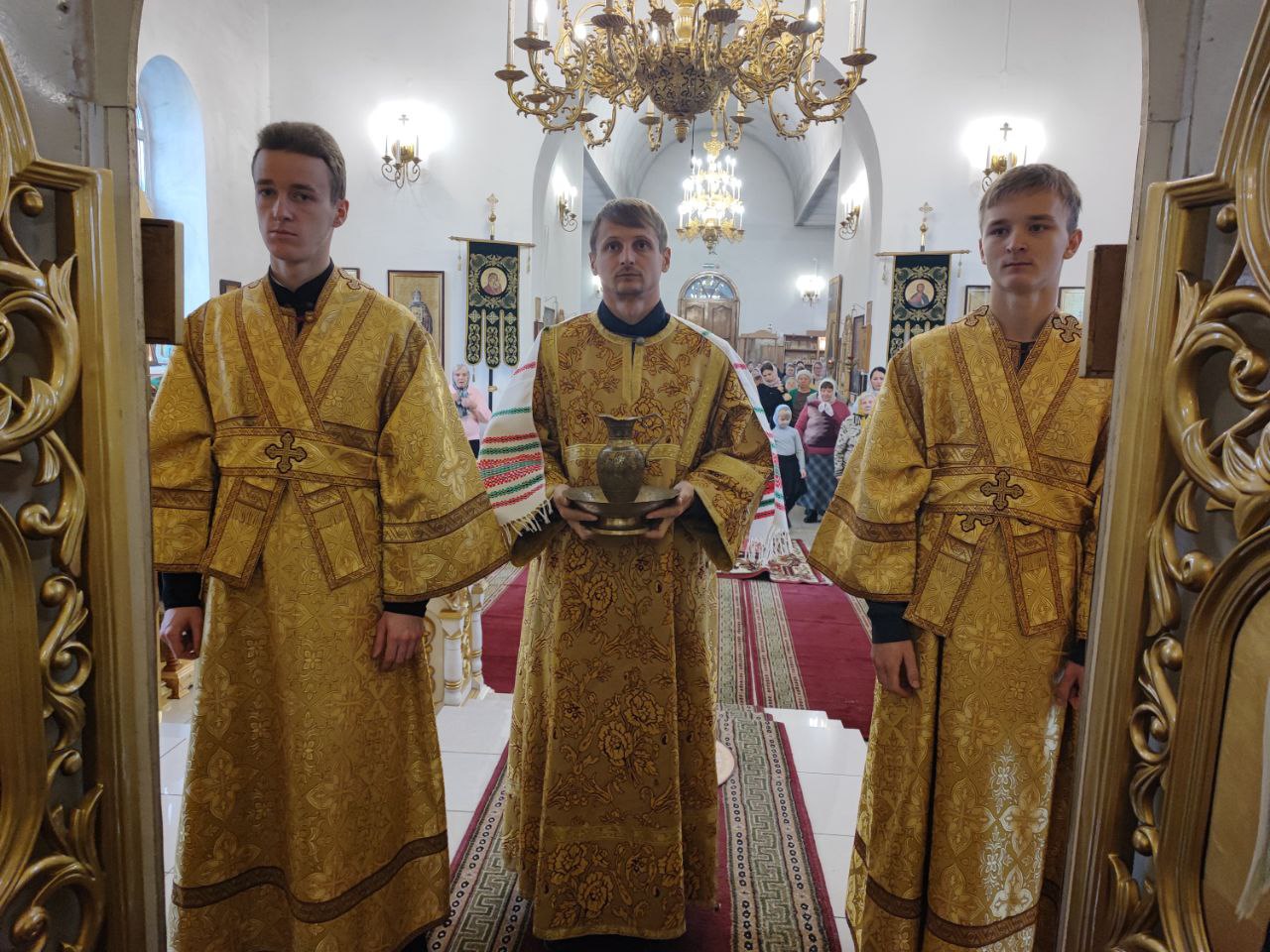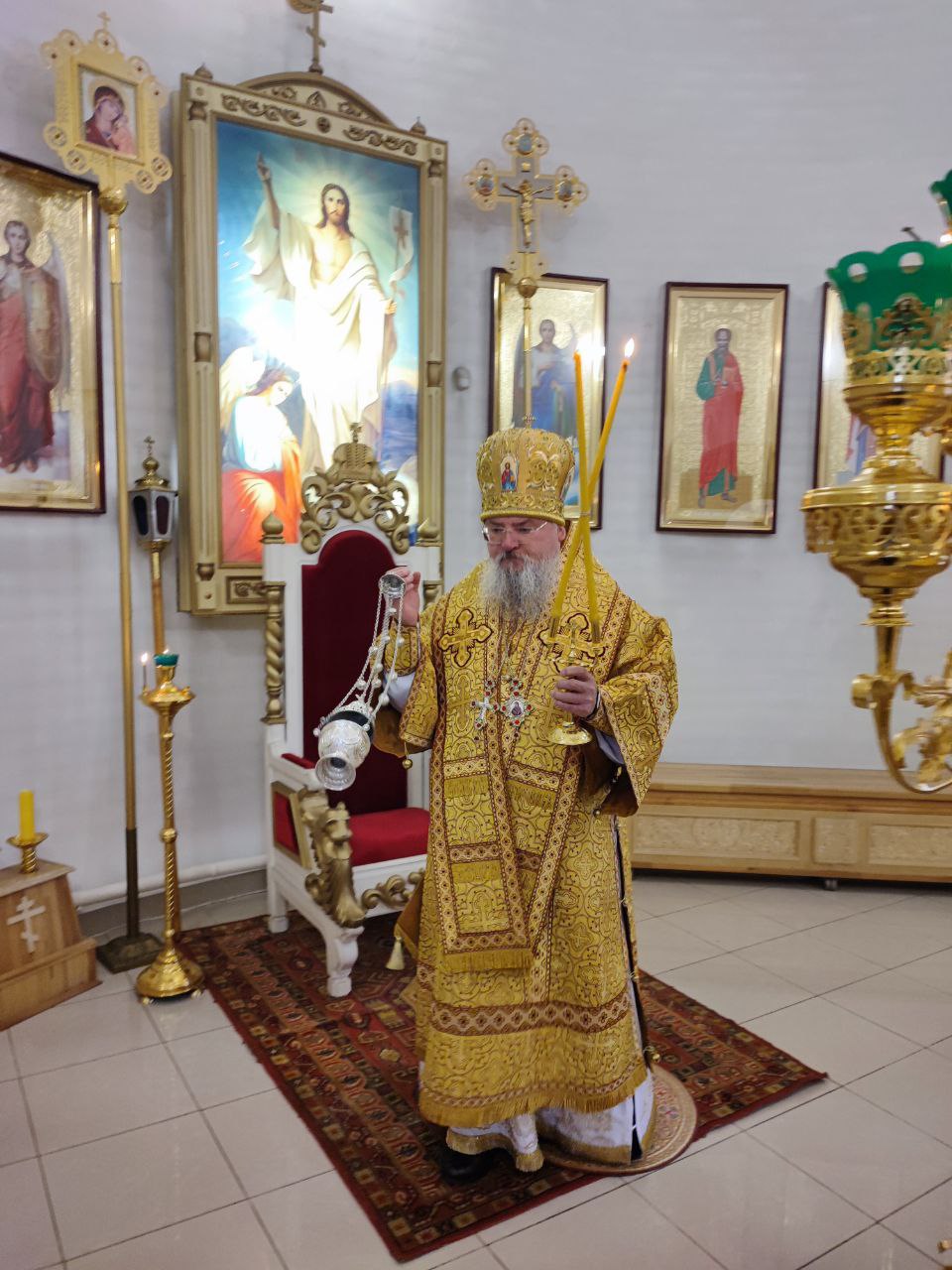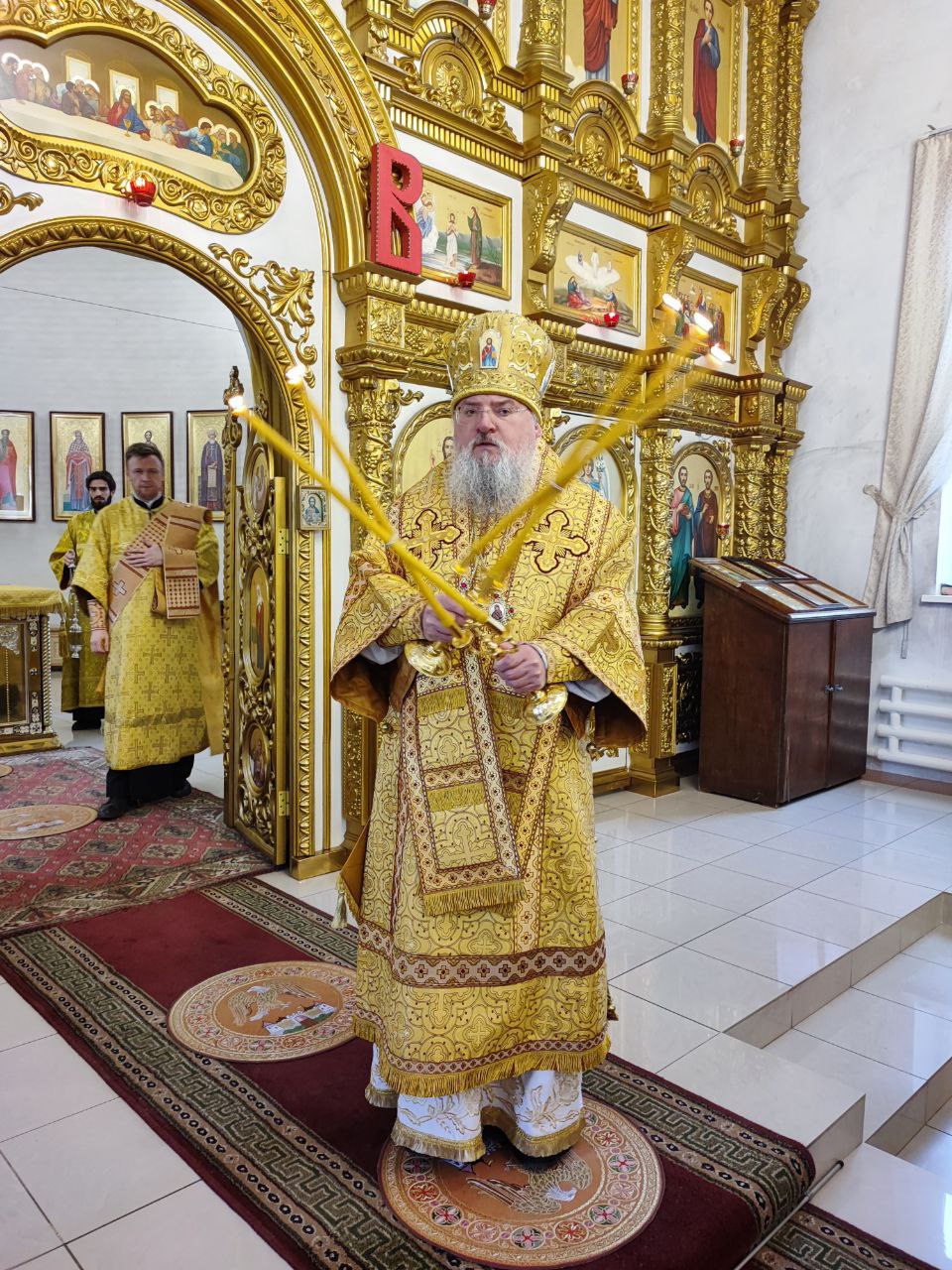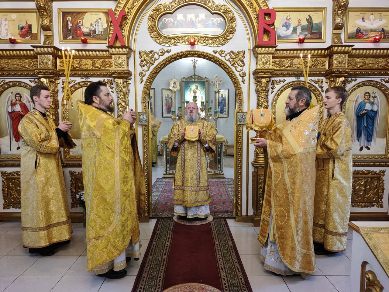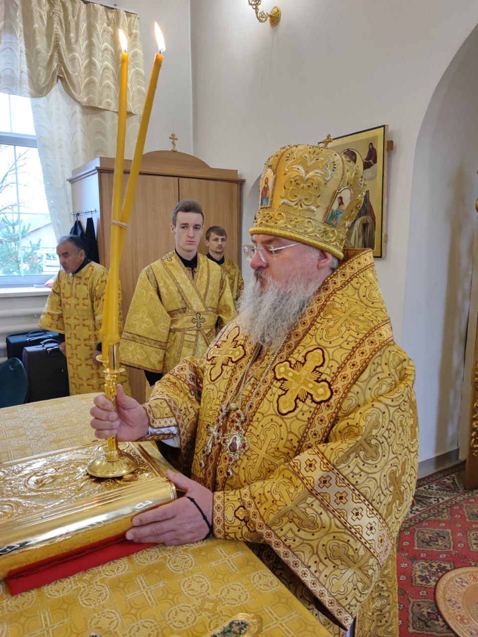 Архипастырю сослужили: настоятель прихода, благочинный округа протоиерей Иоанн Староста, протоиерей Антоний Хатунцев, диакон Евгений Ковригин и диакон Дамиан Рупасов.