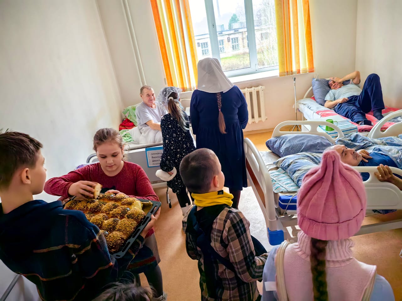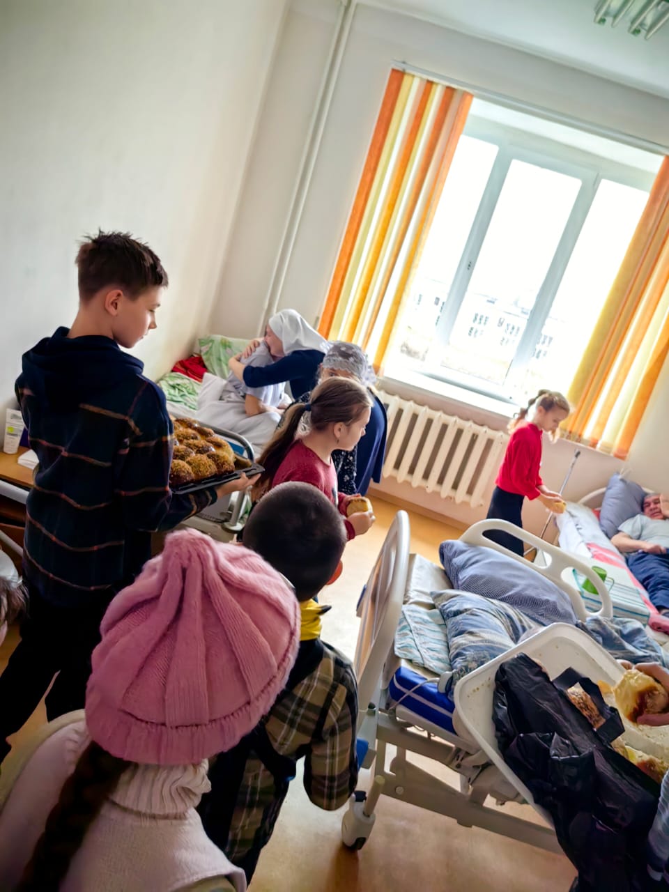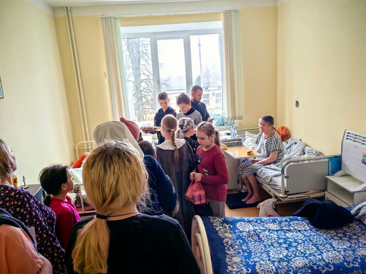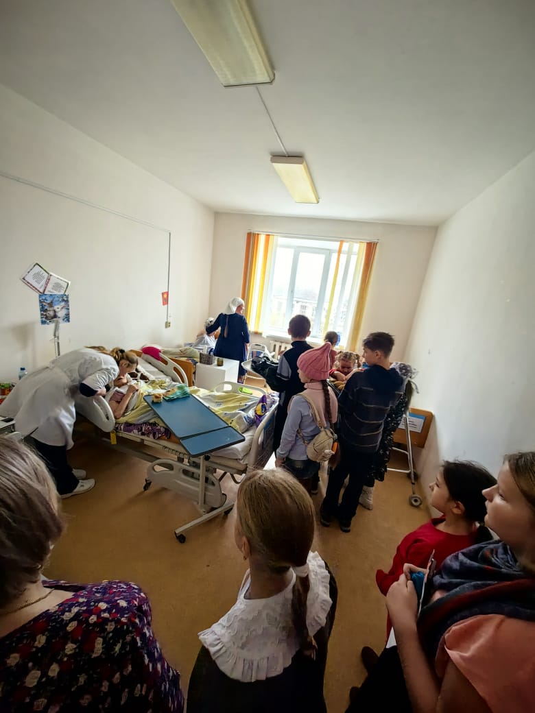 Посещение палат сестринского ухода районной больницы было в рамках воспитательной работы с детьми. Ребята проявили милосердие к пожилым и больным. Дай Бог, через это малое служение, приблизить души детей ко спасению!