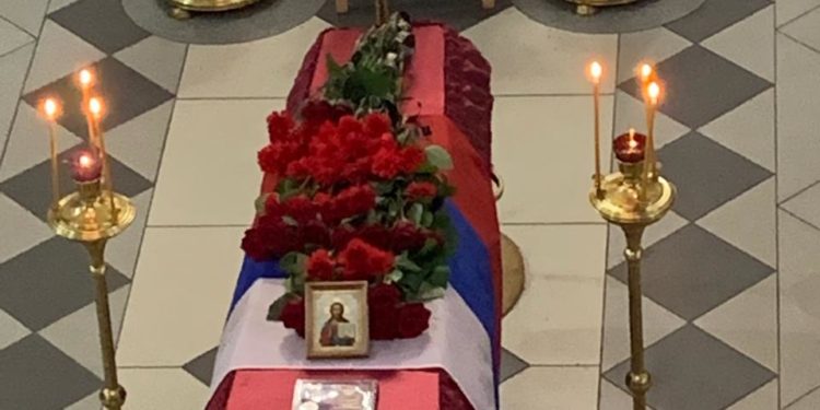 Отпевание погибшего воина в Казанском соборе города Людиново