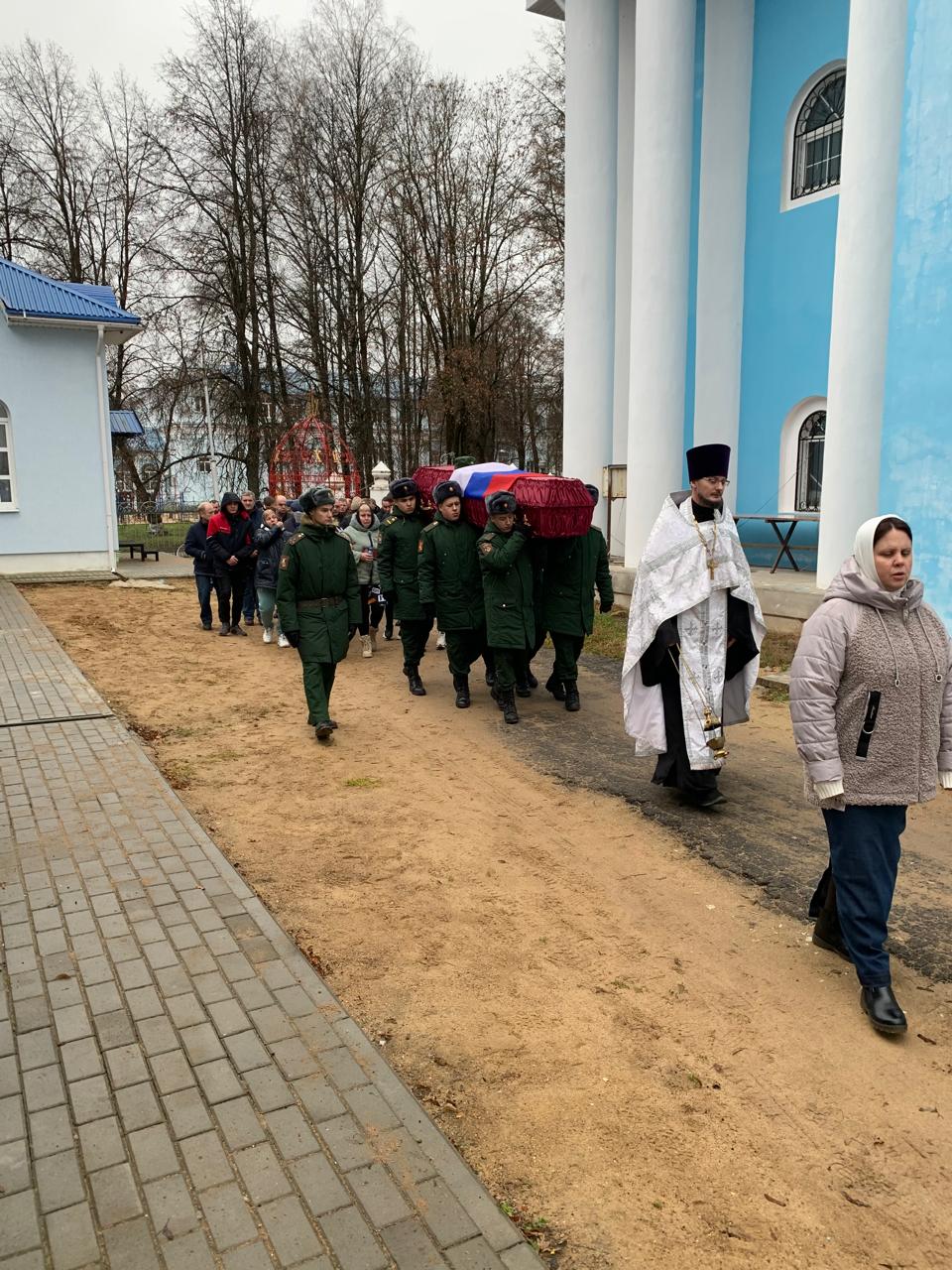 Крестным ходом из храма проводили гроб с телом Андрея в последний путь. Около храма, на улице, священник и певчие отслужили литию о погибшем воине.
