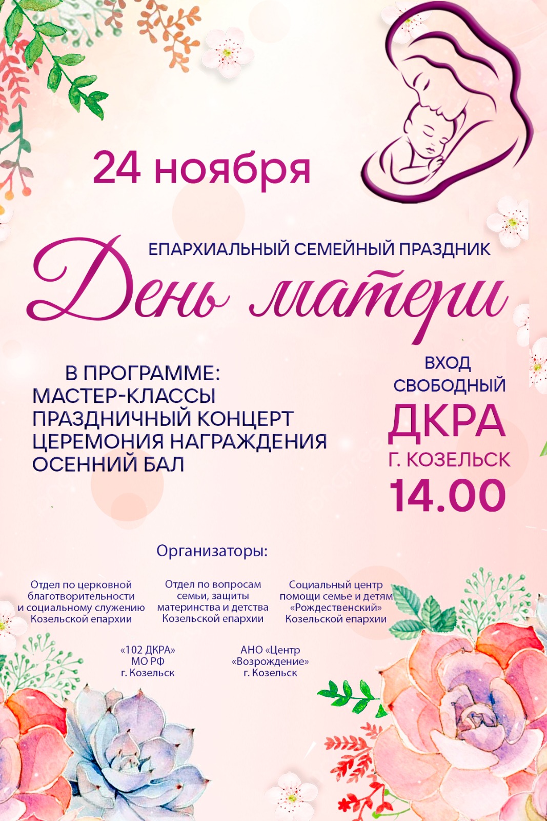 Козельская епархия приглашает на праздник День Матери 24 ноября сего года