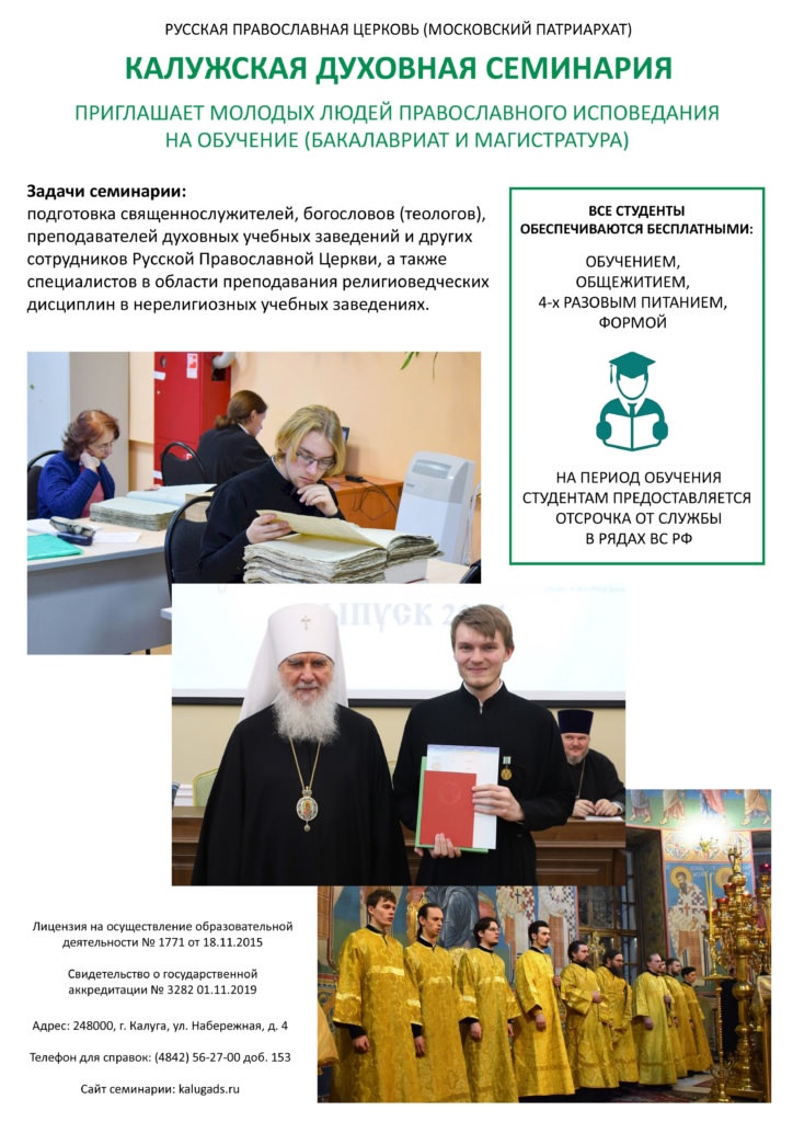 Калужская духовная семинария приглашает страшеклассников на День открытых дверей!