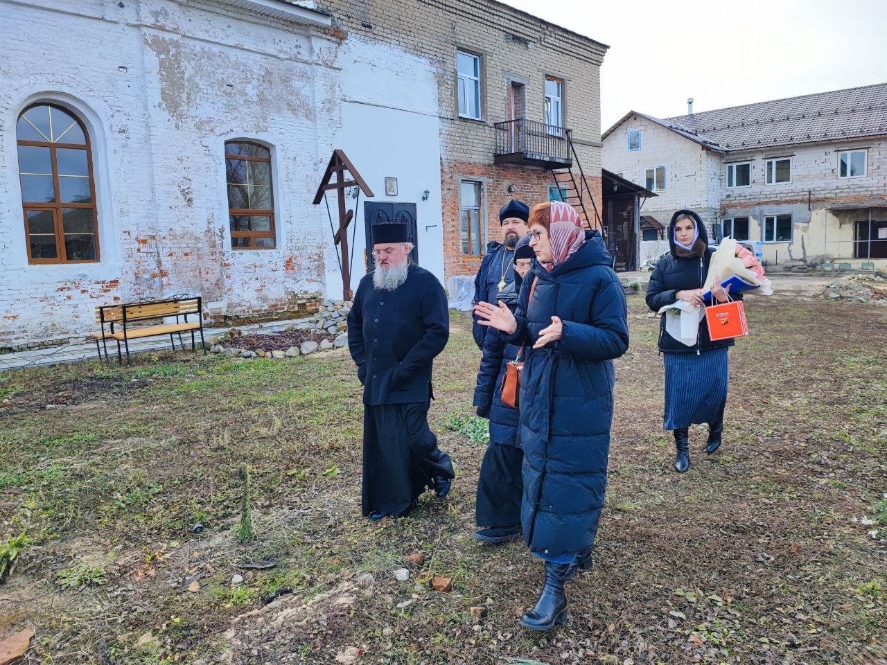 Во встрече приняли участие: представитель администрации Зюсько Алена Владимировна, секретарь Козельской епархии, благочинный Козельского округа протоиерей Владимир Бахаев, эконом епархии иеромонах Паисий (Курмаз), секретарь – референт епархии Владимир Валерьевич Лужков, старшая сестра подворья монахиня Вероника (Абрамова).