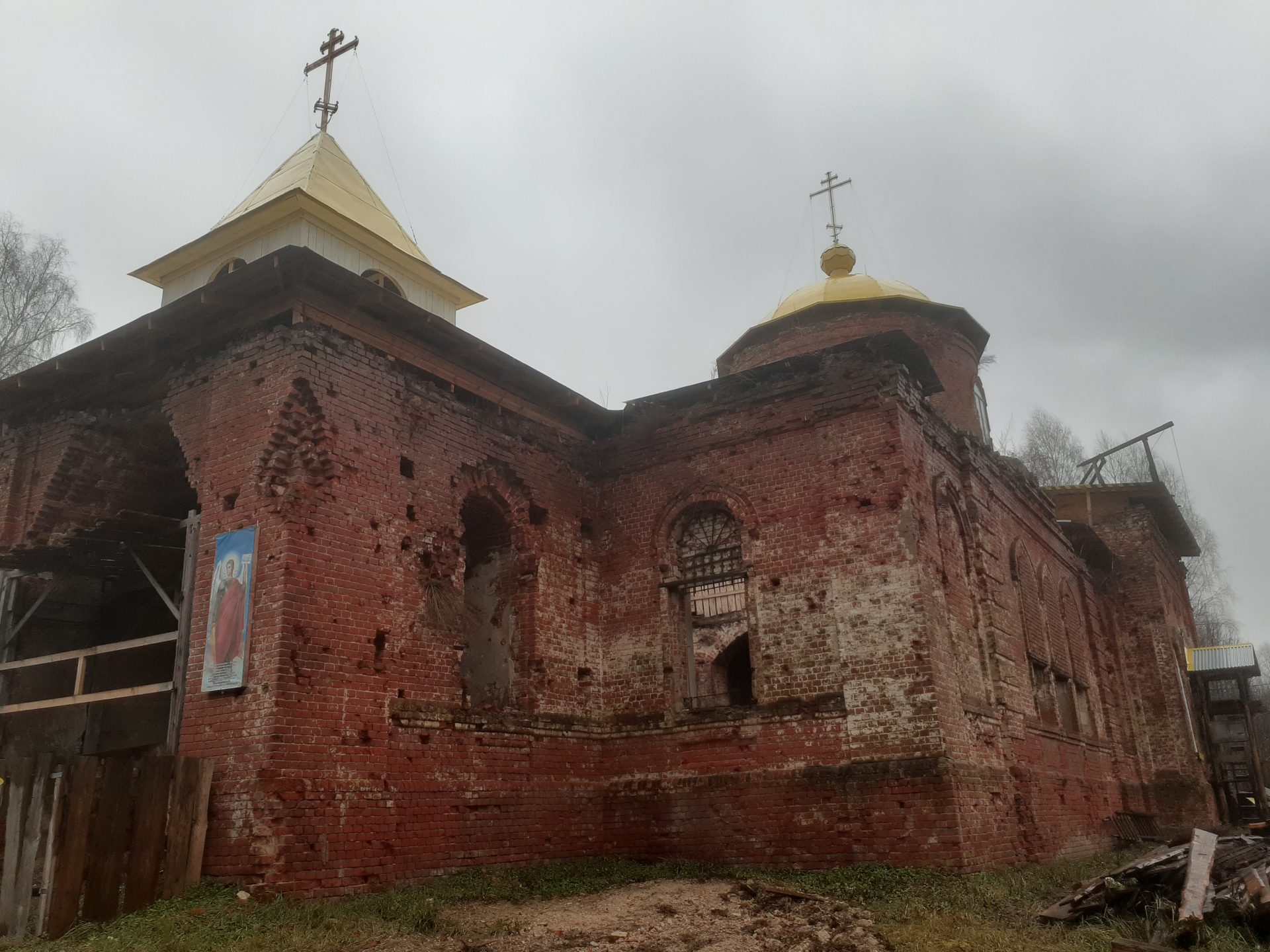 В 1895 г. церковь находилась в ветхом состоянии. К этому времени строительство каменной церкви было окончено вчерне. Крыша покрыта железом и окрашена медянкой.