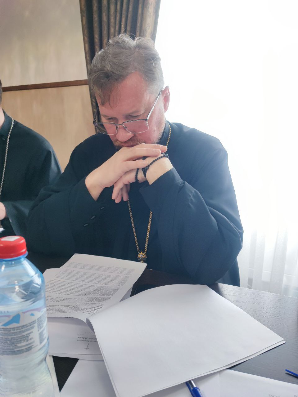 После вступительного слова Управляющего епархией епископа Никиты, с информацией о жизни епархии со времени проведения предыдущего заседания Епархиального Совета, были заслушаны сообщения заведующего канцелярией епархии иерея Филиппа Лисенкова и секретаря – референта епархии Владимира Валерьевича Лужкова об актуальных для епархиальных подразделений циркулярных письмах из Калужской митрополии и Управления делами Московской Патриархии.