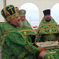 Божественную литургию и малое освящение храма совершил епископ Козельский и Людиновский Никита.
