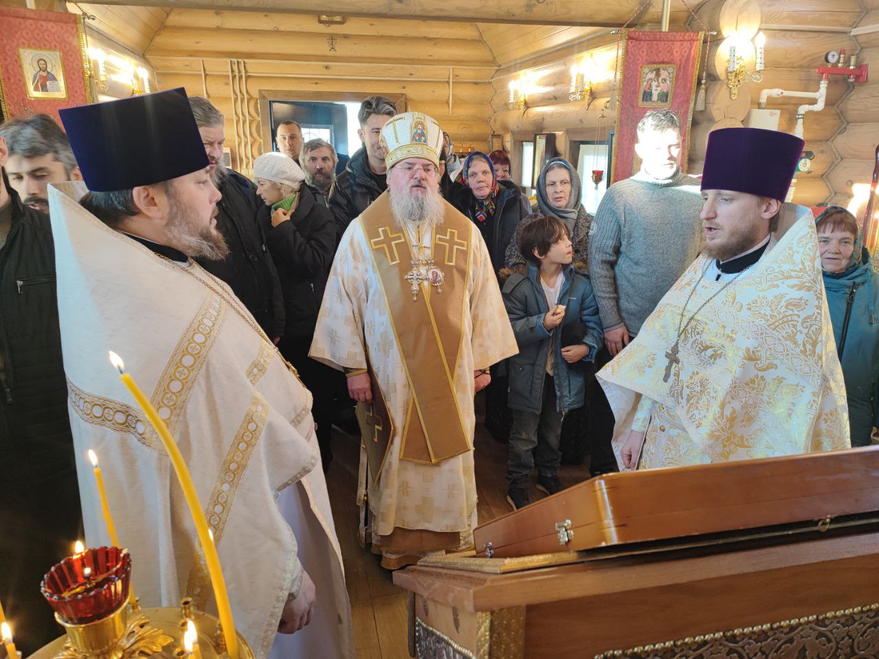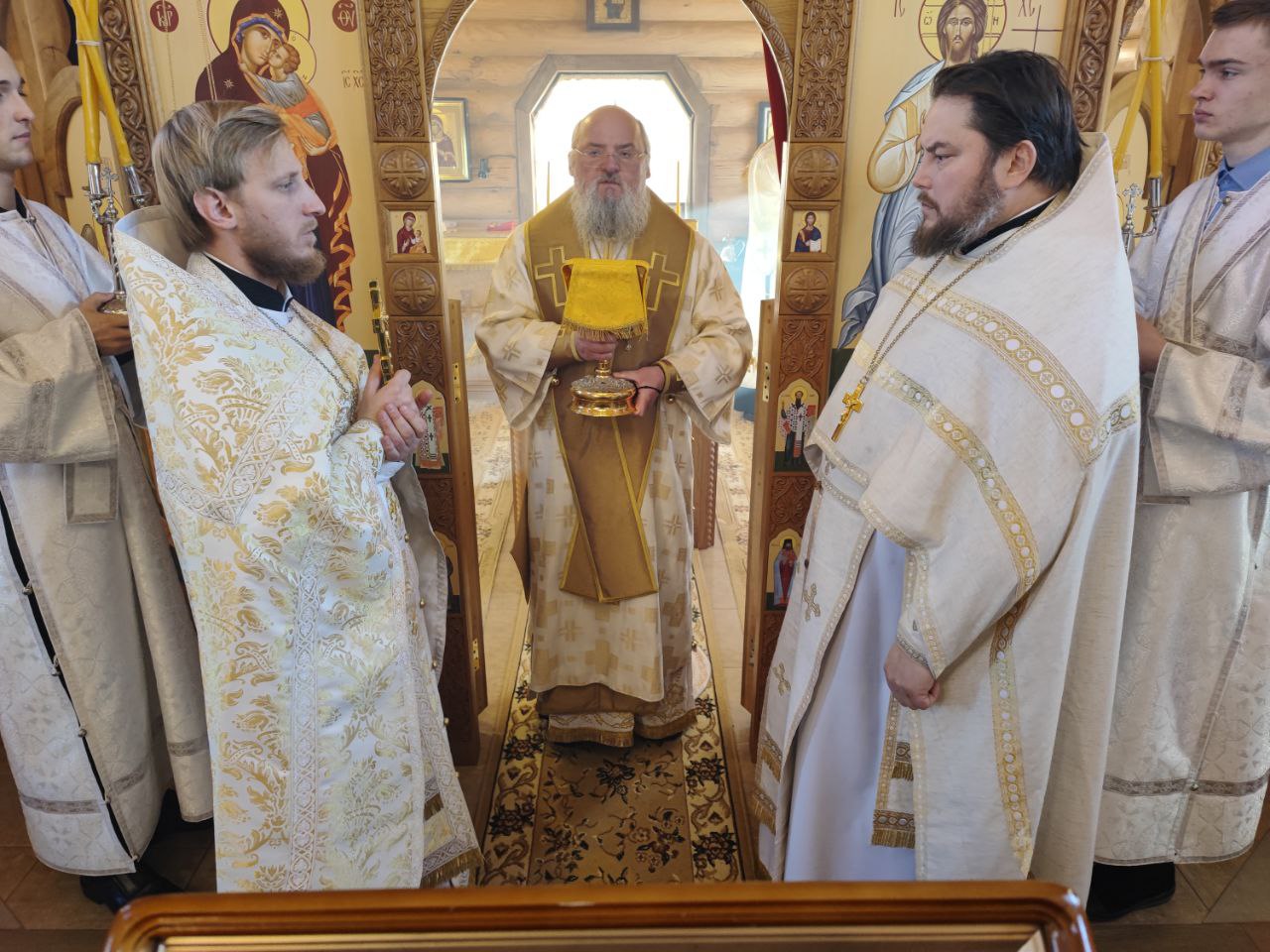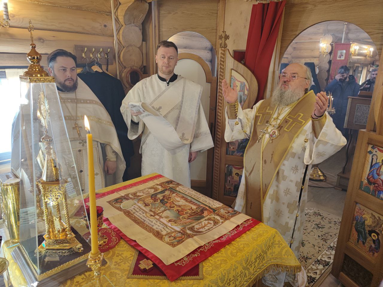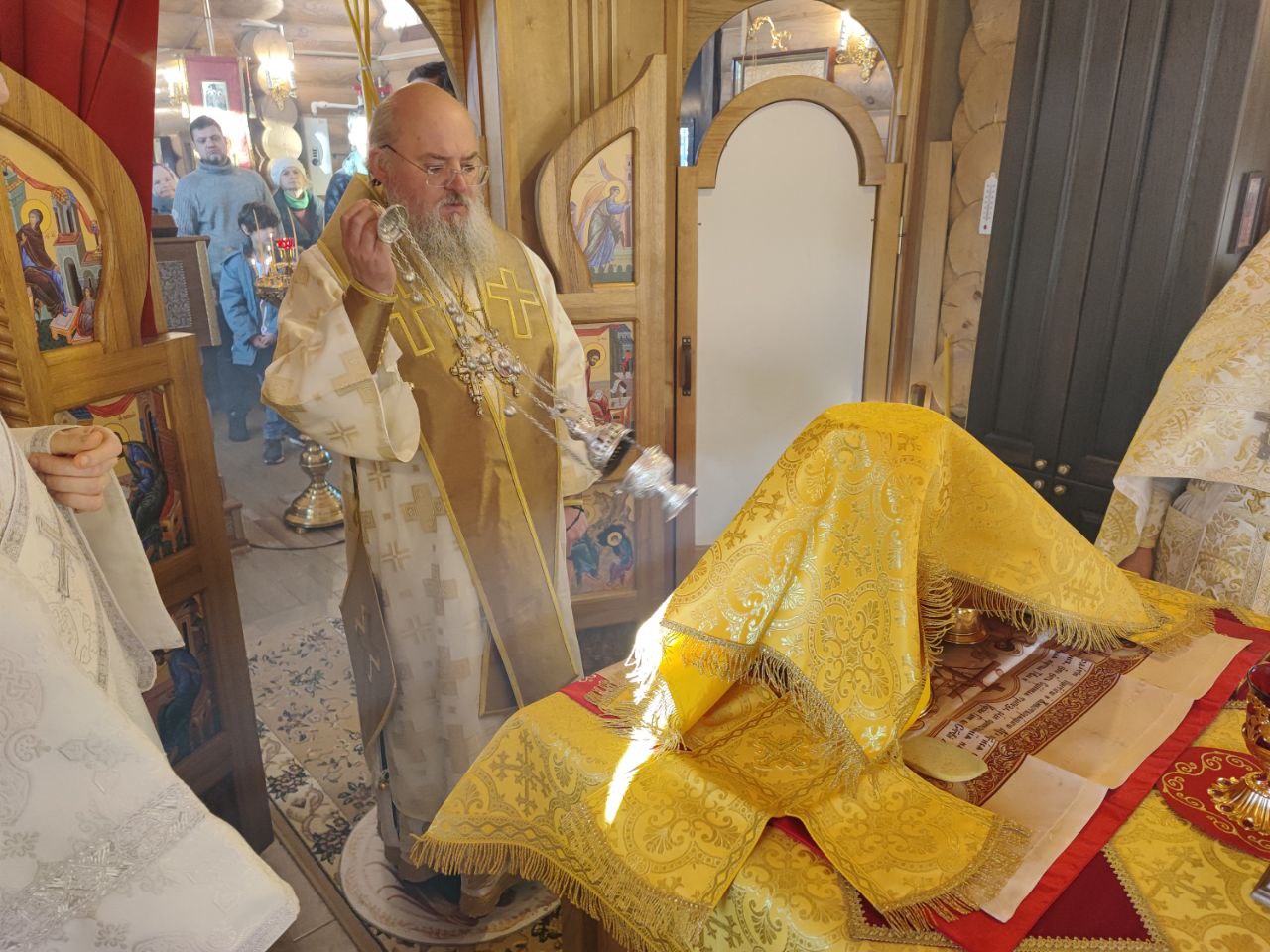 Архипастырю сослужили: протоиерей Антоний Хатунцев, иерей Лев Шиповский — настоятель прихода и диакон Евгений Ковригин.