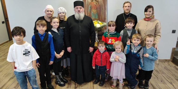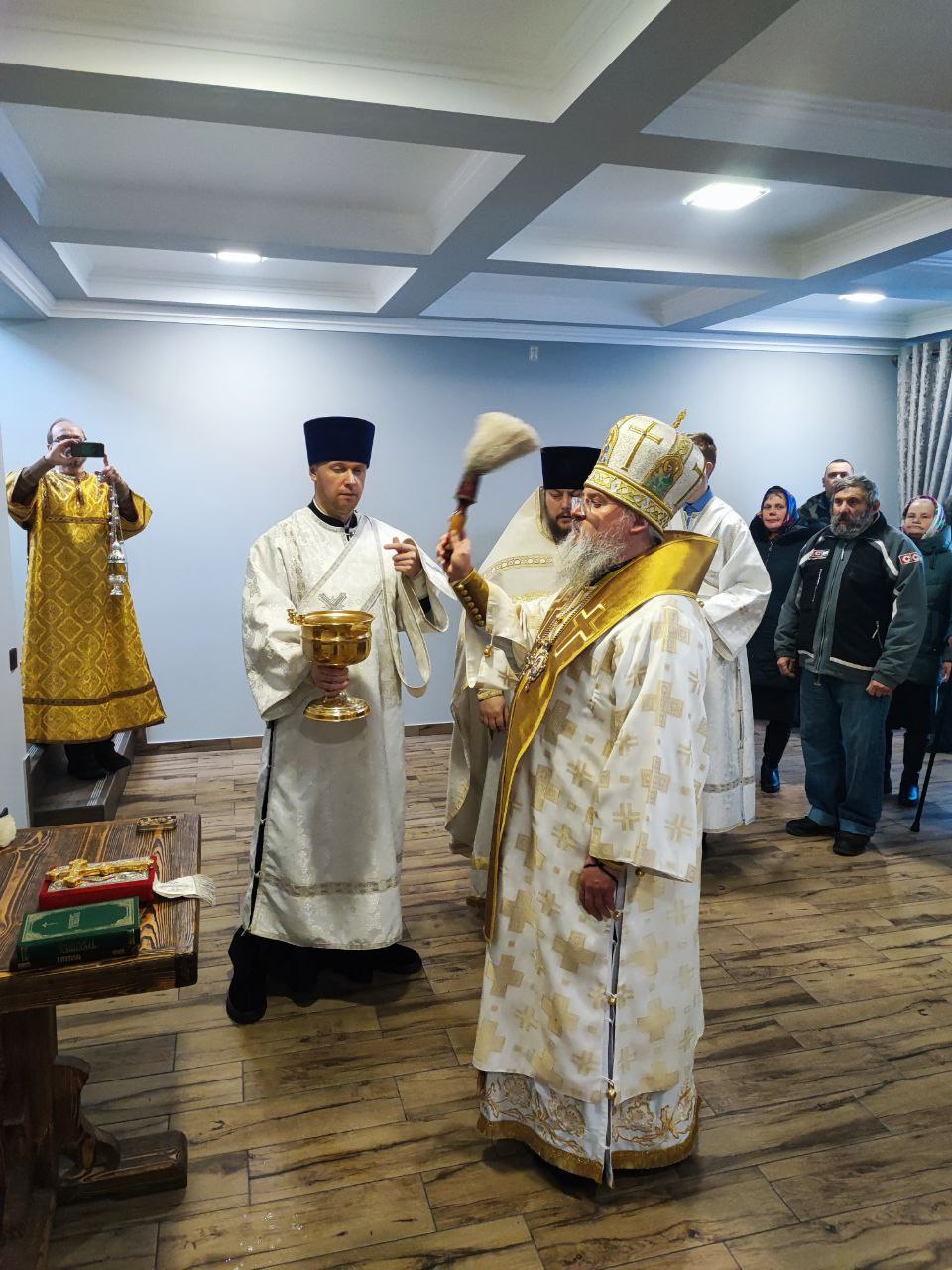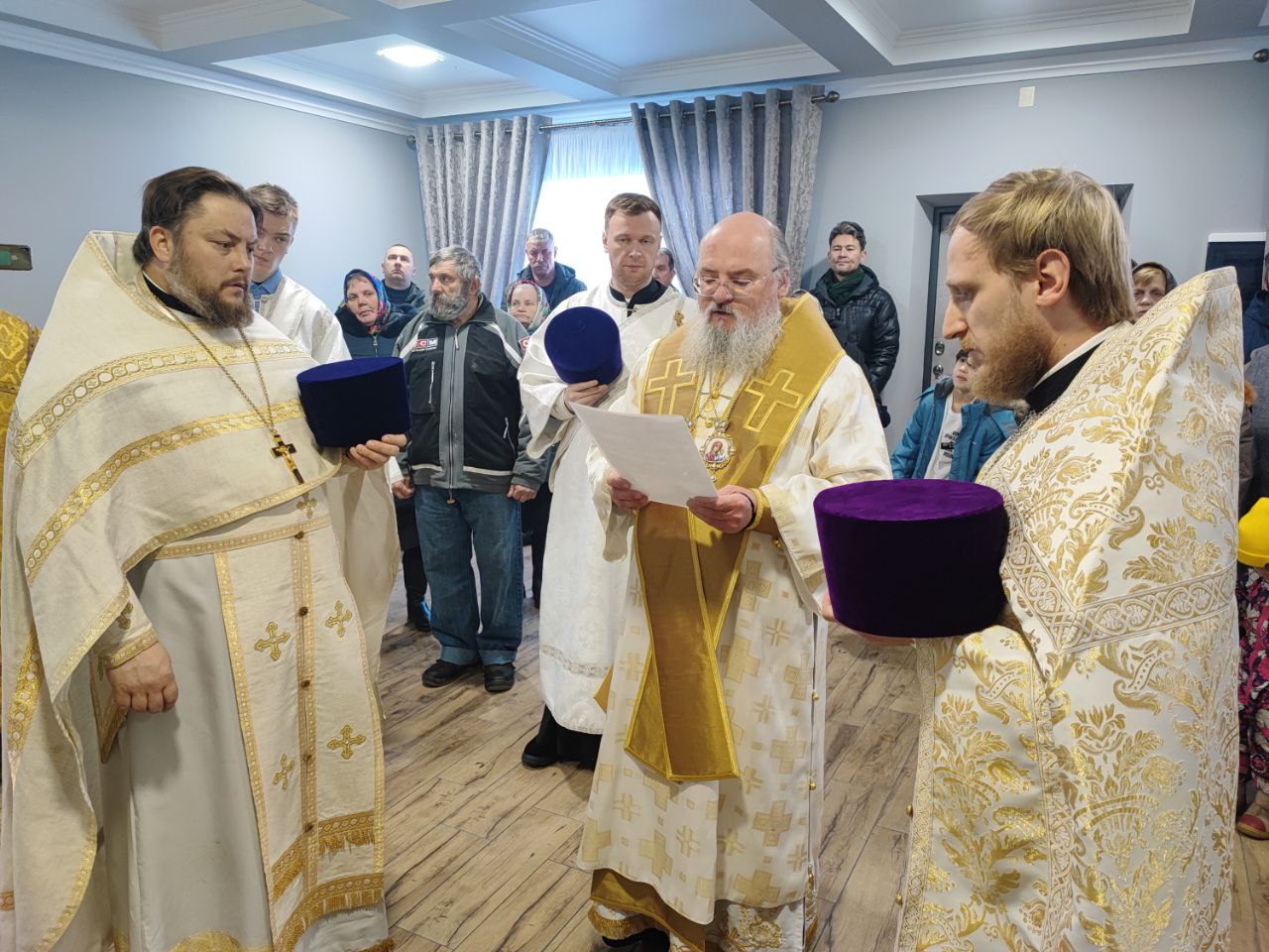 По отпусте литургии священнослужители совершили славление архистратигу Божию Михаилу и всем Небесным Силам Бесплотным, а также освящение приходского дома.