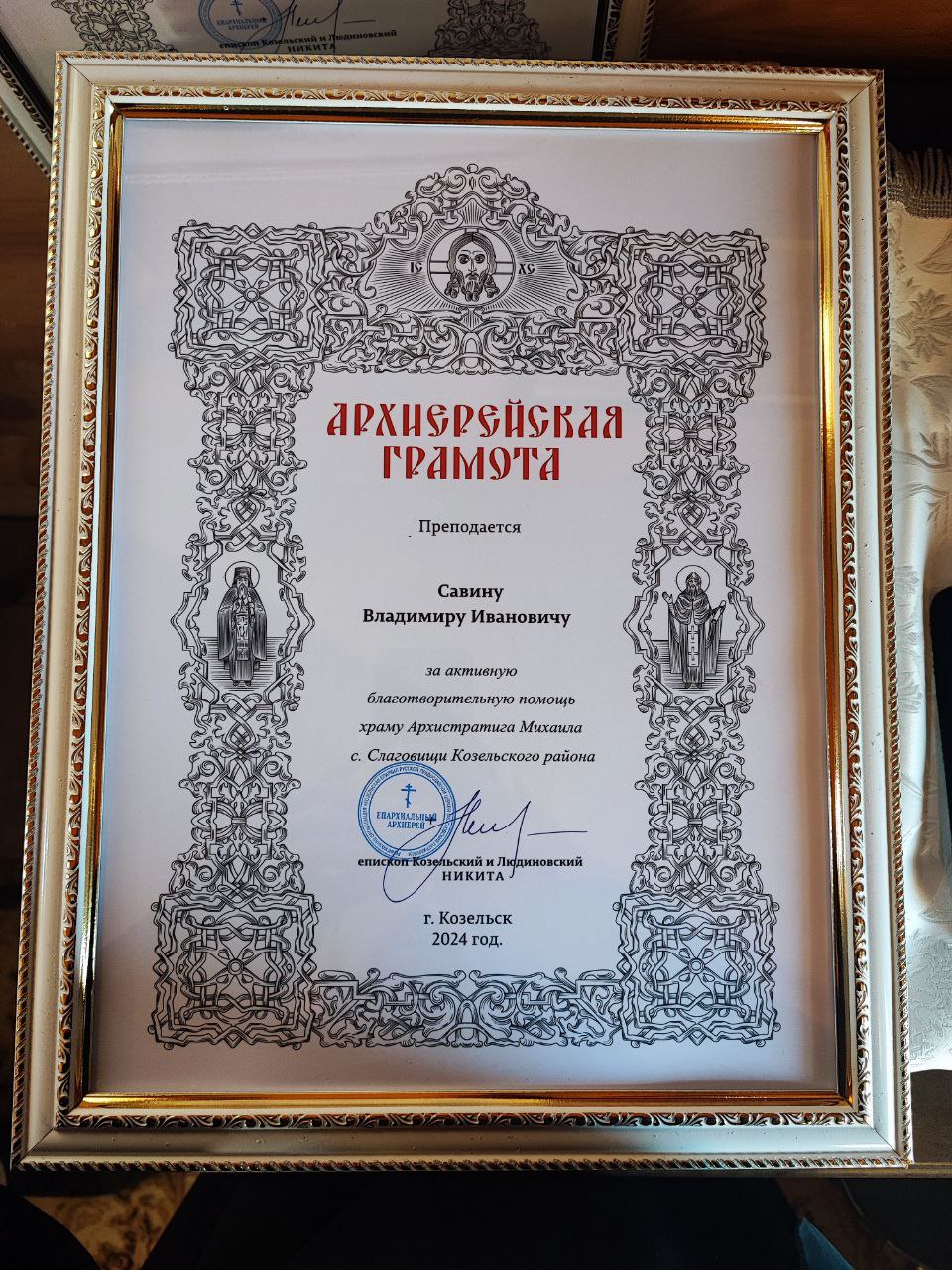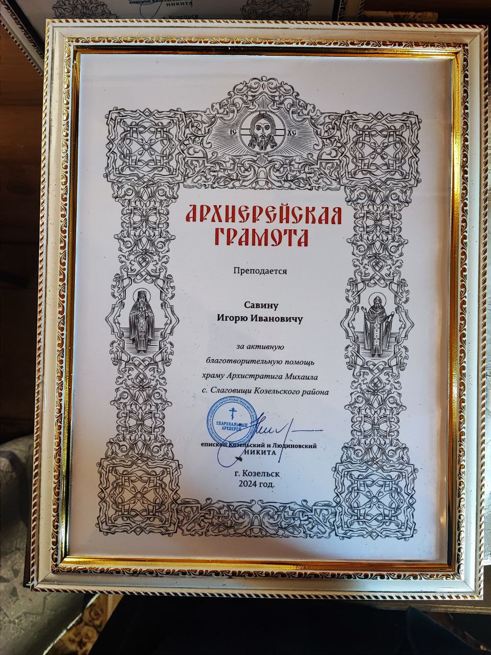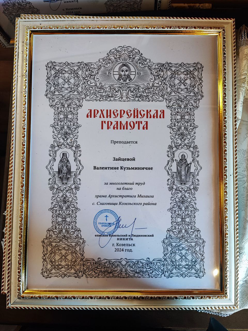 Епископ Козельский и Людиновский Никита совершил Божественную литургию в храме святого Архистратига Божия Михаила в селе Слаговищи Козельского района.