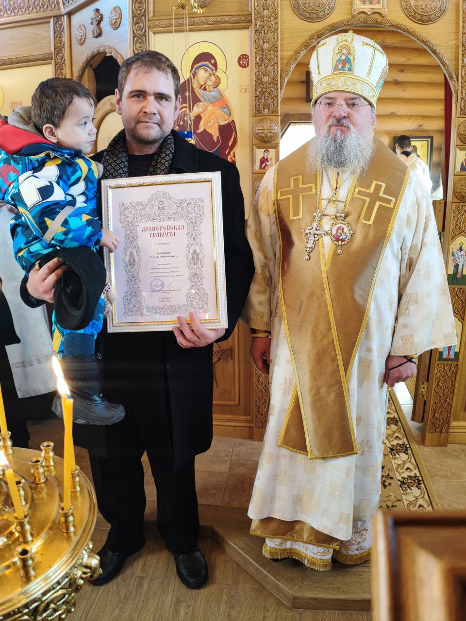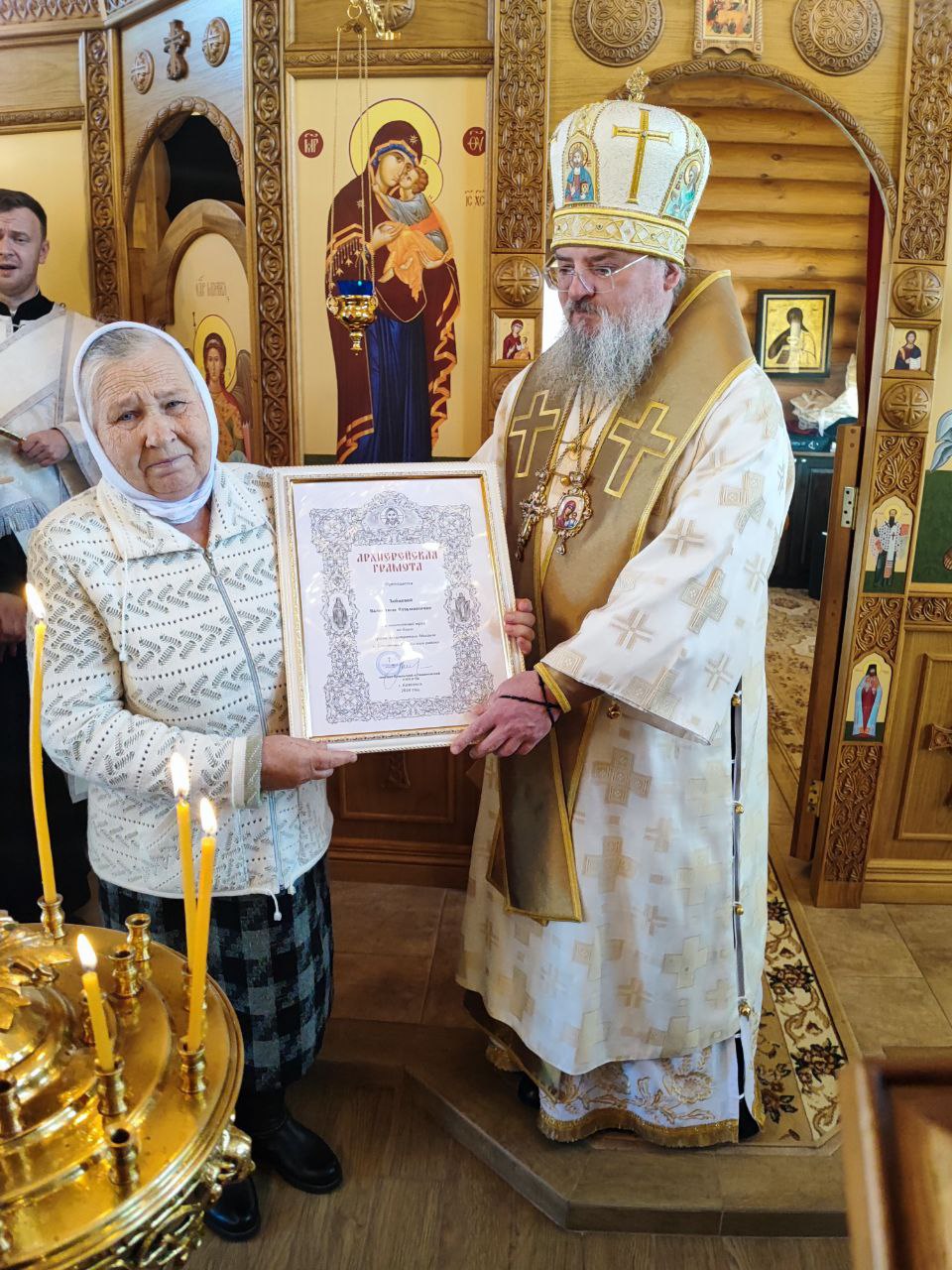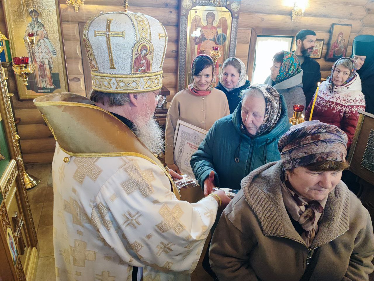 Архипастырь вручил благодарственные Архиерейские грамоты активным прихожанам, потрудившимся в благоустройстве и благоукрашении храма и приходского дома.