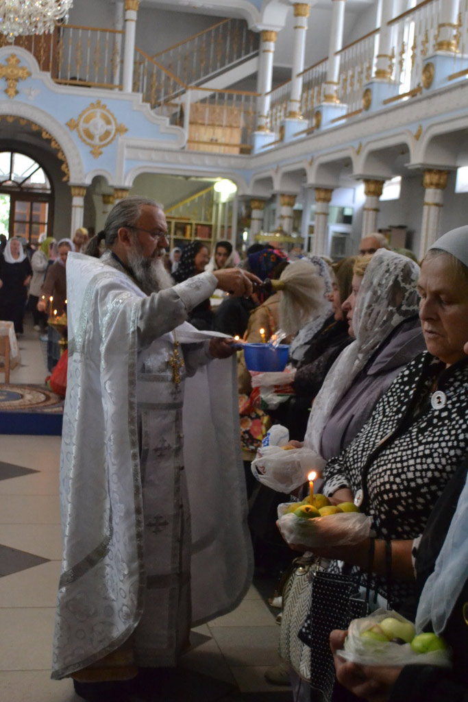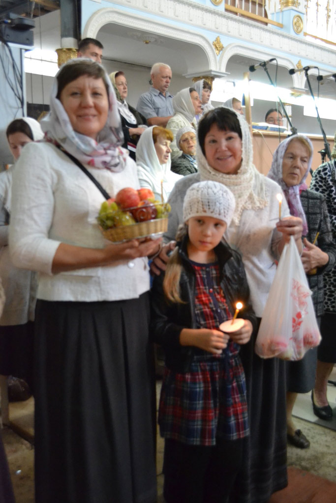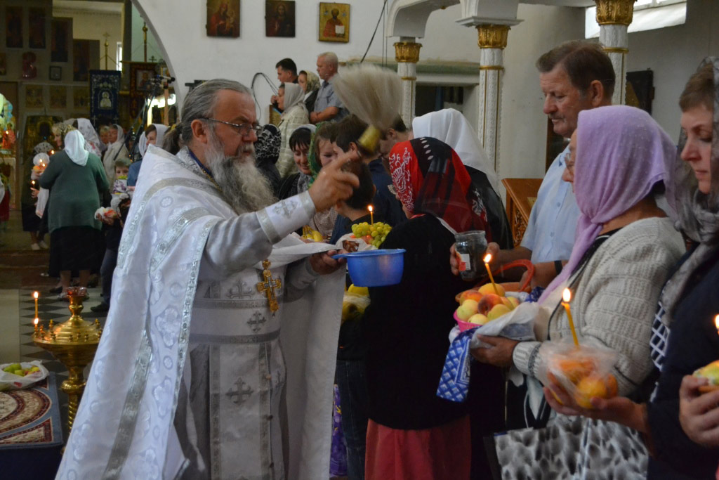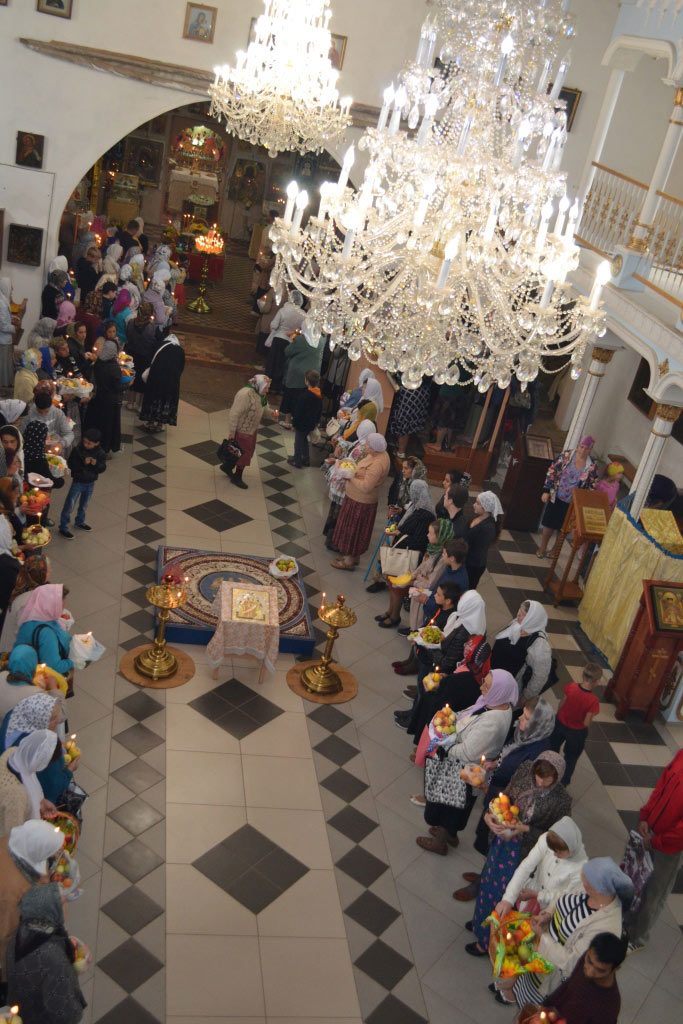 По окончании Божественной литургии настоятель Казанского собора – протоиерей Алексий Жиганов совершил чин освящения винограда и щедрых даров Божиих. Обычай освящать всё словом Божиим и молитвой, есть древнейший обычай христиан, перешедший к нам из Ветхозаветной Церкви. И сейчас, Церковь, благословляя вещественные плоды возносит наши мысли к духовным плодам и просит Господа украсит нашу жизнь Своими дарованиями. После богослужения, следуя благочестивой традиции, освящённые плоды были розданы нуждающимся.