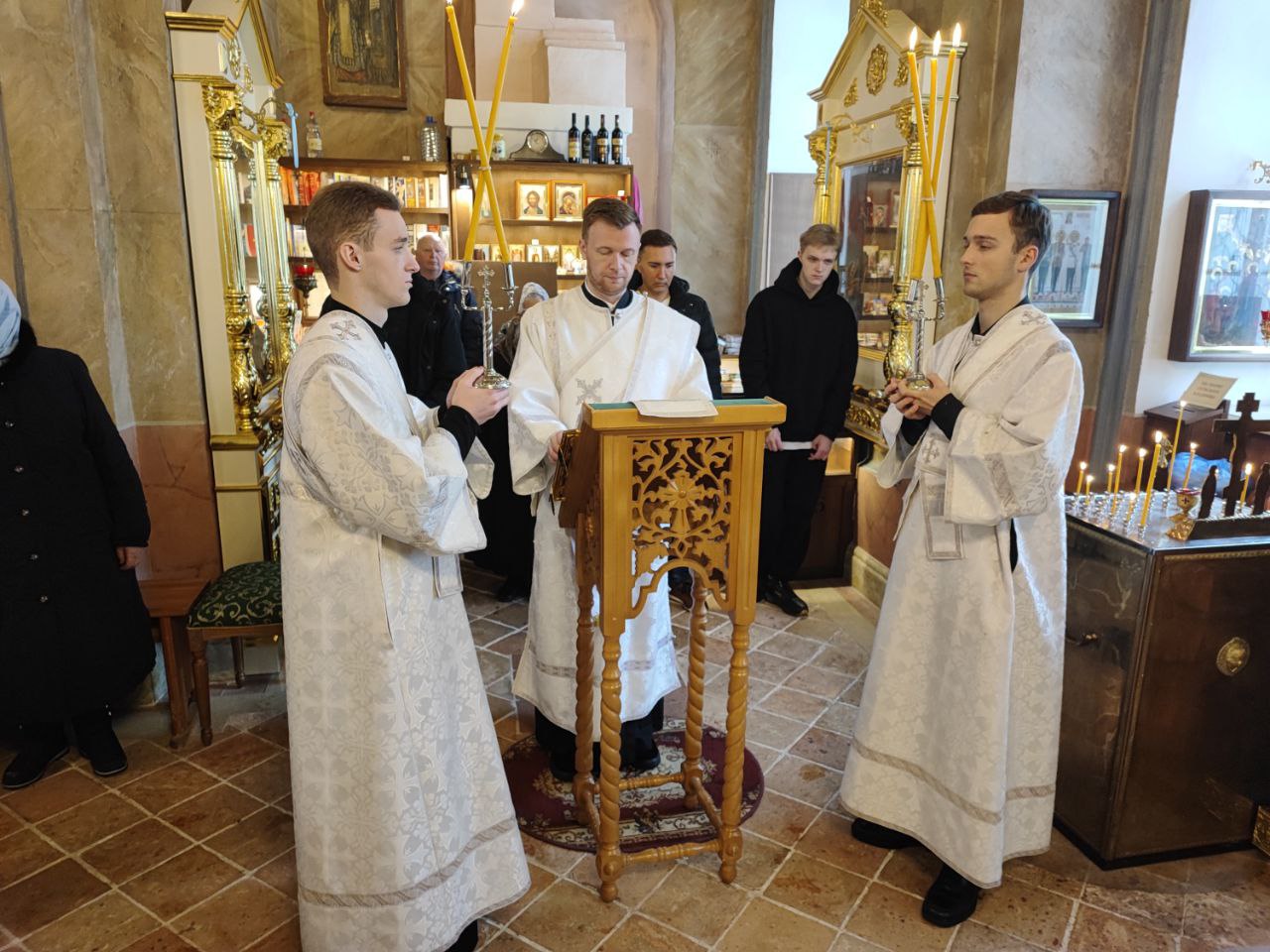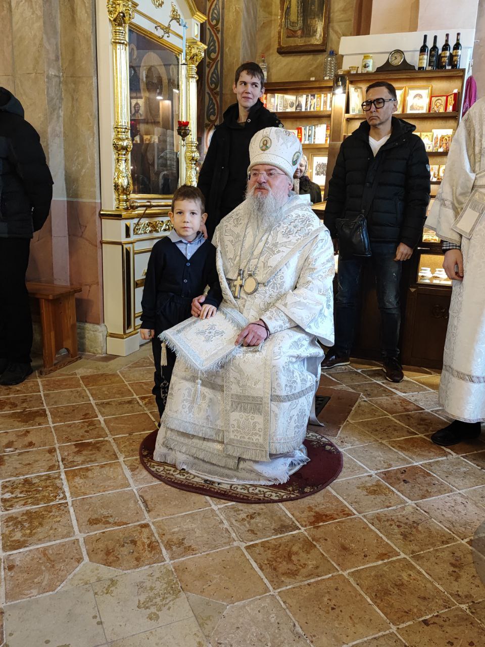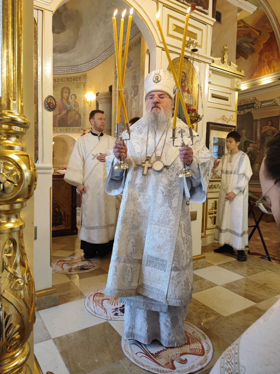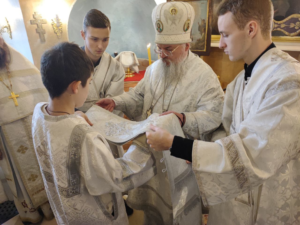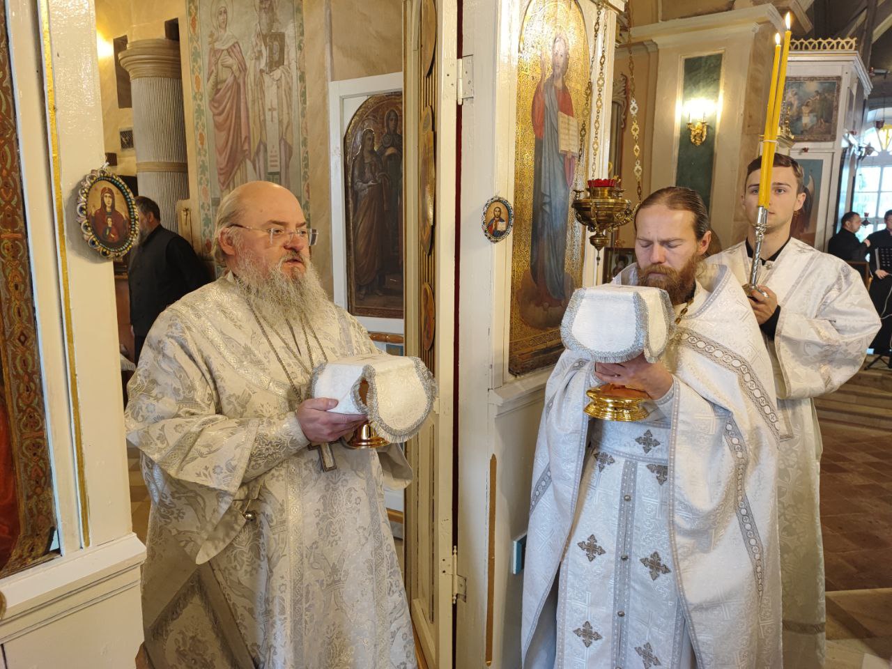 Архипастырю сослужили: иерей Тихон Худяков – настоятель прихода, иерей Симеон Худяков, иерей Виктор Носов, иерей Филипп Лисенков, иерей Евгений Чуркин, диакон Евгений Ковригин и диакон Валерий Волков.