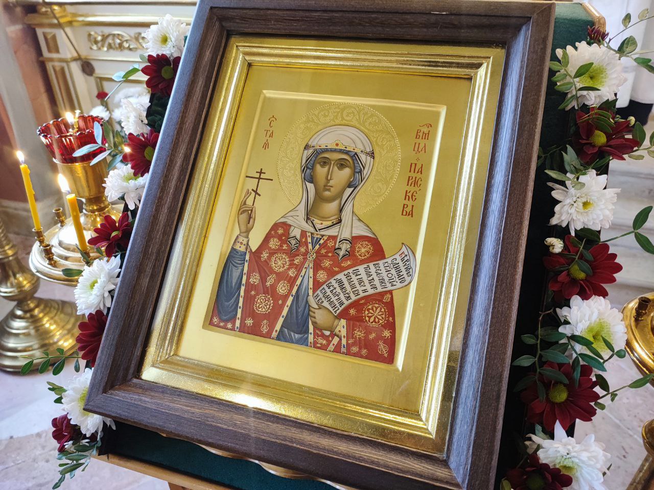 По отпусте литургии священнослужители совершили славление святой великомученице Параскеве, а затем, вознеся молитву святой, владыка обратился к богомольцам с проповедью.