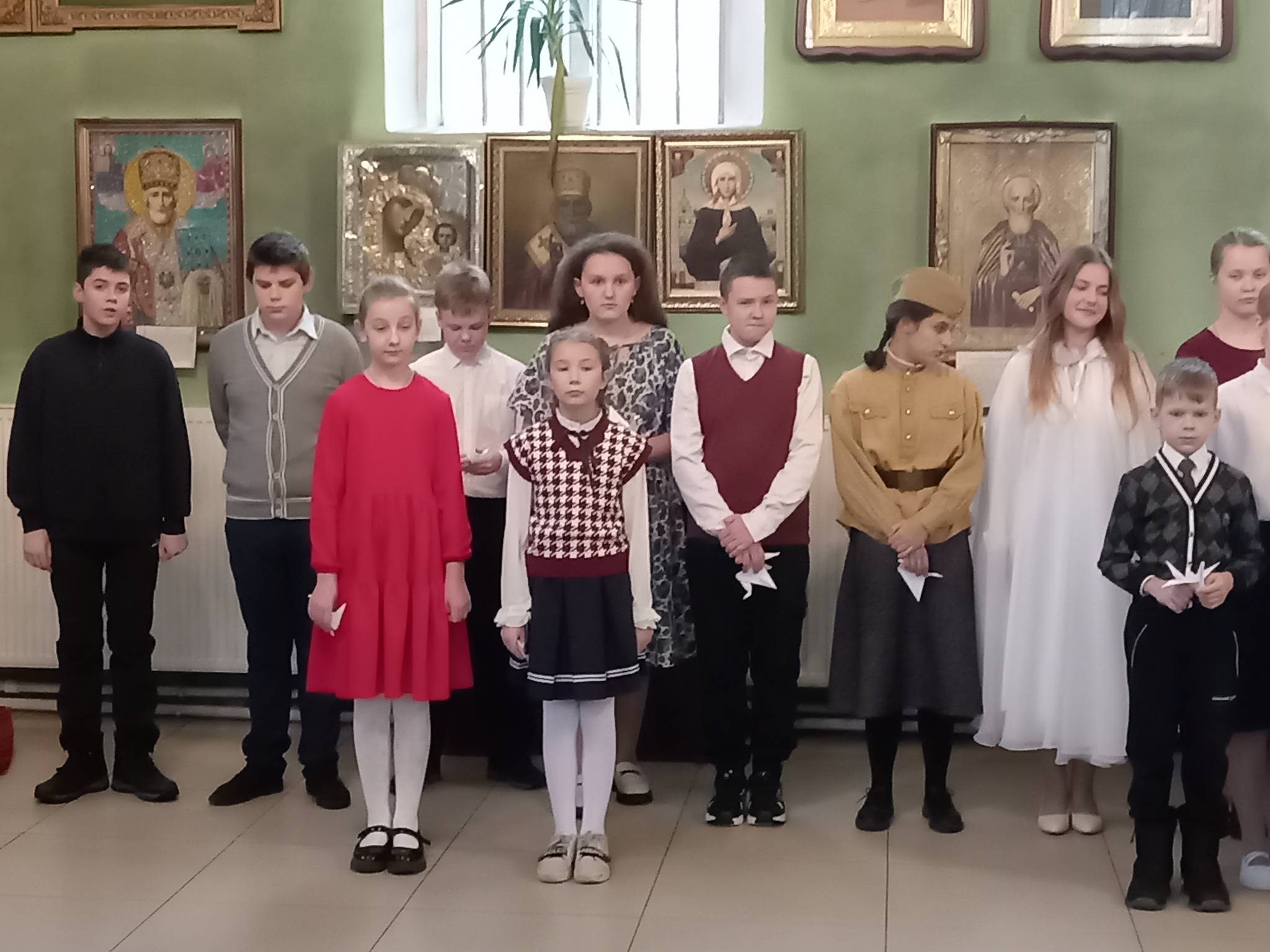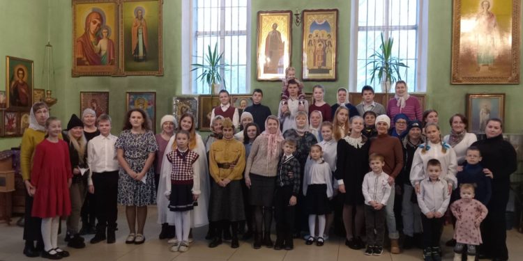 Доброй традицией отмечать День матери стало в храме   преподобного Сергия Радонежского город Людиново. Ученики воскресной школы «Радонеж» вместе со своим учителем Клячиной Татьяной Ивановной с удовольствием и волнением готовились к торжеству. Разучивали стихотворения и песни о маме, подбирали роли в сценке. Так приятно видеть, как дети с любовью и теплотой подходят к этому празднику, создавая уникальные подарки для своих мам и бабушек.   Выступление началось с торжественного приветствия от руководителя   воскресной школы «Радонеж» Татьяны Ивановны, которая выразила благодарность всем матерям за их неоценимый вклад в воспитание детей и сохранение семейных ценностей. Затем зазвучала первая песня «Моя мама лучшая на свете!»– трогательная композиция, наполненная любовью и нежностью, которая сразу же нашла отклик в сердцах зрителей. В праздничной программе прозвучали трогательные слова, признания в любви, самому близкому для ребенка человеку — маме, которая дала жизнь, заботиться и волнуется о своих чадах, растит и воспитывает их. Слова поздравления от детей прозвучали и для бабушек. В течение праздника были исполнены песни: «Бабушка любимая», «На улице тишина», «Мама-мамочка». Гости были в восторге и с удовольствием слушали стихотворения о маме и бабушке. Кроме песен, программа включала веселые конкурсы, которые показали, насколько близки мамы и их дети между собой. Женщины, присутствующие на празднике, улыбались, подпевали знакомые строки и аплодировали после каждого номера. В сценке «Хочу другую маму» дети показали, что лучше своей мамы нет никого на свете! Мама следит за нашей жизненной дорогой. Материнская любовь греет нас до глубокой старости. Мама не только не досыпает ночами, волнуется и заботится, чтобы ребенок был здоров, сыт, жизнерадостен, счастлив.  Многие из нас, как и героиня дан­ной сценки, часто не замечают, что мама заботиться о нас, она знает, что для нас важнее. А дети порой думаю, что мамы их не понимают. И лишь сделав сравнение понимаешь, за­менить маму никто не сможет. Для каждого ребенка есть своя «Самая лучшая мама земли!» — этой песней учащиеся закончили выступление на празднике. На протяжении всего праздника в зале царила атмосфера домашнего уюта и теплоты, искреннее исполнение номеров, создавали ощущение настоящего семейного торжества. Ребята поздравили свою учительницу Татьяну Ивановну с праздником, а мамам и бабушкам вручили подарки, сделанные своими руками. Уходили мамы с особым чувством – одухотворения и легкости. Многие мамы признавались, что еле сдерживали слезы, насколько трогательны были моменты праздника. Это нужный праздник, который напоминает детям, что надо дарить радость своим мамам, нужно беречь своих родителей. Праздник выдался, что называется, на славу. Обучающиеся школы подарили, замечательный концерт, который получился особым, действительно ярким и добрым! С праздником Вас, мамы! Спасибо за Ваше доброе сердце, за заботу и душевное тепло. По традиции в конце праздника была сделана общая фотография.