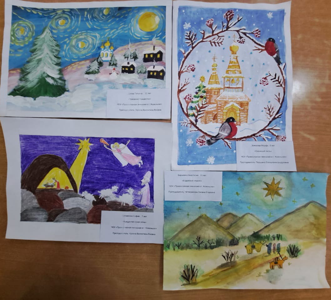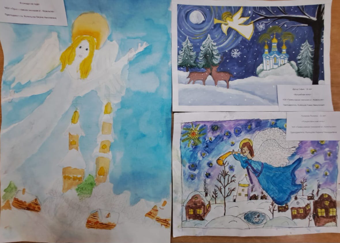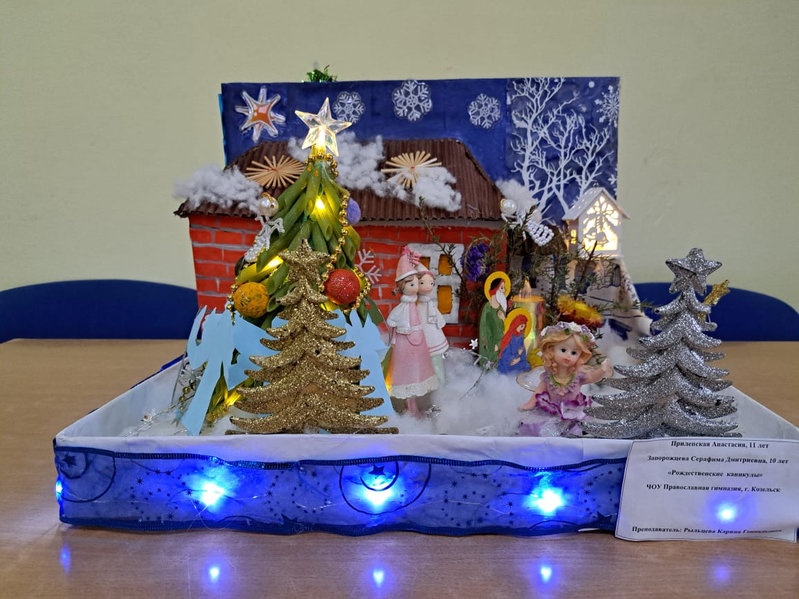Уже в 53 раз в начале зимы открывается выставка детского творчества «Христос рождается, славите!» в Калуге. По традиции экспозиция проходит в стенах калужского ТЮЗа. Вот и учащиеся ЧОУ «Православная гимназия в г. Козельске» побывали на данном мероприятии 1 декабря. Открыл выставку митрополит Калужский и Боровский Климент, с благословения которого выставки проходят на протяжении многих лет. В открытии приняли участие почти 130 коллективов из 15-ти районов области, областного центра и Обнинска. Юные художники представили свои рисунки, бумажные скульптуры, панно, жанровые сцены. Выставка проникнута предчувствием светлого праздника. В этом году она особенно красочная, яркая и радостная.