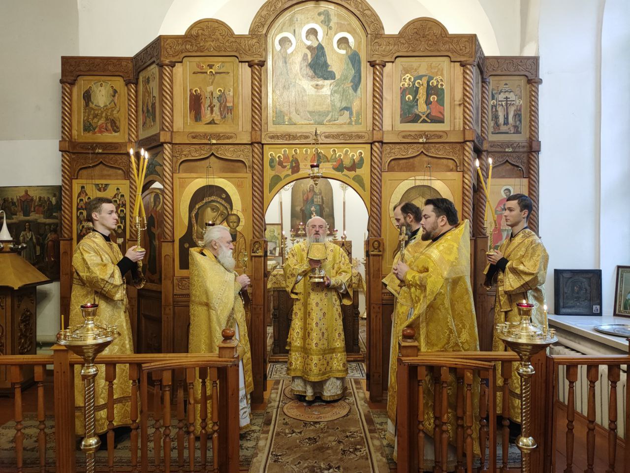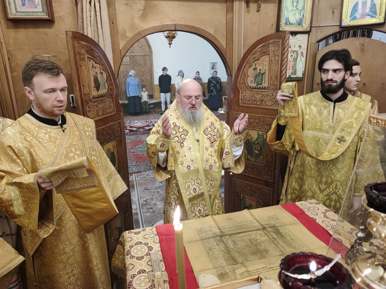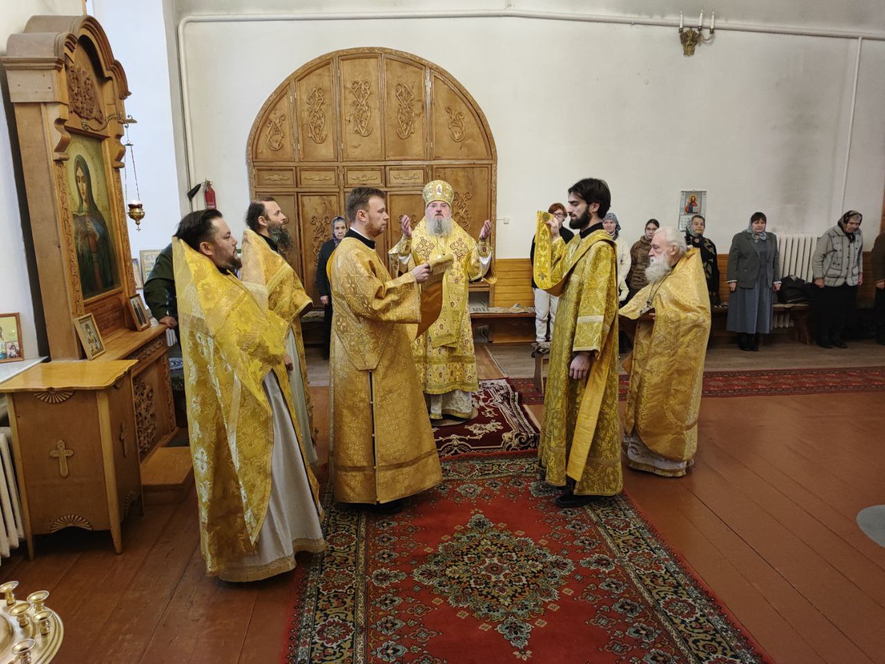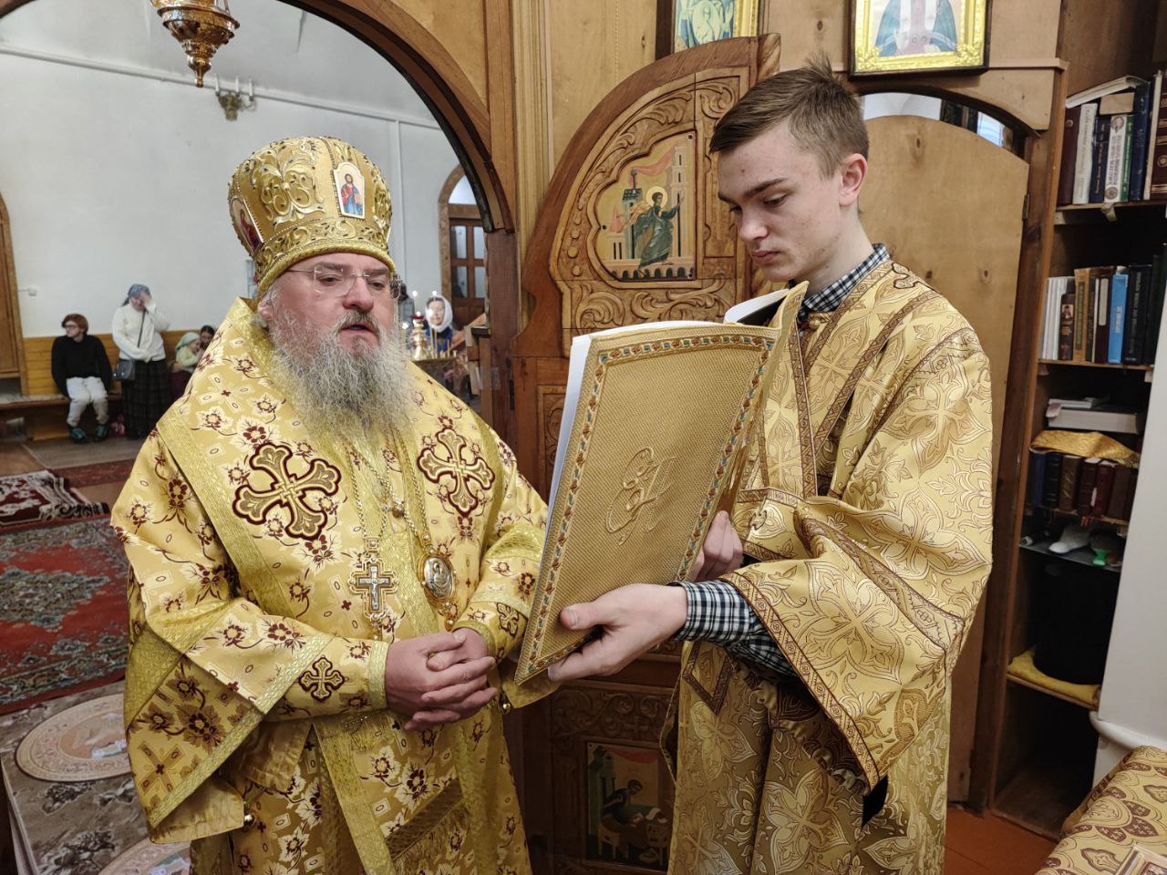 Архипастырю сослужили: иерей Сергий Дрозд – настоятель прихода, иеромонах Тихон (Клинов), протоиерей Антоний Хатунцев, диакон Евгений Ковригин и диакон Дамиан Рупасов.