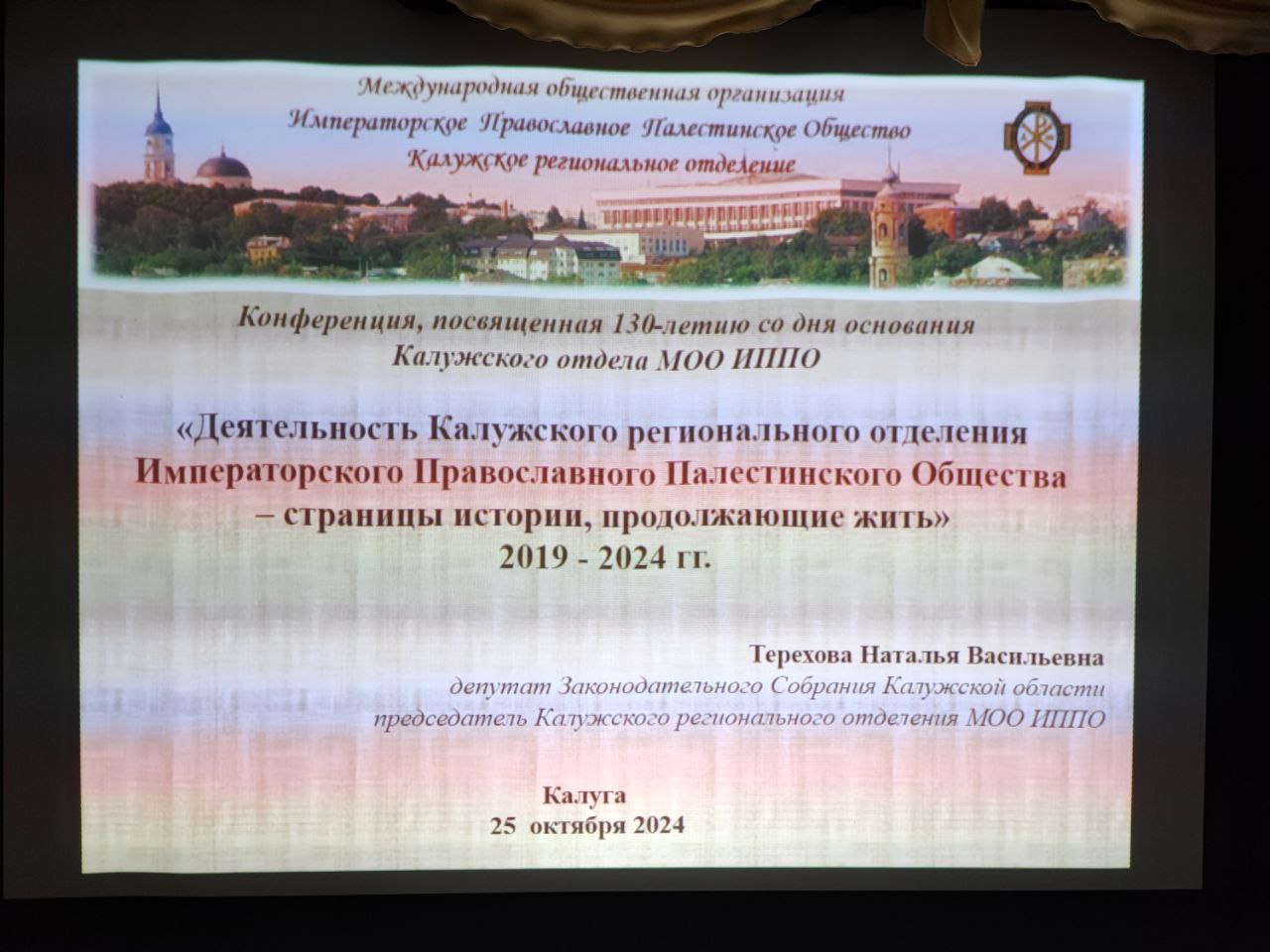 Председателем возрожденного Калужского отделения Императорского Православного Палестинского Общества избран Виталий Николаевич Гороховатский, после смерти которого Отделение возглавила Терехова Наталья Васильевна.