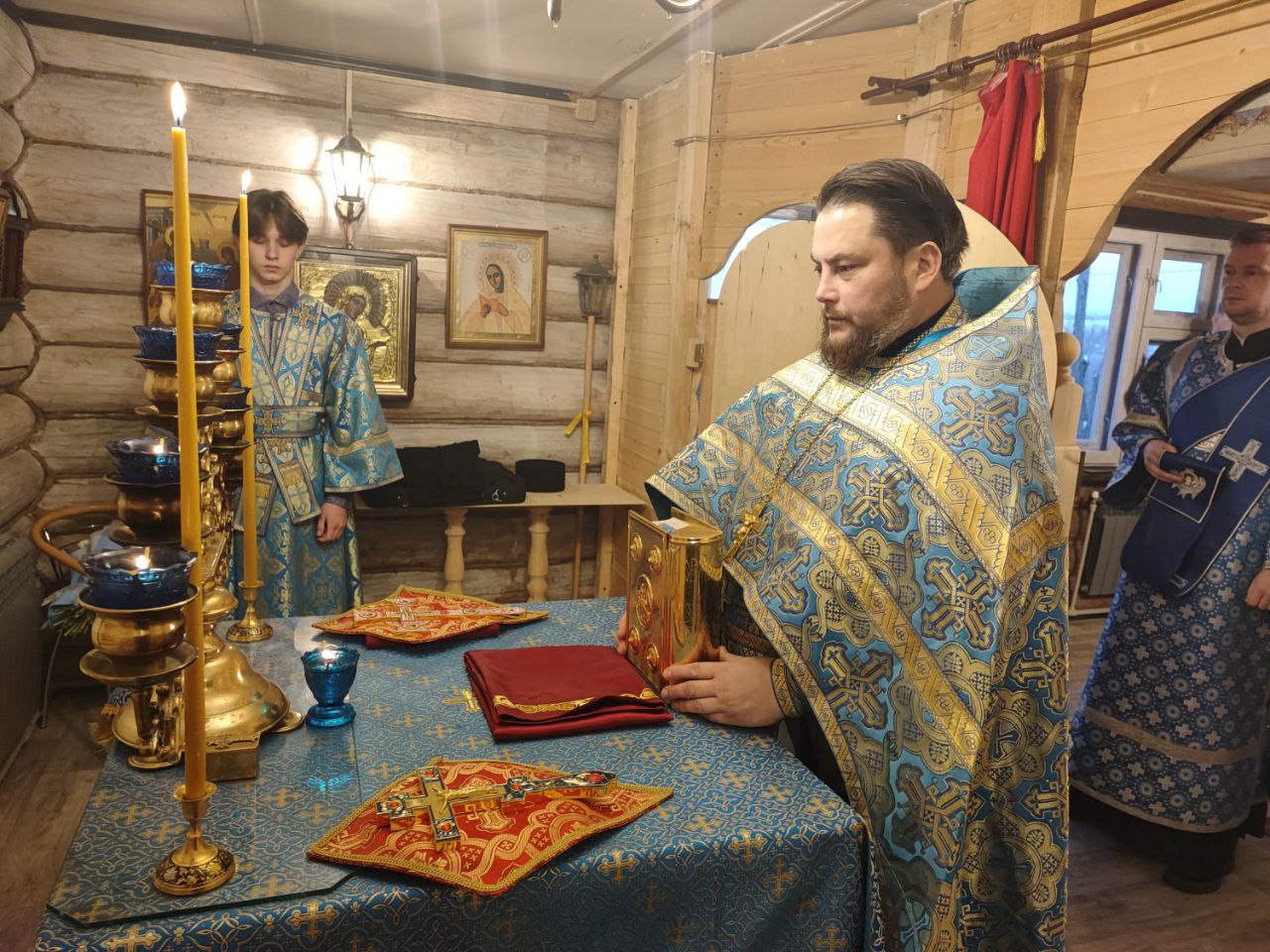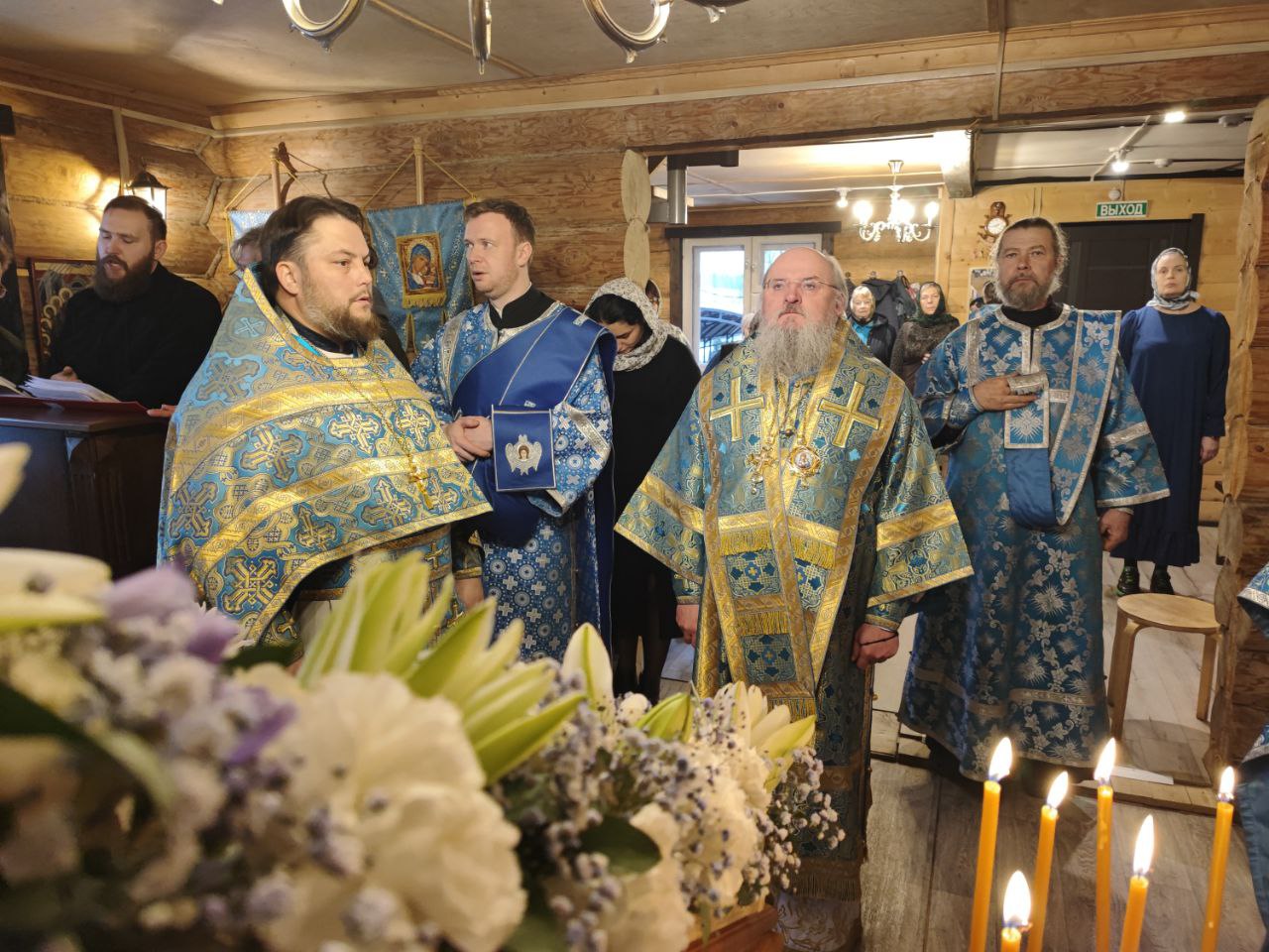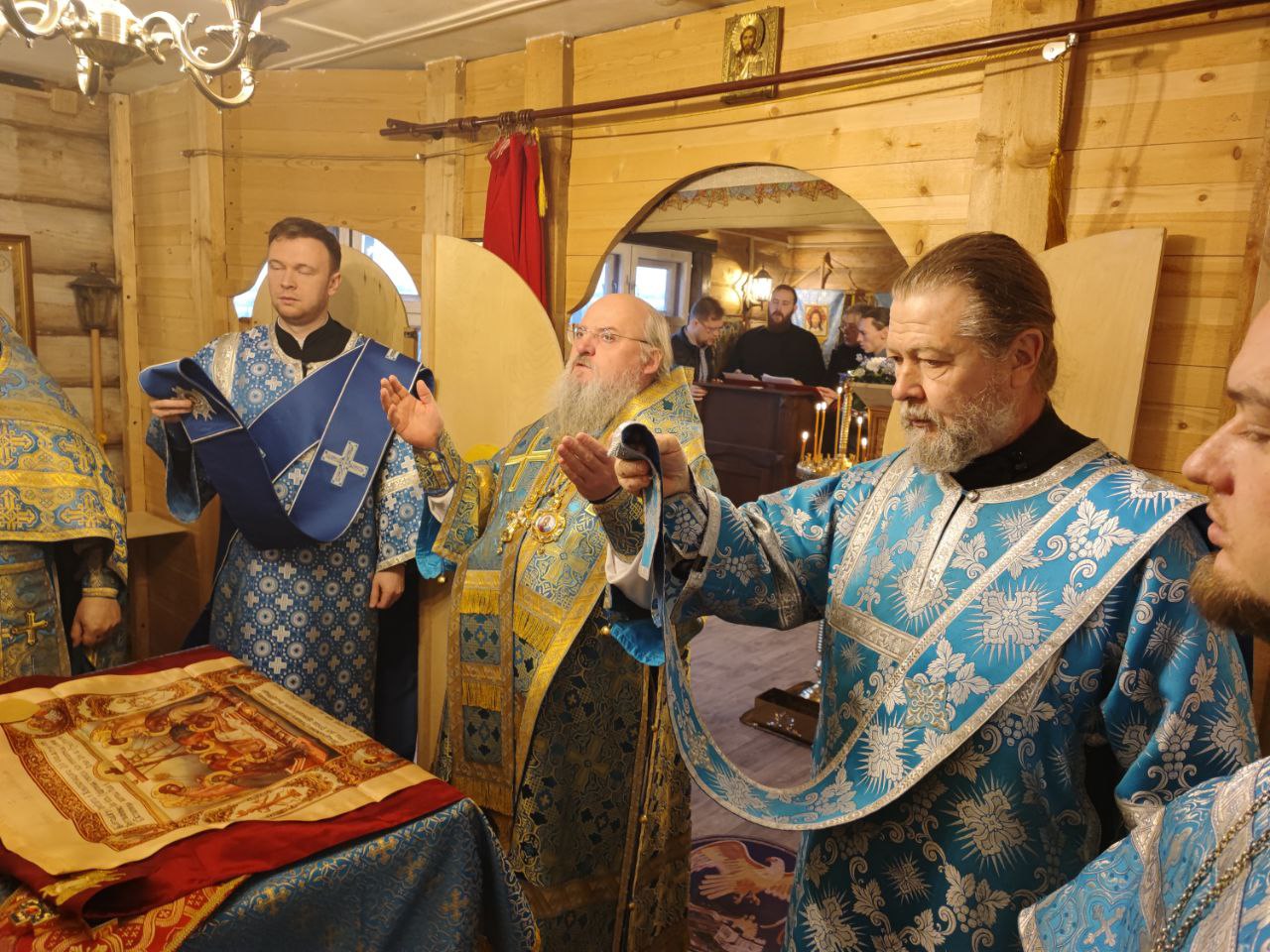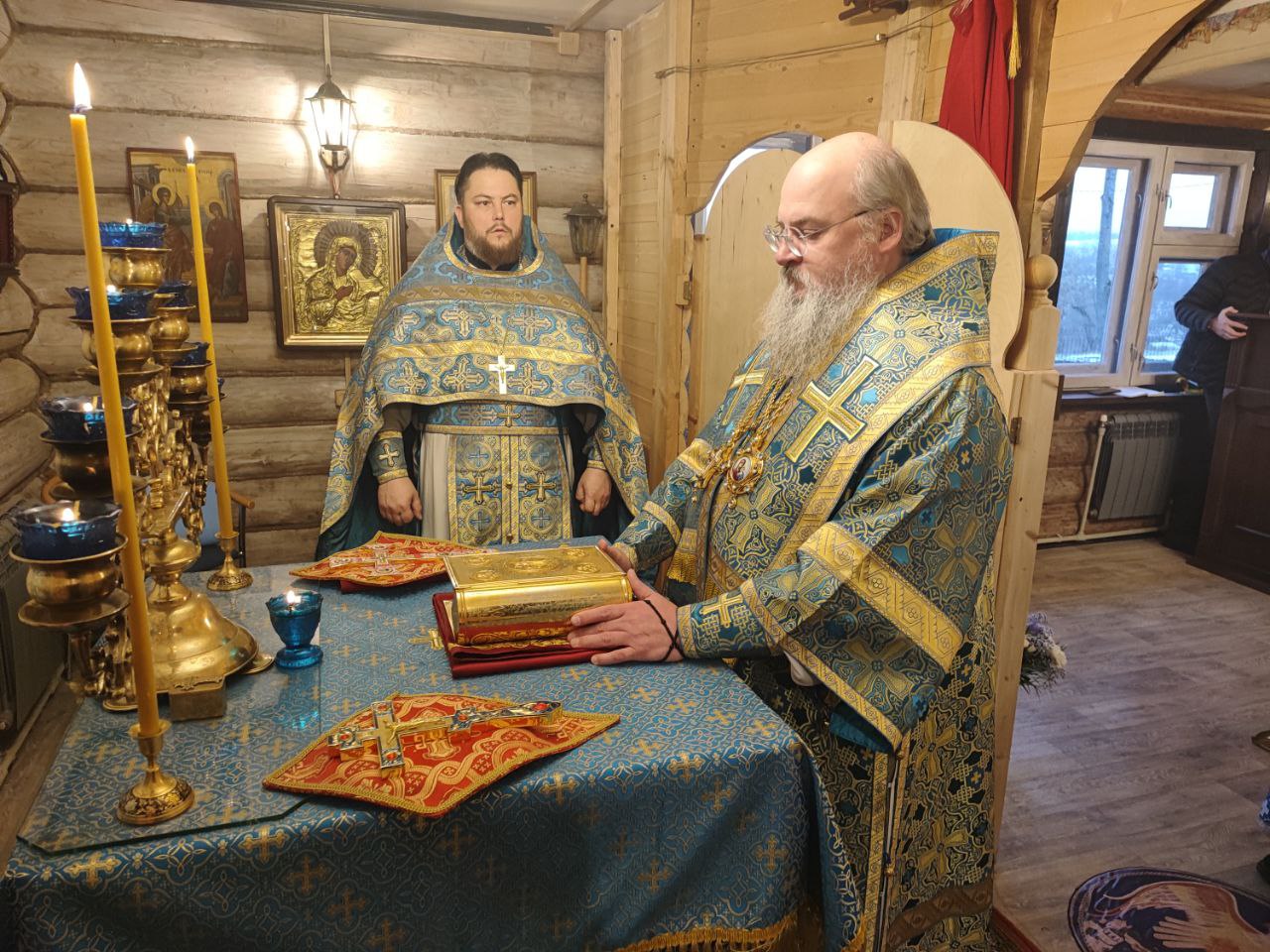 4 декабря. Введение во храм Пресвятой Богородицы. Епископ Козельский и Людиновский Никита совершил Божественную литургию в храме иконы Божией Матери «Всех скорбящих Радость» села Озерское Козельского района. Преосвященнейшему владыке сослужили: протоиерей Антоний Хатунцев, иерей Дмитрий Торшин – настоятель прихода, диакон Евгений Ковригин и диакон Вячеслав Васин. На литургии были вознесены особые прошения и молитва о Святой Руси. По благословению Святейшего Патриарха Московского и всея Руси Кирилла эта сугубая молитва совершается во всех храмах Русской Православной Церкви за каждым богослужением. По отпусте литургии священнослужители совершили славление праздника, а затем владыка обратился к богомольцам с проповедью. Памятным знаком 10-летия Козельской епархии был награжден диакон Вячеслав Васин.