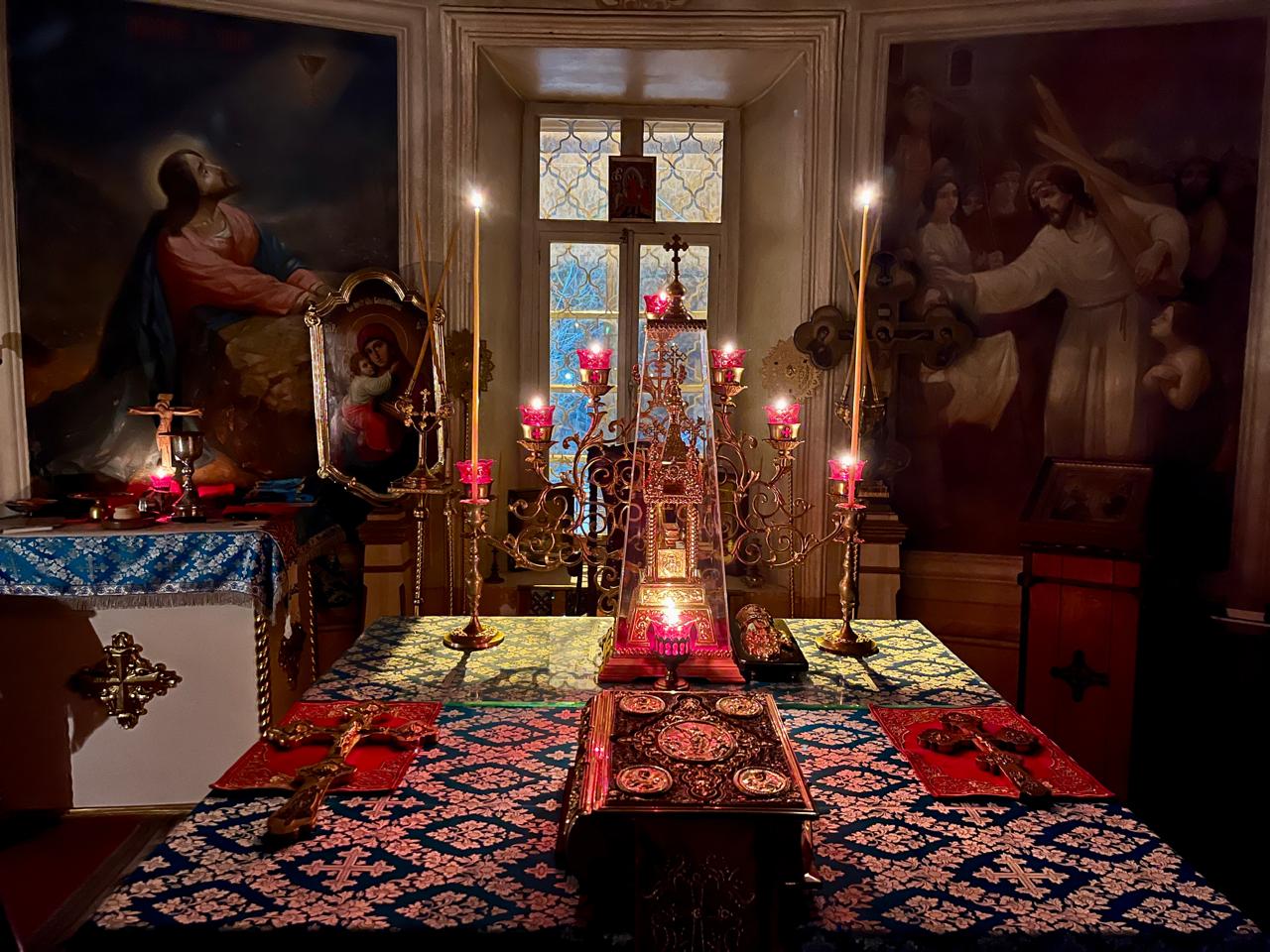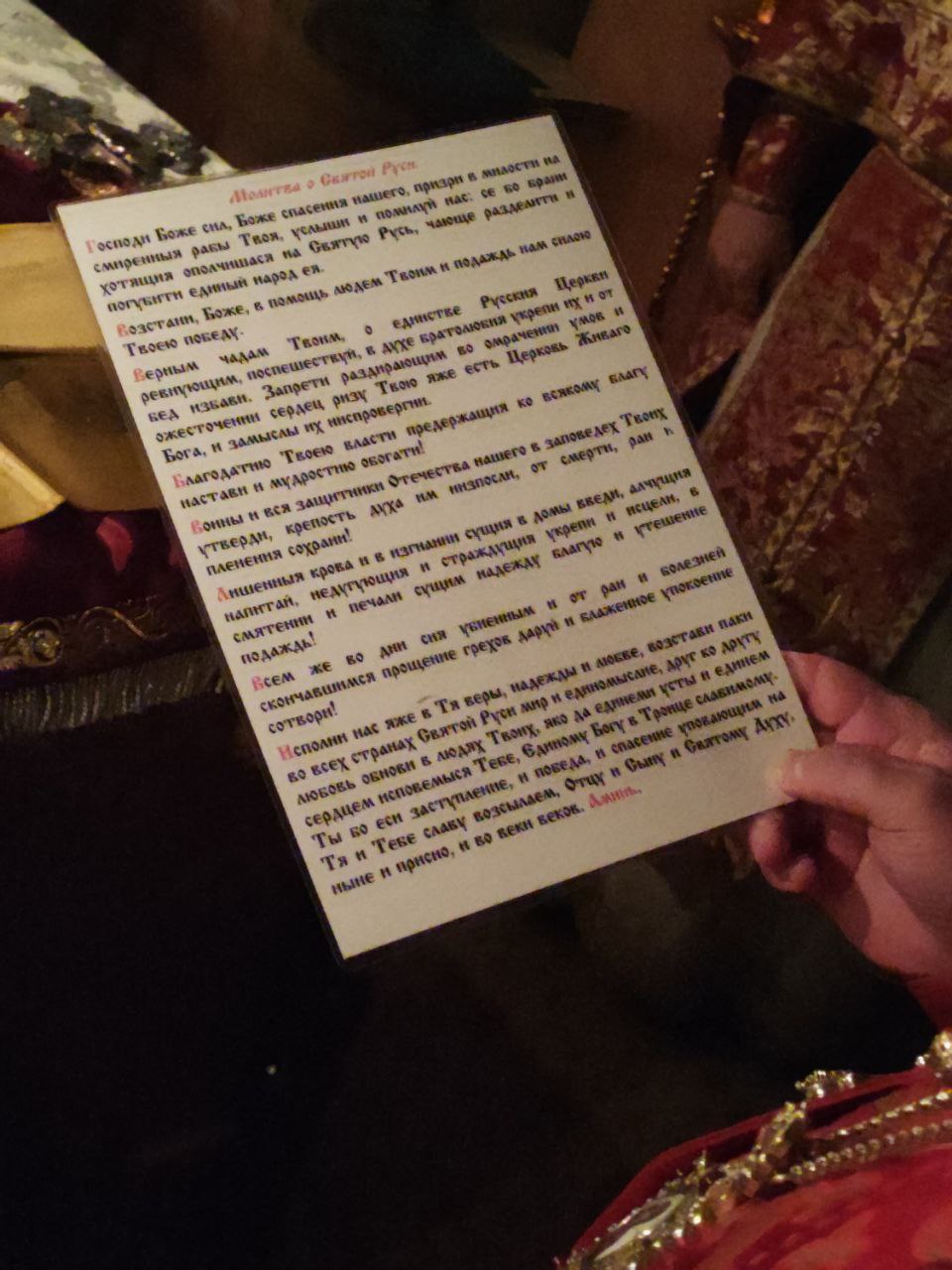 На литургии были вознесены особые прошения и молитва о Святой Руси. По благословению Святейшего Патриарха Московского и всея Руси Кирилла эта сугубая молитва совершается во всех храмах Русской Православной Церкви за каждым богослужением.