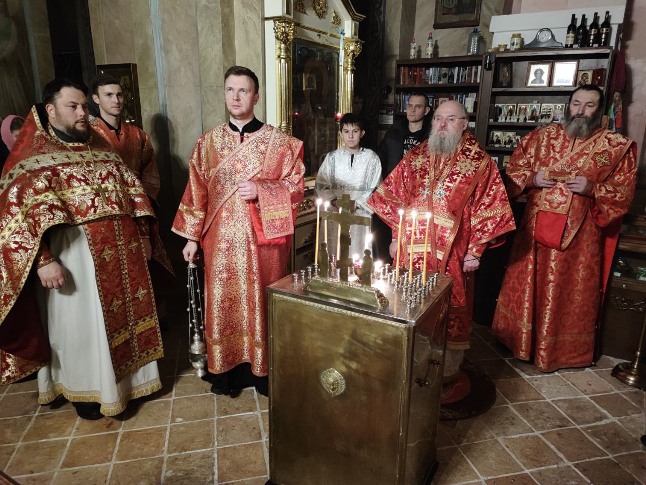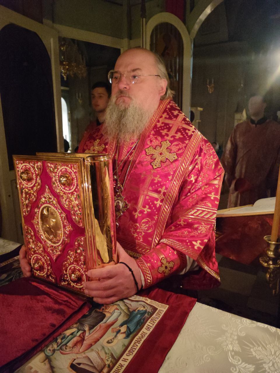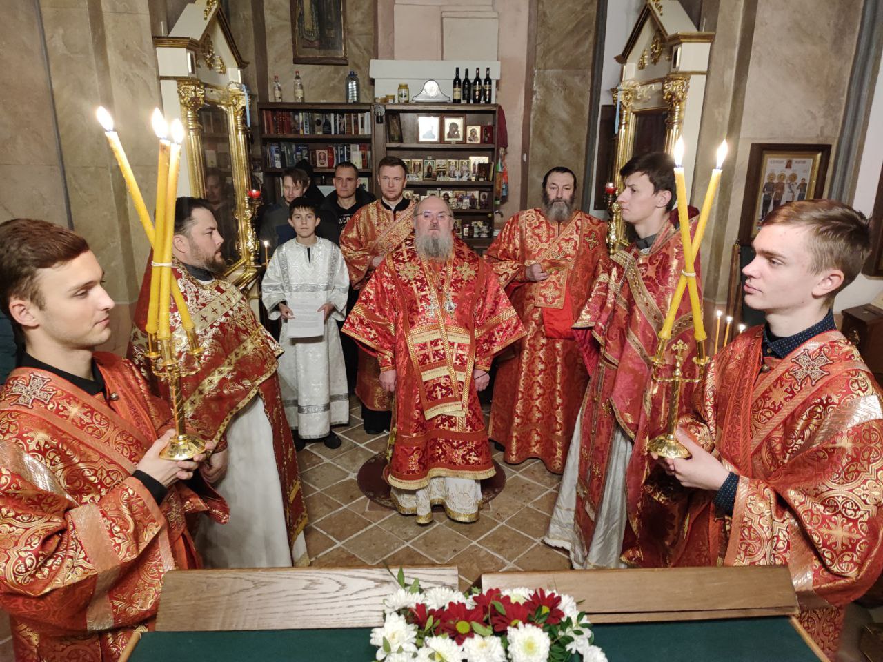 Архипастырю сослужили: протоиерей Антоний Хатунцев, иерей Филипп Лисенков, диакон Евгений Ковригин и диакон Валерий Волков.
