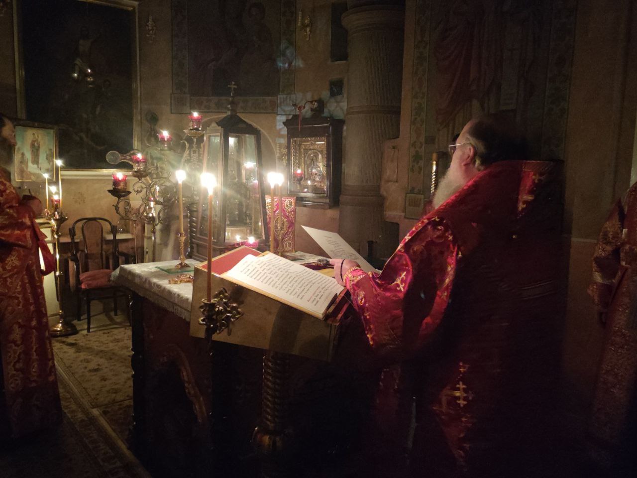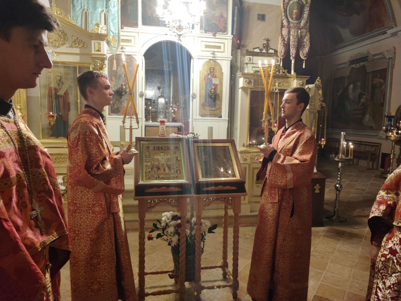 Также ночная Божественная литургия была совершена в Благовещенском храме города Козельска, где подвизался и откуда был взят на казнь мученик Борис Козлов.