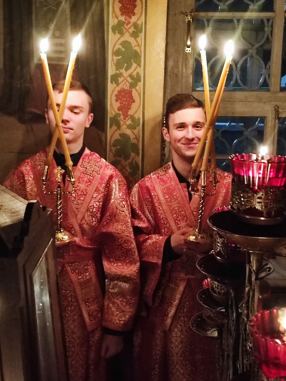 За богослужением пела группа хора Сретенской духовной семинарии.