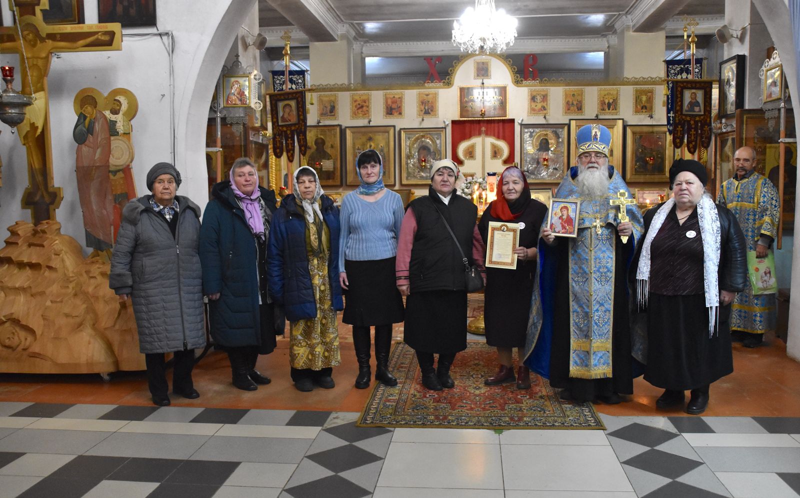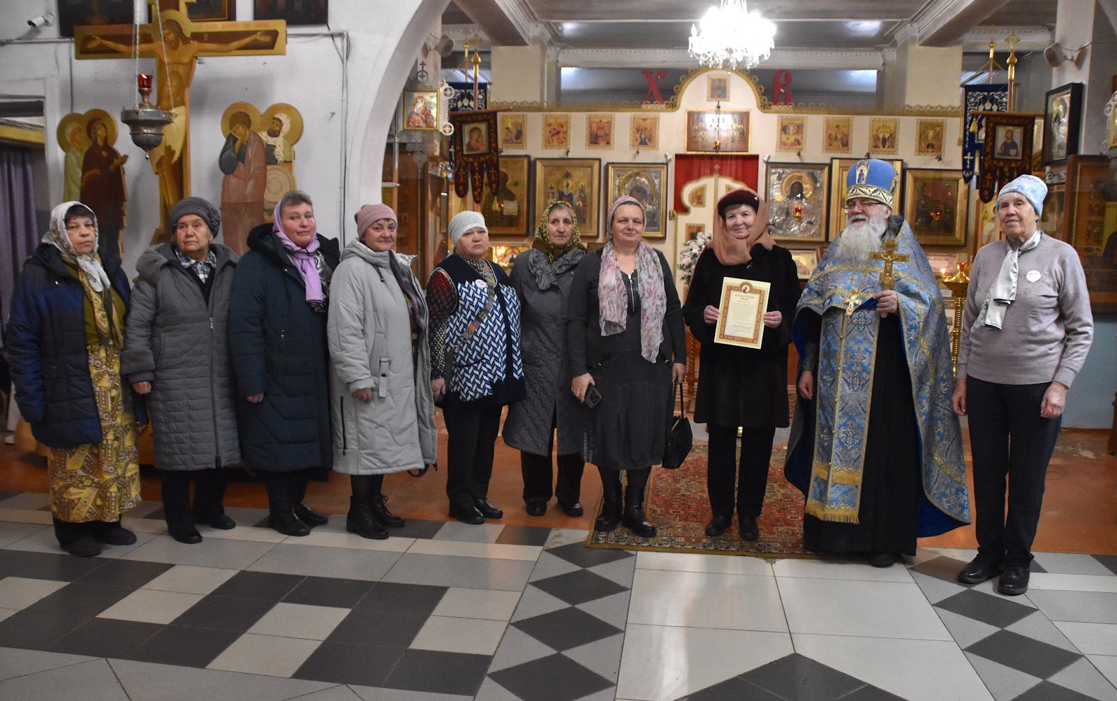 Затем настоятель Казанского собора протоиерей Алексий Жиганов и настоятель храма «Живоносный источник» иерей Иоанн Майоров вручили благодарственные письма и  подарки  активным участникам групп добровольцев за из помощь и труды по оказанию помощи российским воинам – участникам СВО: клубу городского совета ветеранов «Активное долголетие», местному отделению Общероссийского движения детей и молодёжи «Движение первых», содружеству «Серебряные волонтёры» при Людиновском центре Социального обслуживания, коллективу учеников средней школы №10 посёлка Заречный Людиновского района.