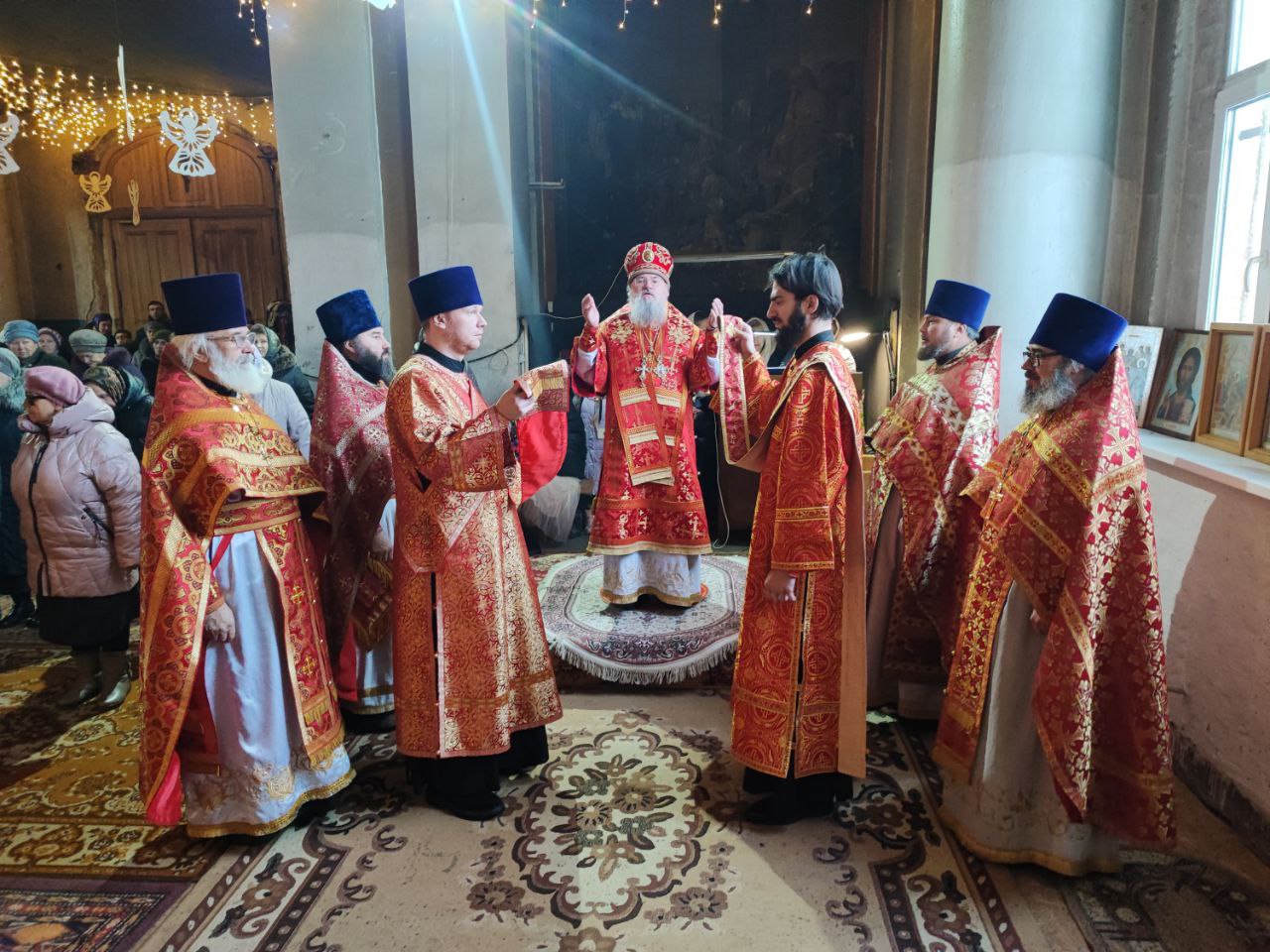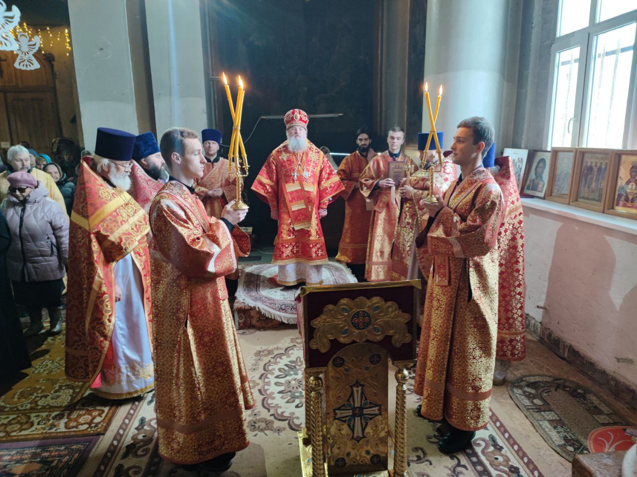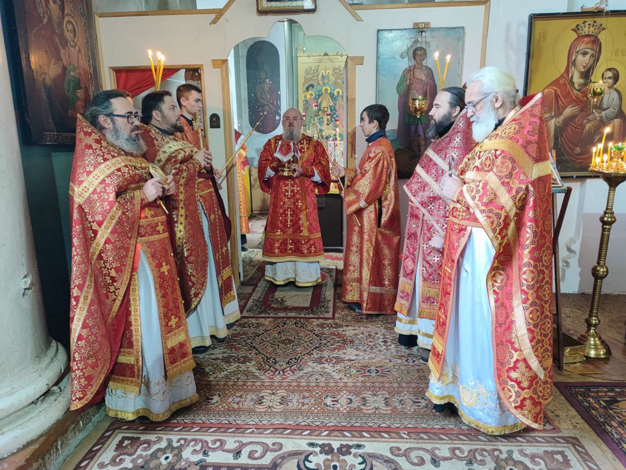 Его Преосвященству сослужили: протоиерей Максим Садовников – настоятель прихода, протоиерей Антоний Хатунцев, иерей Алексий Сорокин, иерей Стахий Гайсин, диакон Евгений Ковригин и диакон Дамиан Рупасов.