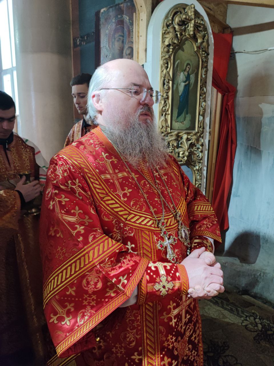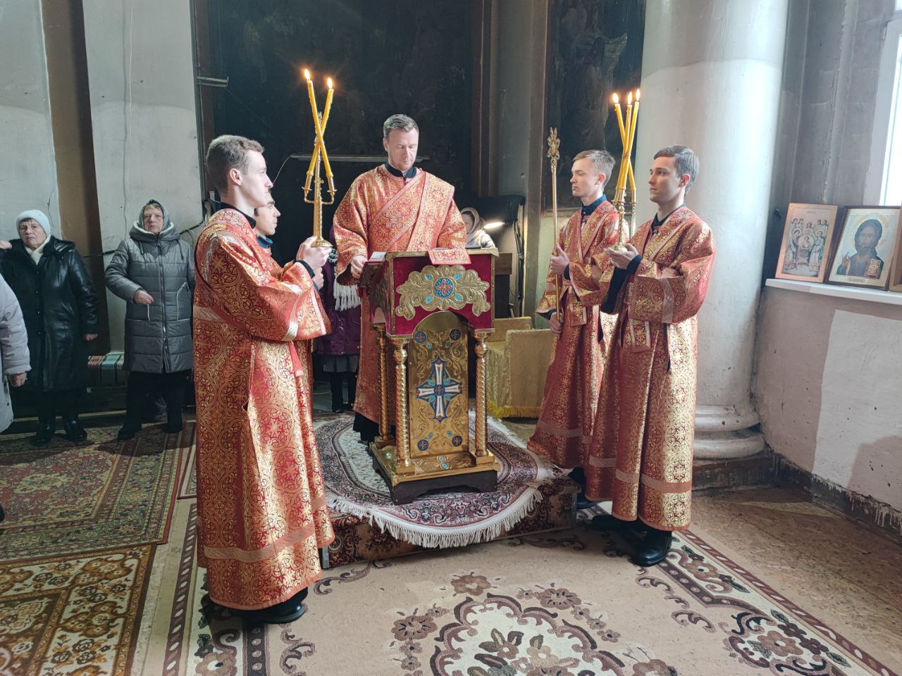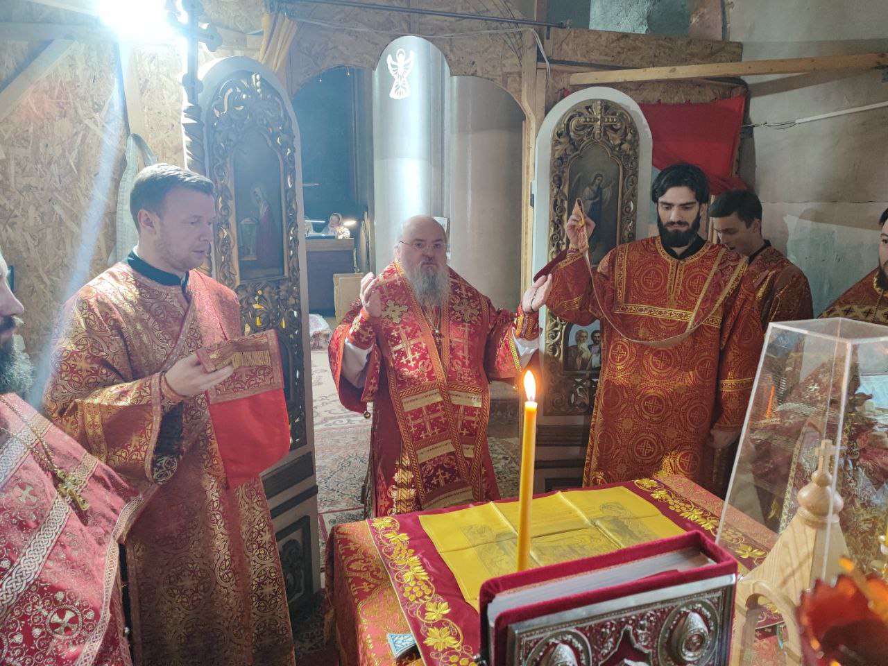 Его Преосвященству сослужили: протоиерей Максим Садовников – настоятель прихода, протоиерей Антоний Хатунцев, иерей Алексий Сорокин, иерей Стахий Гайсин, диакон Евгений Ковригин и диакон Дамиан Рупасов.