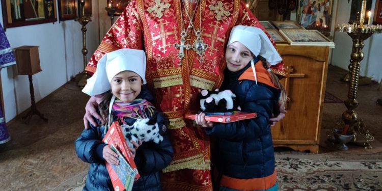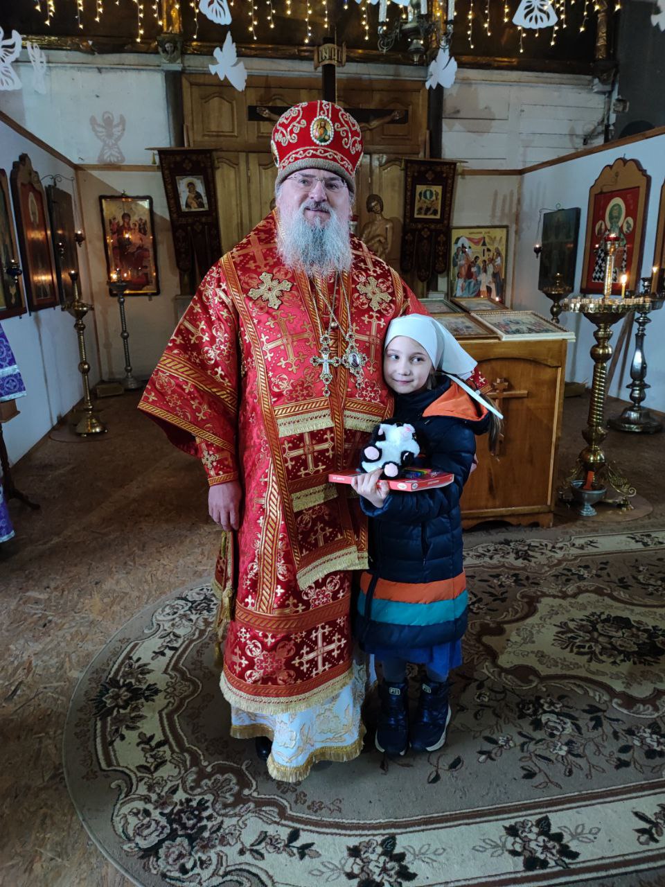 Архипастырь поздравил маленьких прихожан храма: дочь настоятеля  Катю Садовникову с днем тезоименитства и дочь настоятеля храма святых мучениц Евдокии, Дарии, Дарии и Марии Дивеевских села Уколица иерея Стахия Гайсина Варвару с грядущими именинами и вручил им подарки.