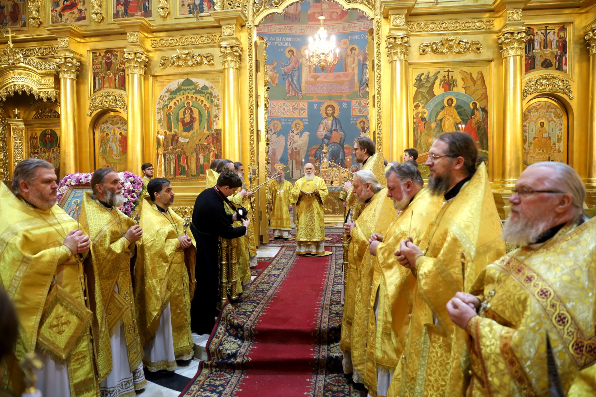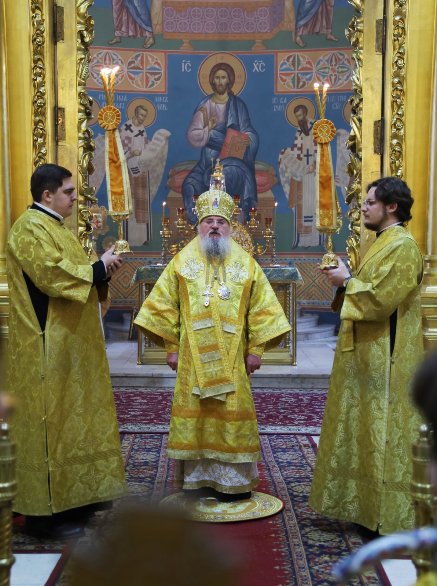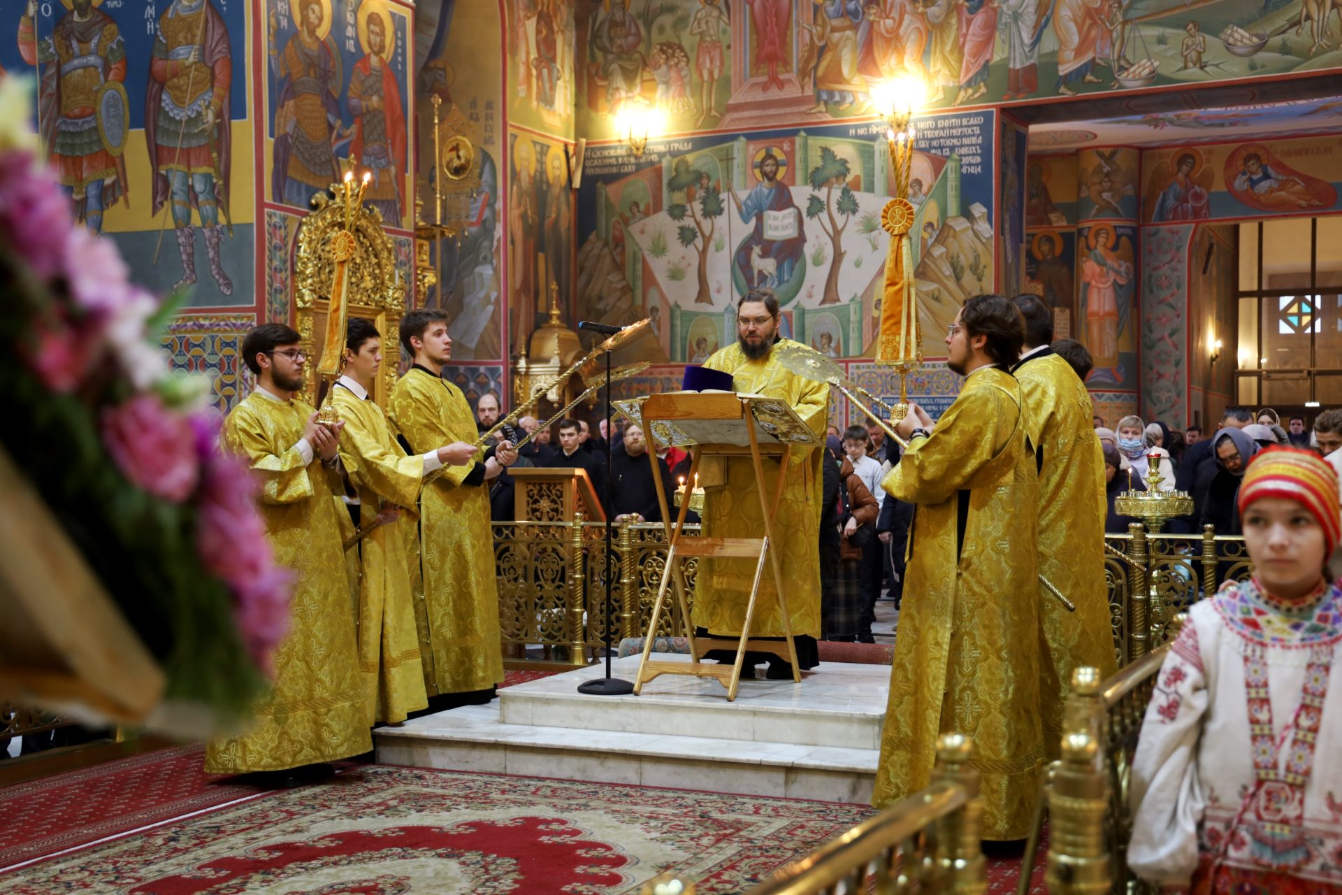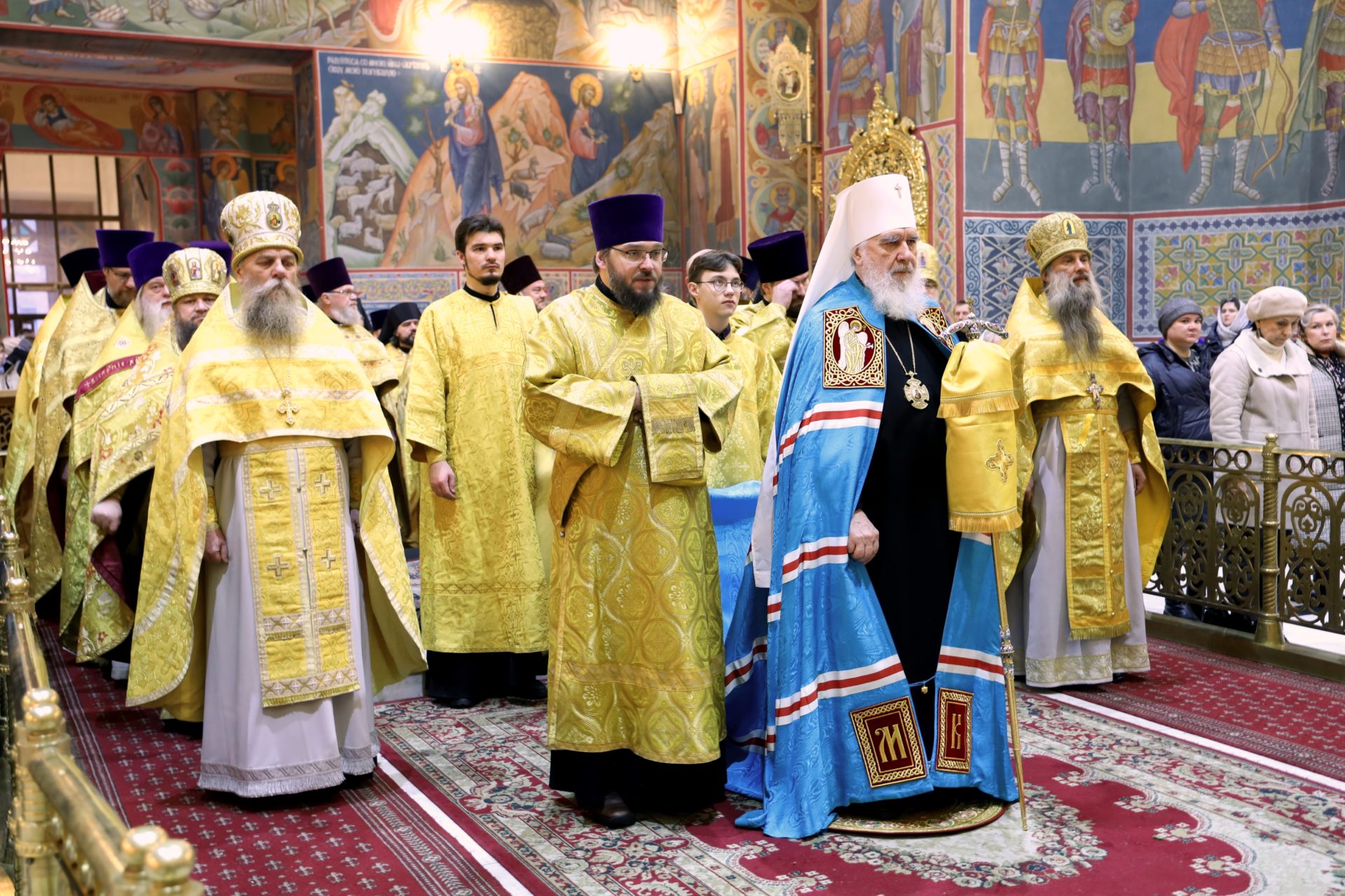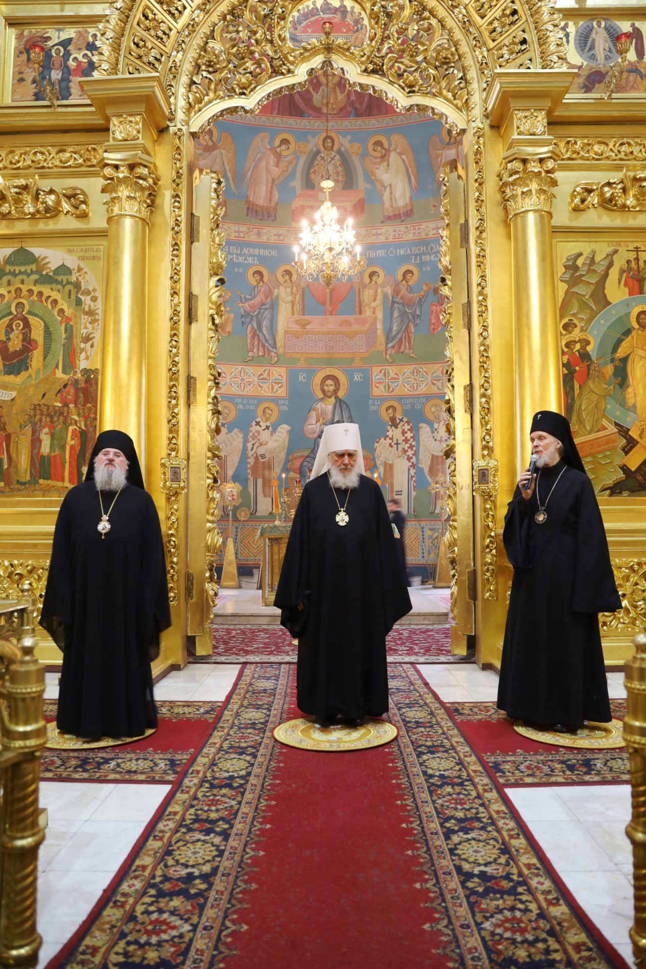 Архипастырям сослужило духовенство Калужской митрополии. После сугубой ектении была вознесена молитва о Святой Руси. По благословению Святейшего Патриарха Московского и всея Руси Кирилла сугубая молитва совершается во всех храмах Русской Православной Церкви.