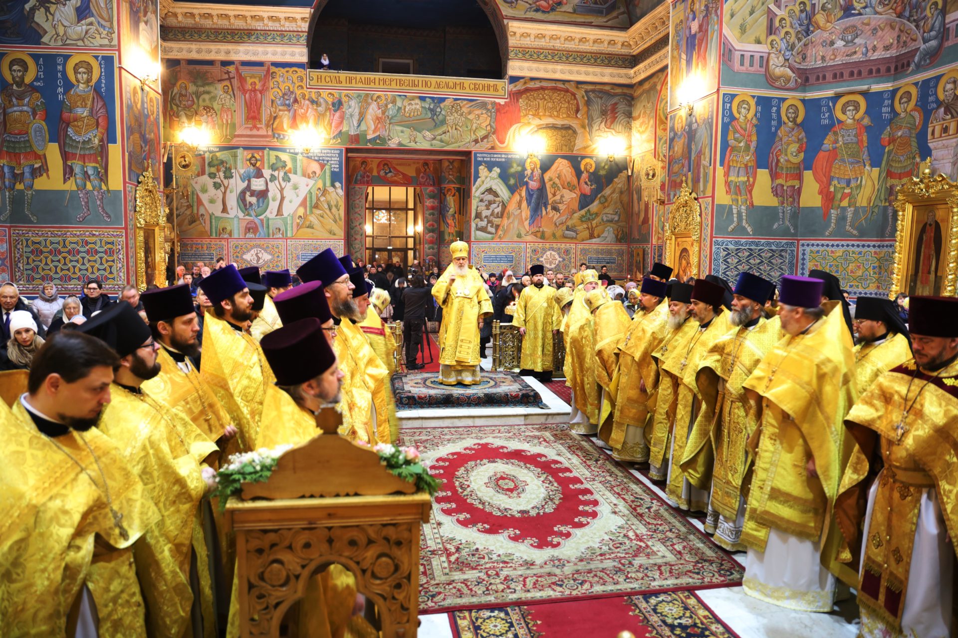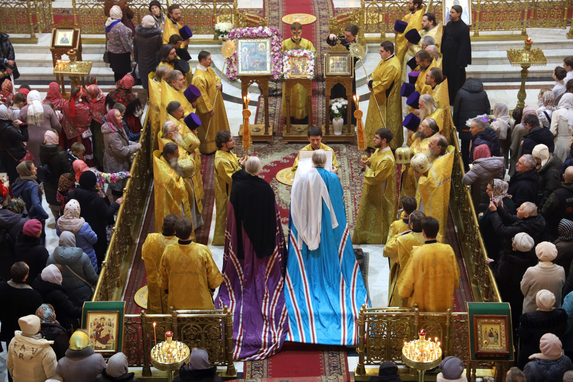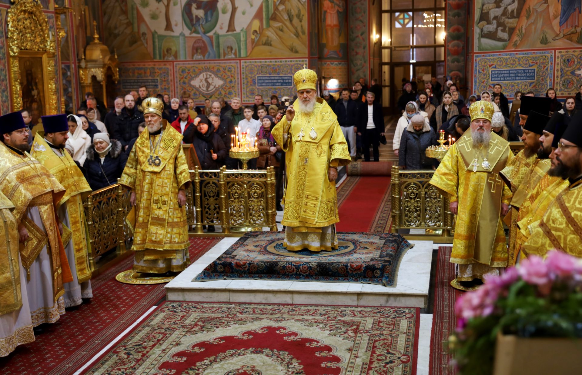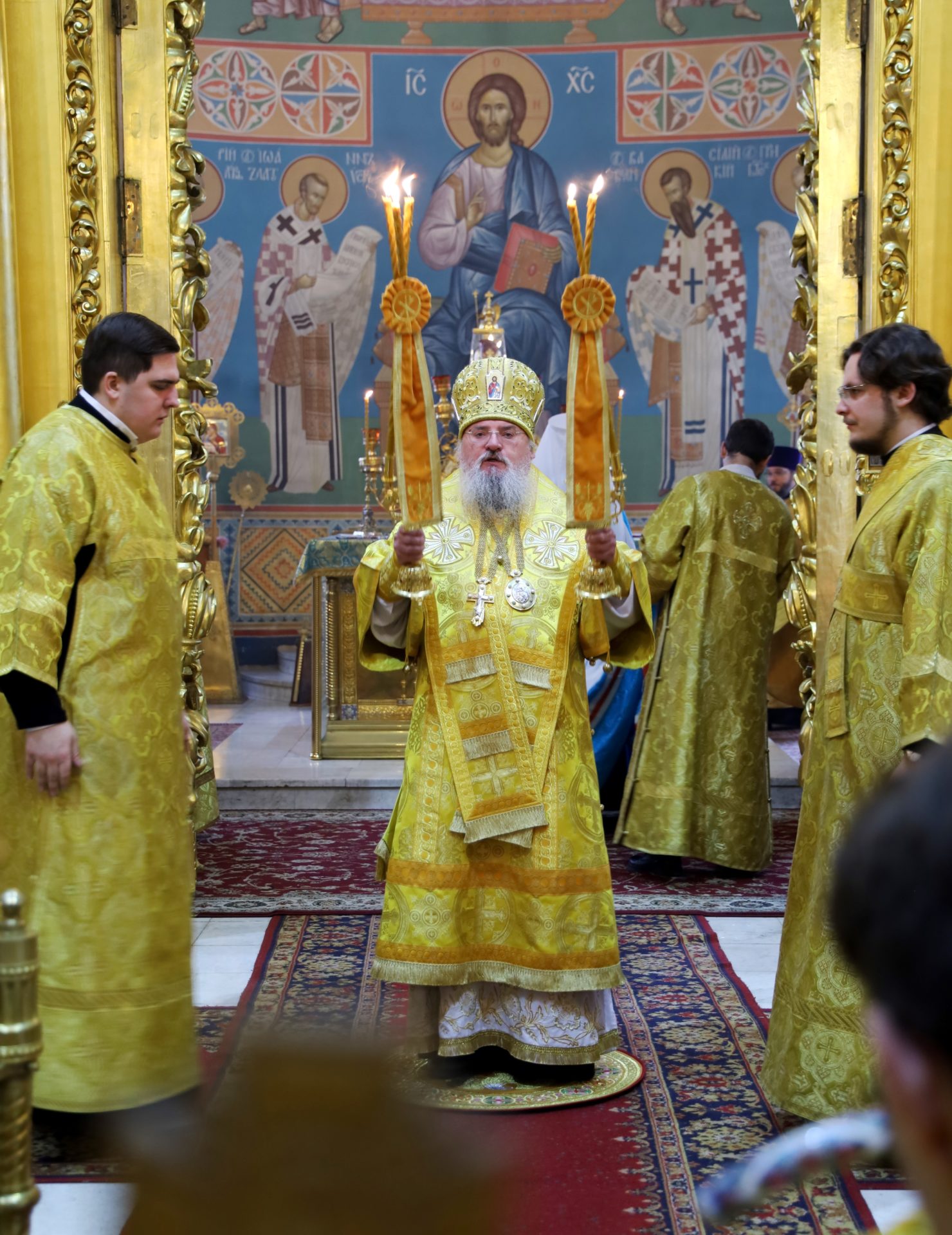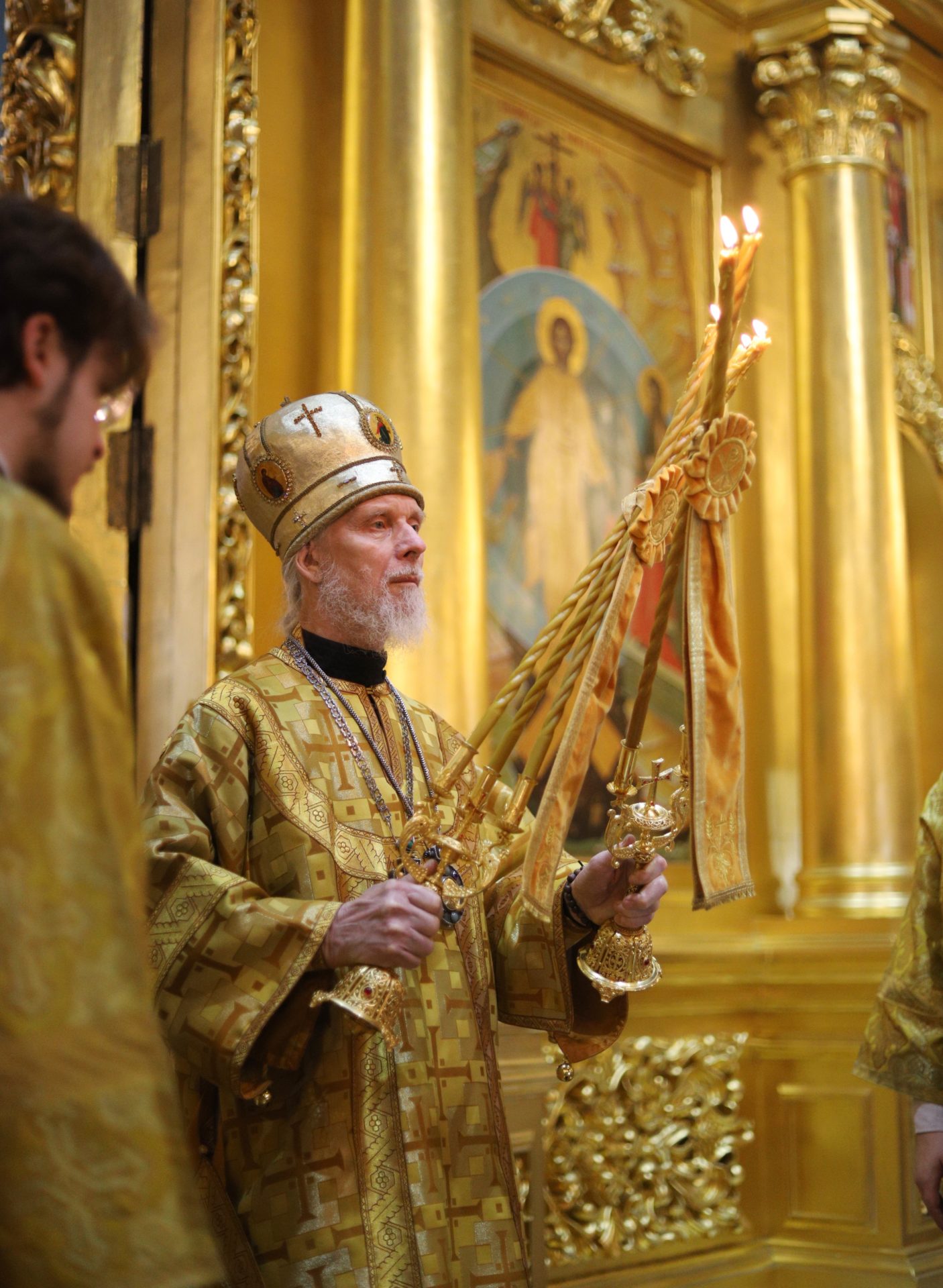 Архипастырям сослужило духовенство Калужской митрополии. После сугубой ектении была вознесена молитва о Святой Руси. По благословению Святейшего Патриарха Московского и всея Руси Кирилла сугубая молитва совершается во всех храмах Русской Православной Церкви.