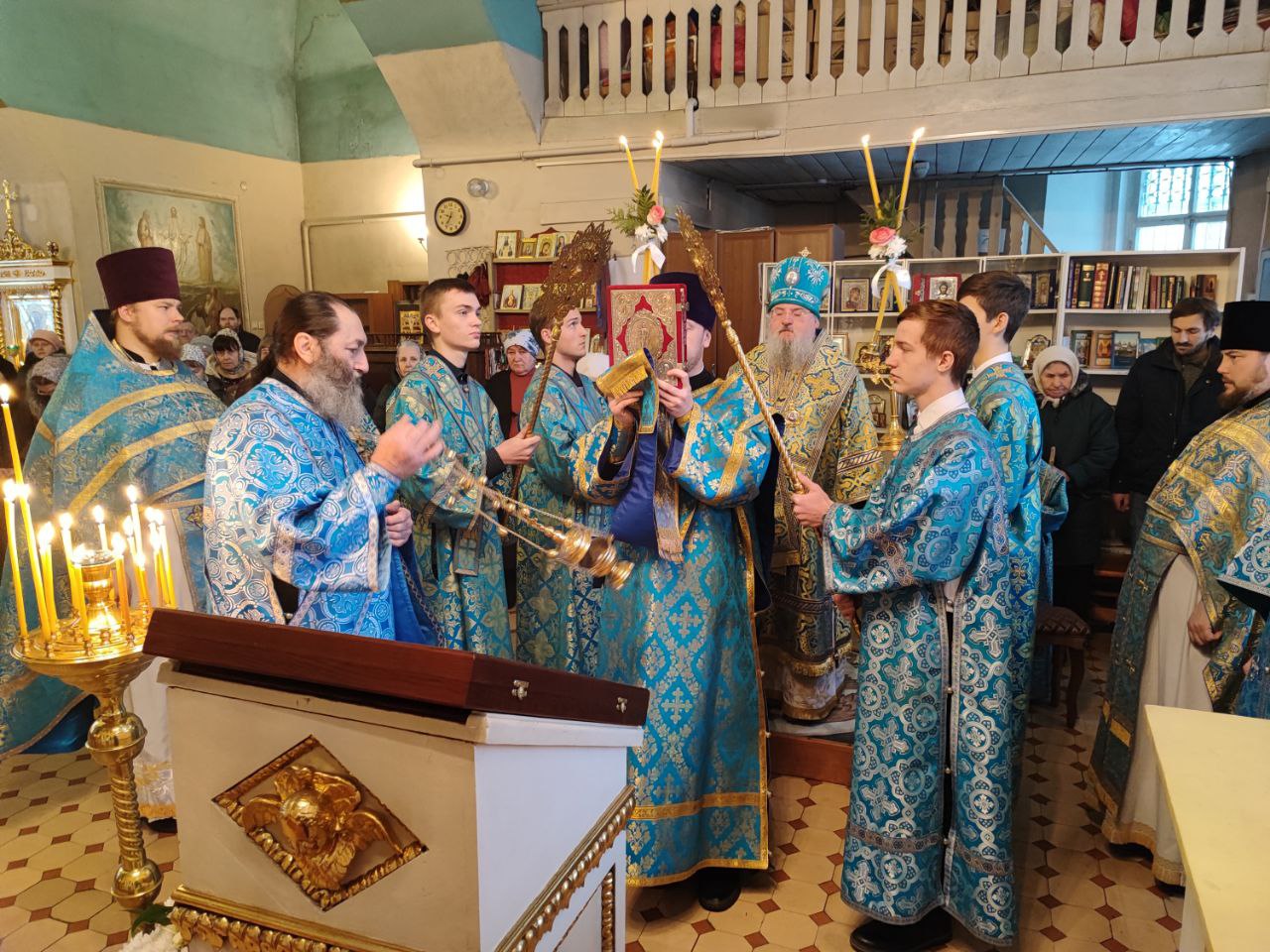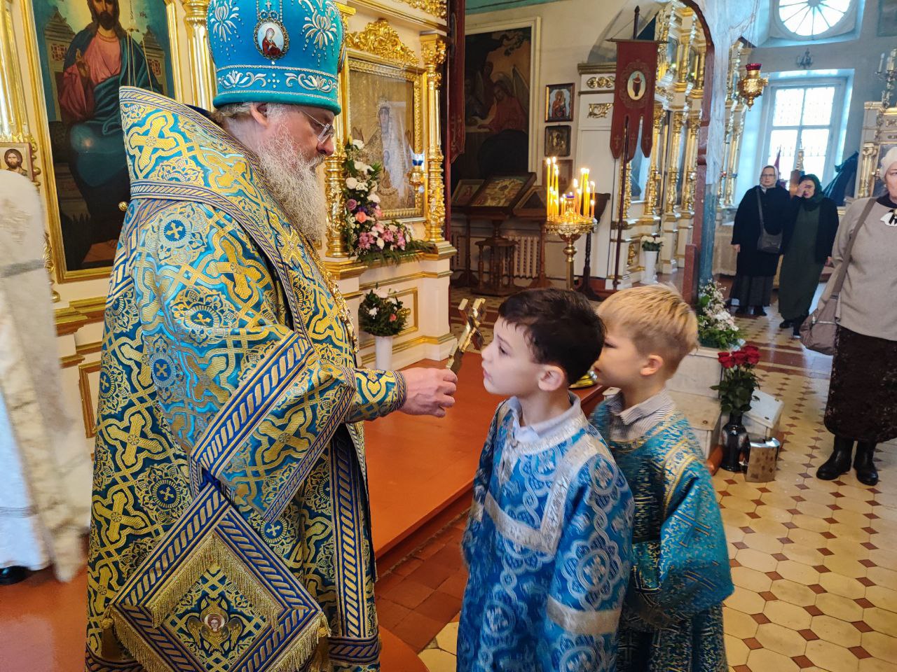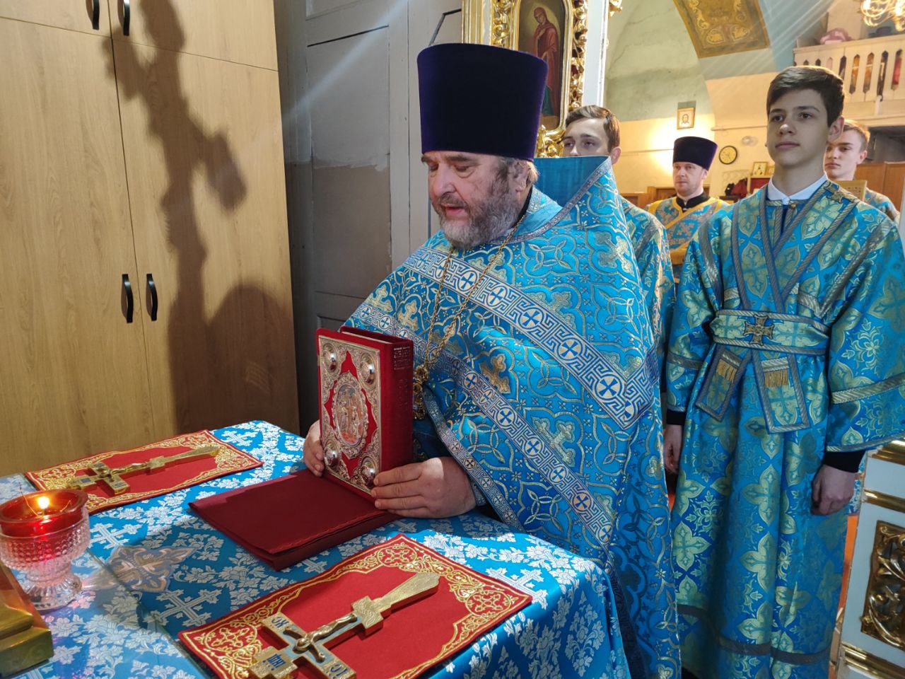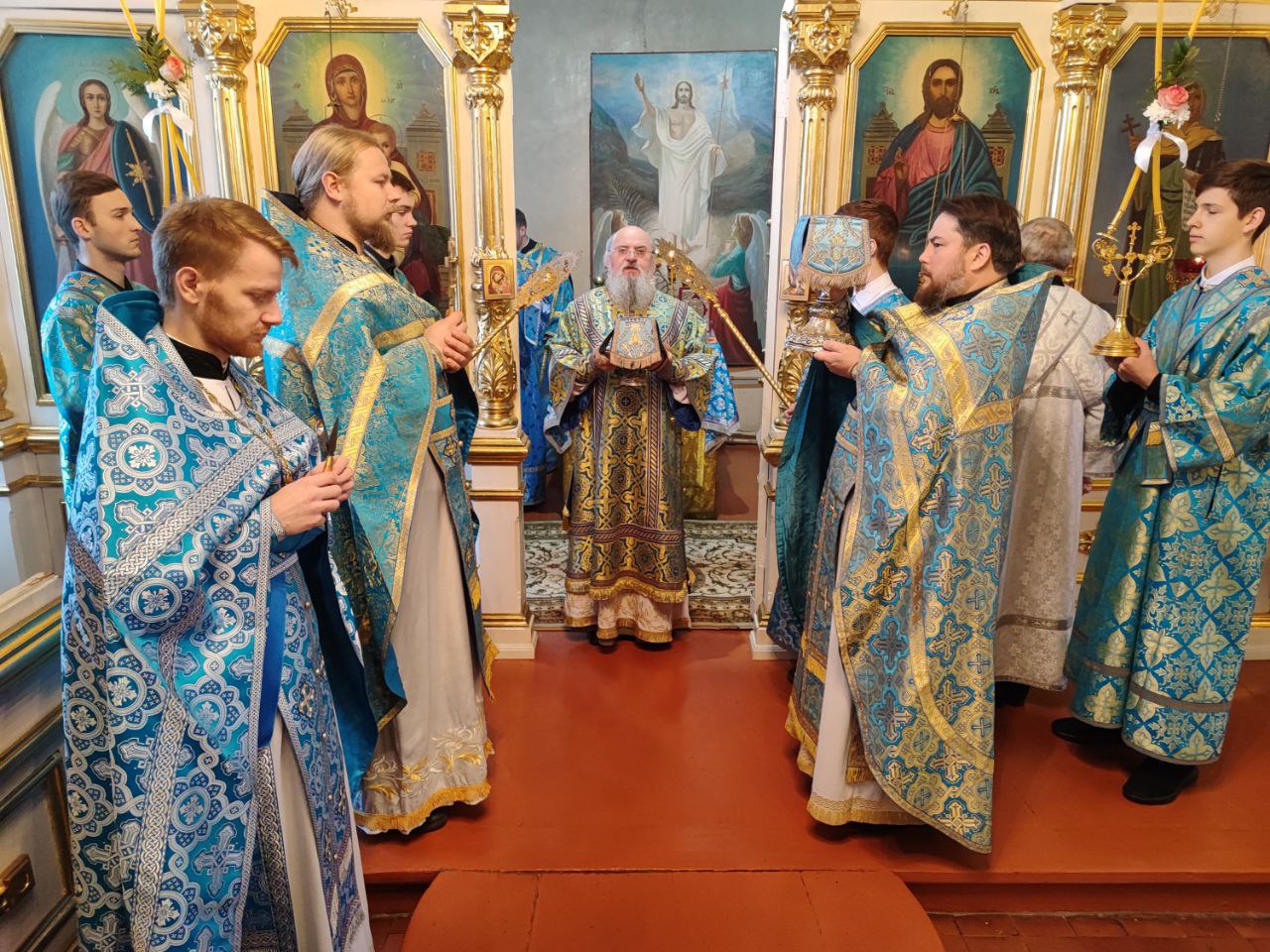 Архипастырю сослужили: протоиерей Павел Морозов, протоиерей Антоний Хатунцев, иерей Сергий Барыкин – настоятель храма, иерей Елисей Тимофеев, диакон Евгений Ковригин и диакон Валерий Волков.