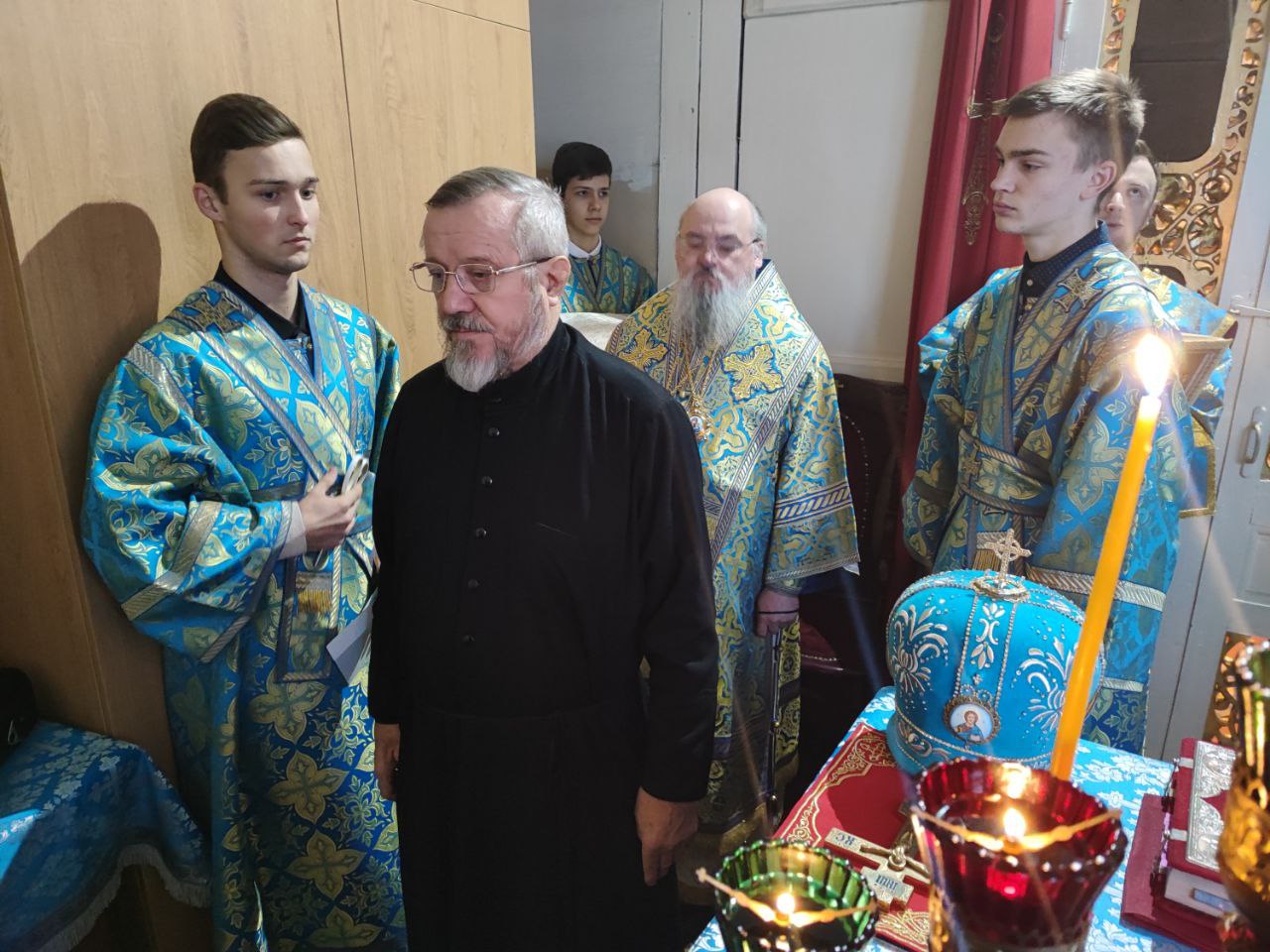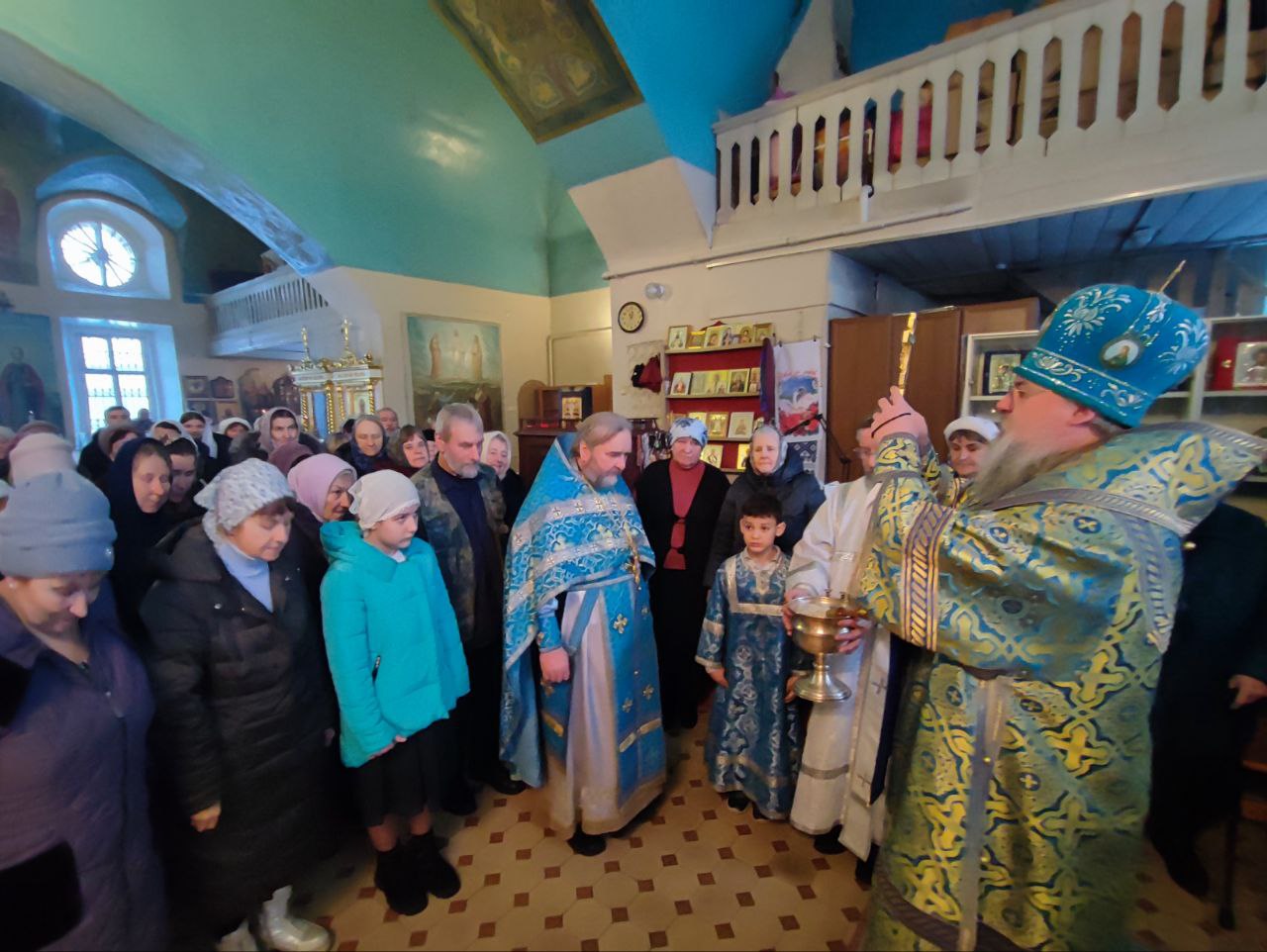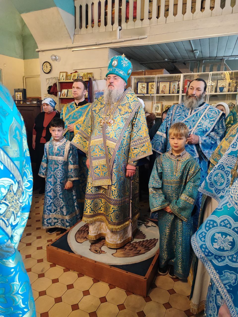Архипастырю сослужили: протоиерей Павел Морозов, протоиерей Антоний Хатунцев, иерей Сергий Барыкин – настоятель храма, иерей Елисей Тимофеев, диакон Евгений Ковригин и диакон Валерий Волков.