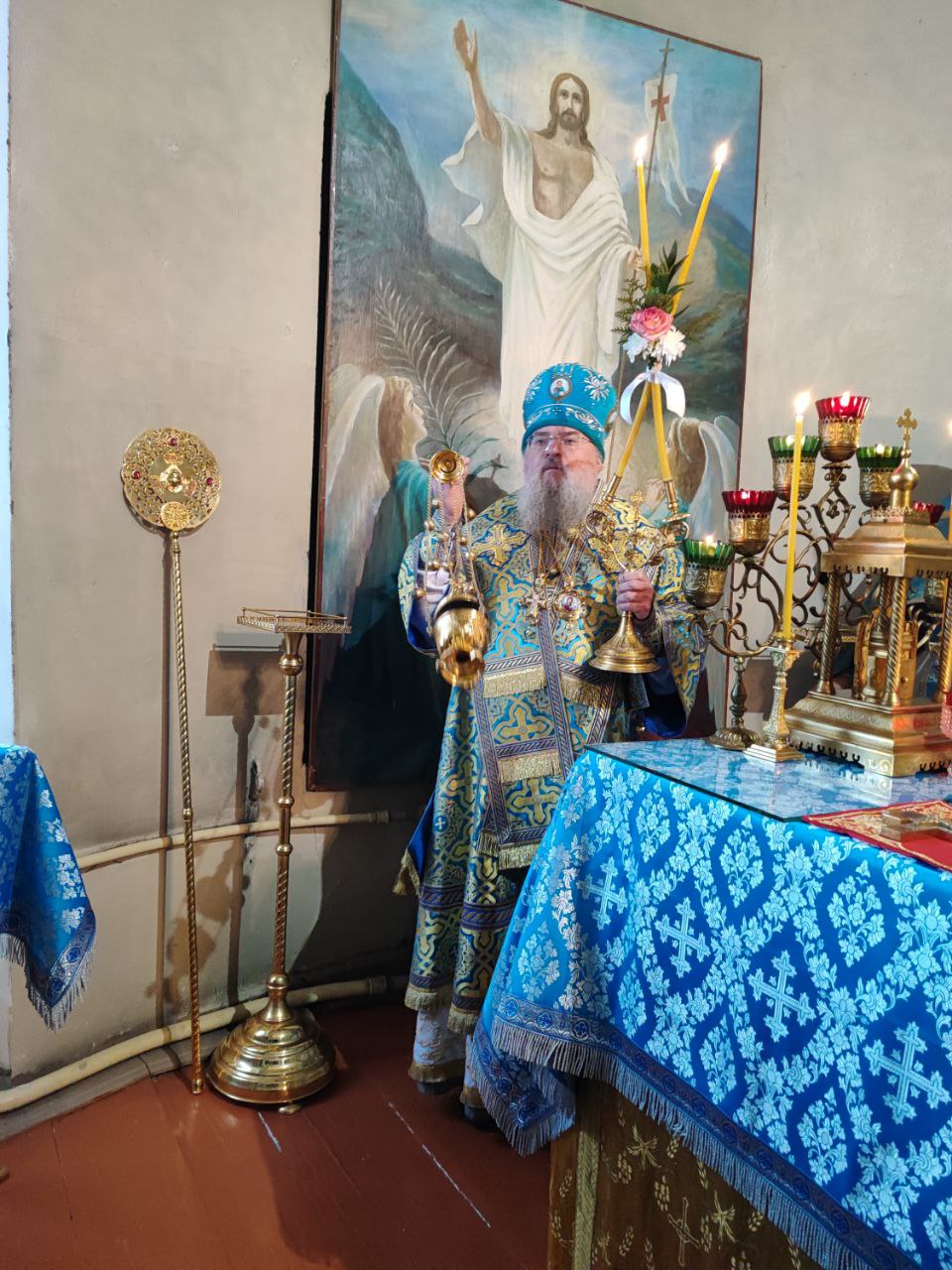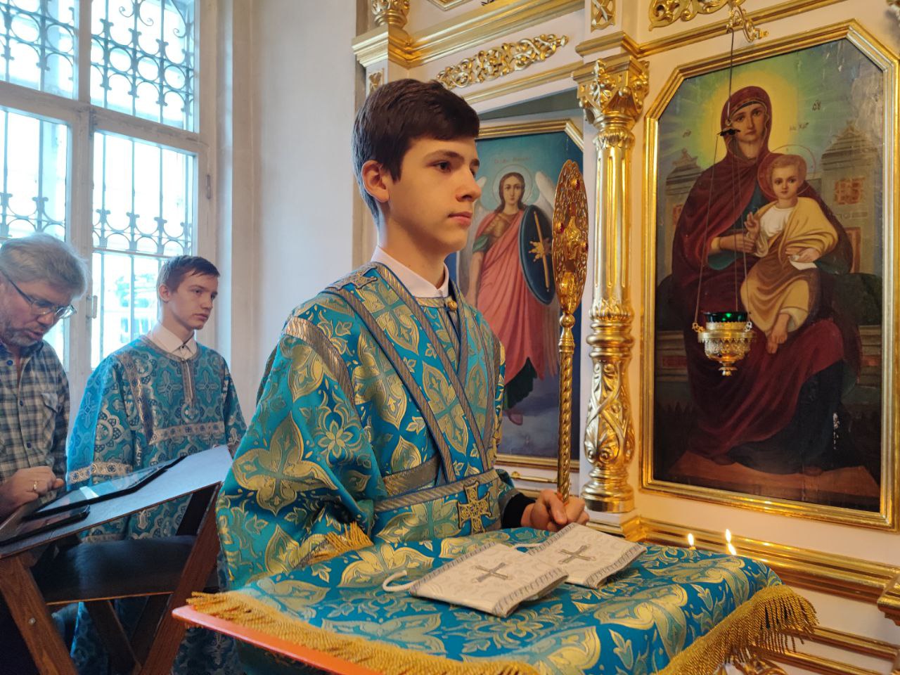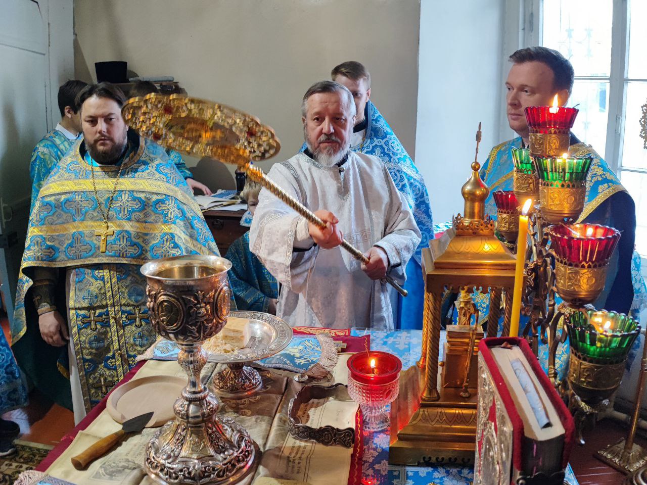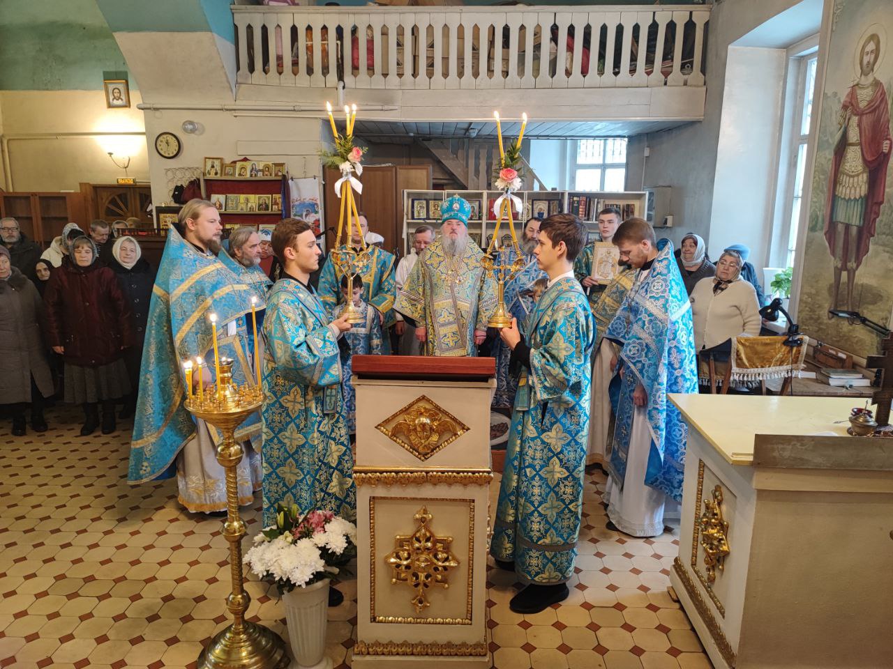 Архипастырю сослужили: протоиерей Павел Морозов, протоиерей Антоний Хатунцев, иерей Сергий Барыкин – настоятель храма, иерей Елисей Тимофеев, диакон Евгений Ковригин и диакон Валерий Волков.