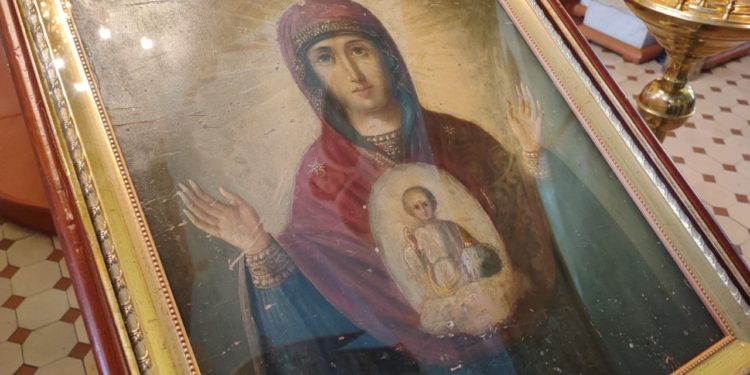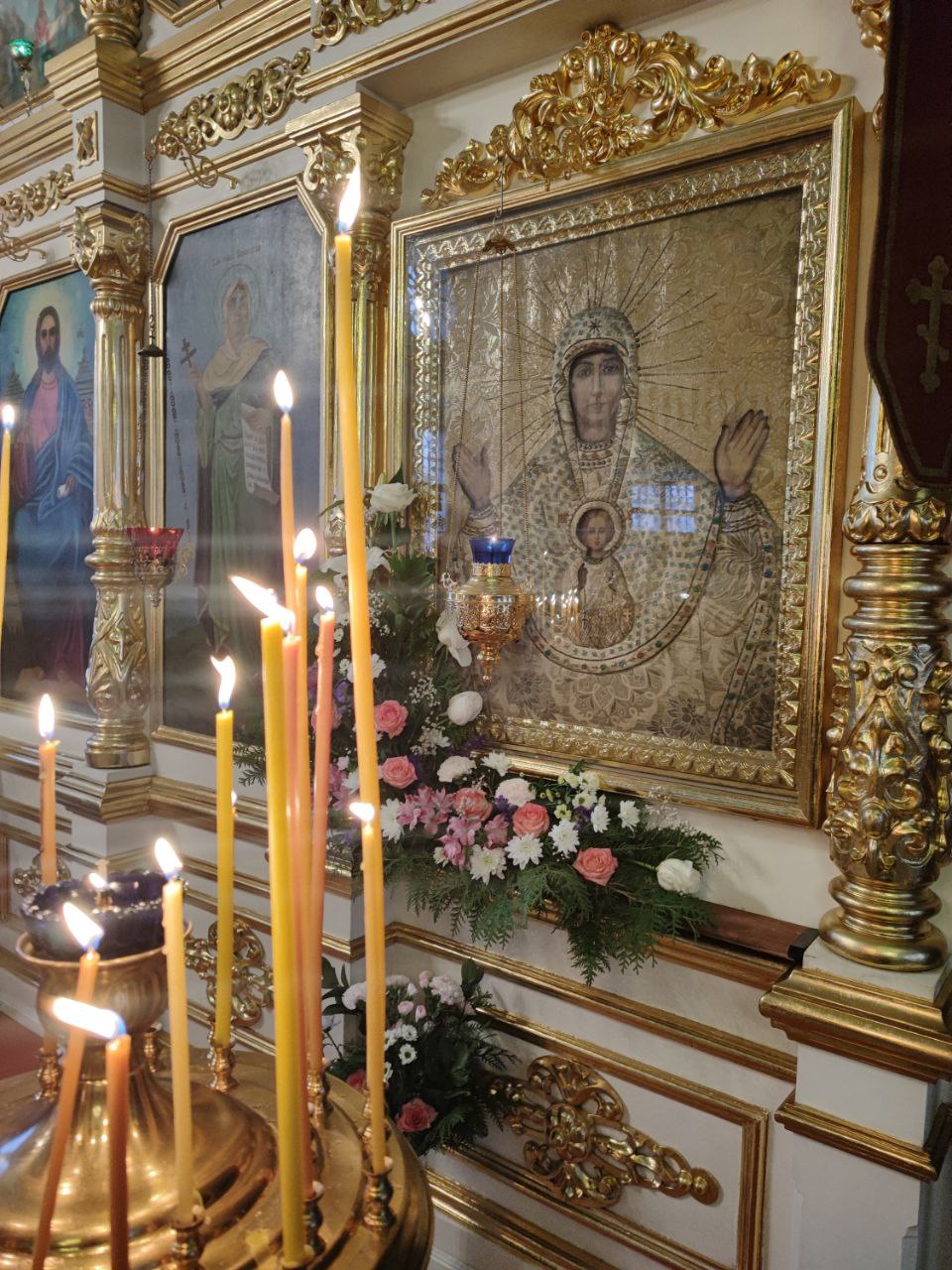 По отпусте литургии священнослужители совершили славление Божией Матери пред Ее образом «Знамение», а затем владыка обратился к богомольцам с проповедью.
