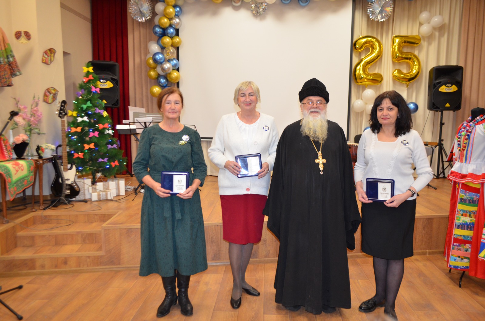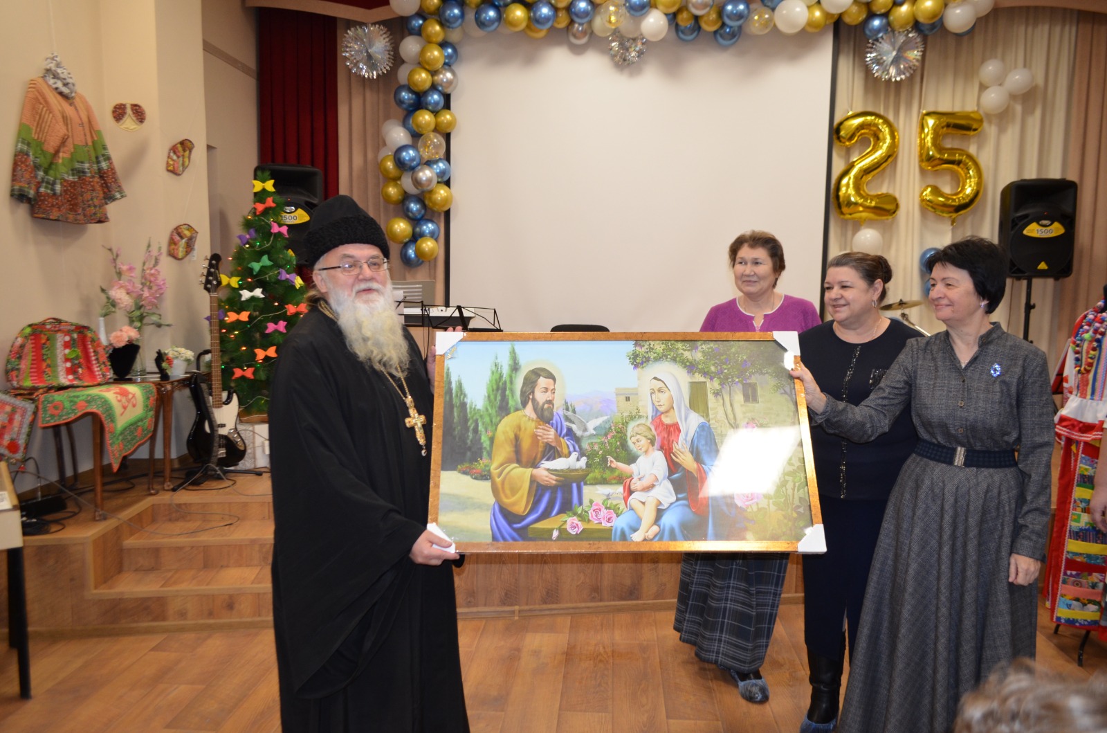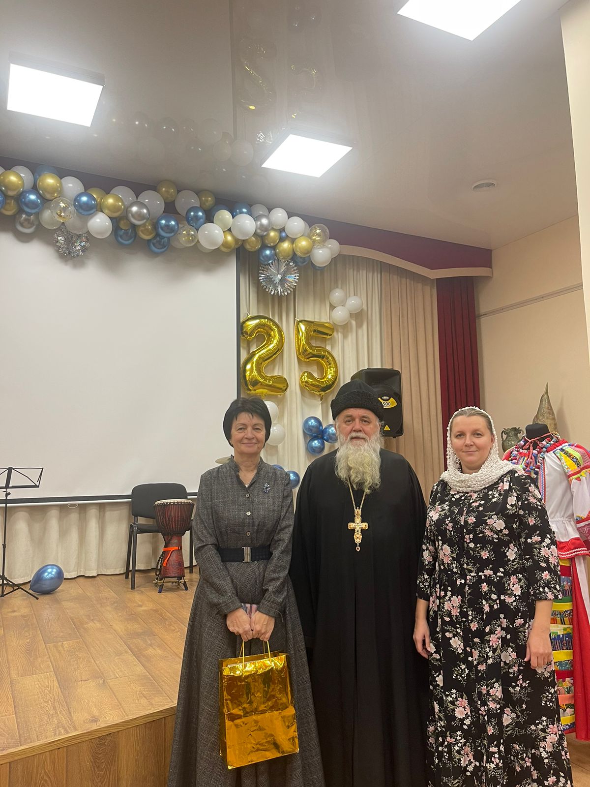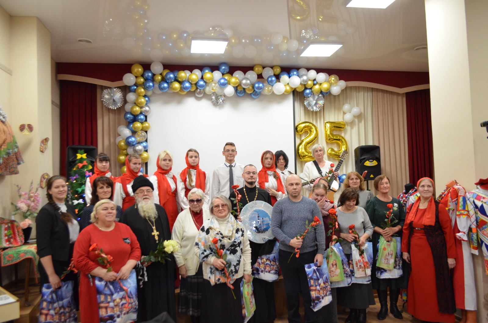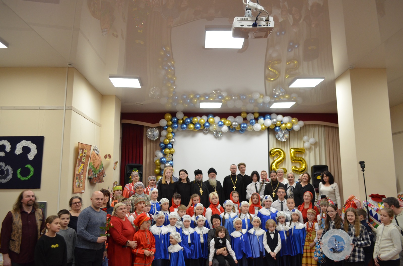 Силами добровольцев социальной службы Казанского собора города Людиново (руководитель Елена Коношенко) зал был красиво украшен шарами и юбилейными цифрами — 25. Много добрых слов прозвучало  в адрес наставников от родителей и гостей праздника. Воспитанник Воскресной школы «Светоч»  Даниил со своей мамой подарили необыкновенные, сделанные своими руками, настенные часы с изображением Казанского собора. В Год семьи коллеги из ВШ «Радонеж», после тёплых слов поздравления, преподнесли картину, где изображено Святое семейство. Матушка Анастасия Рябова из ВШ города Кирова и коллеги из средней школы №2 города Людиново Ольга Клестова и Светлана Романенко подарили нужные творческие и душевные наборы для школы. Много цветов и добрых пожеланий получили в свой адрес юбиляры.
